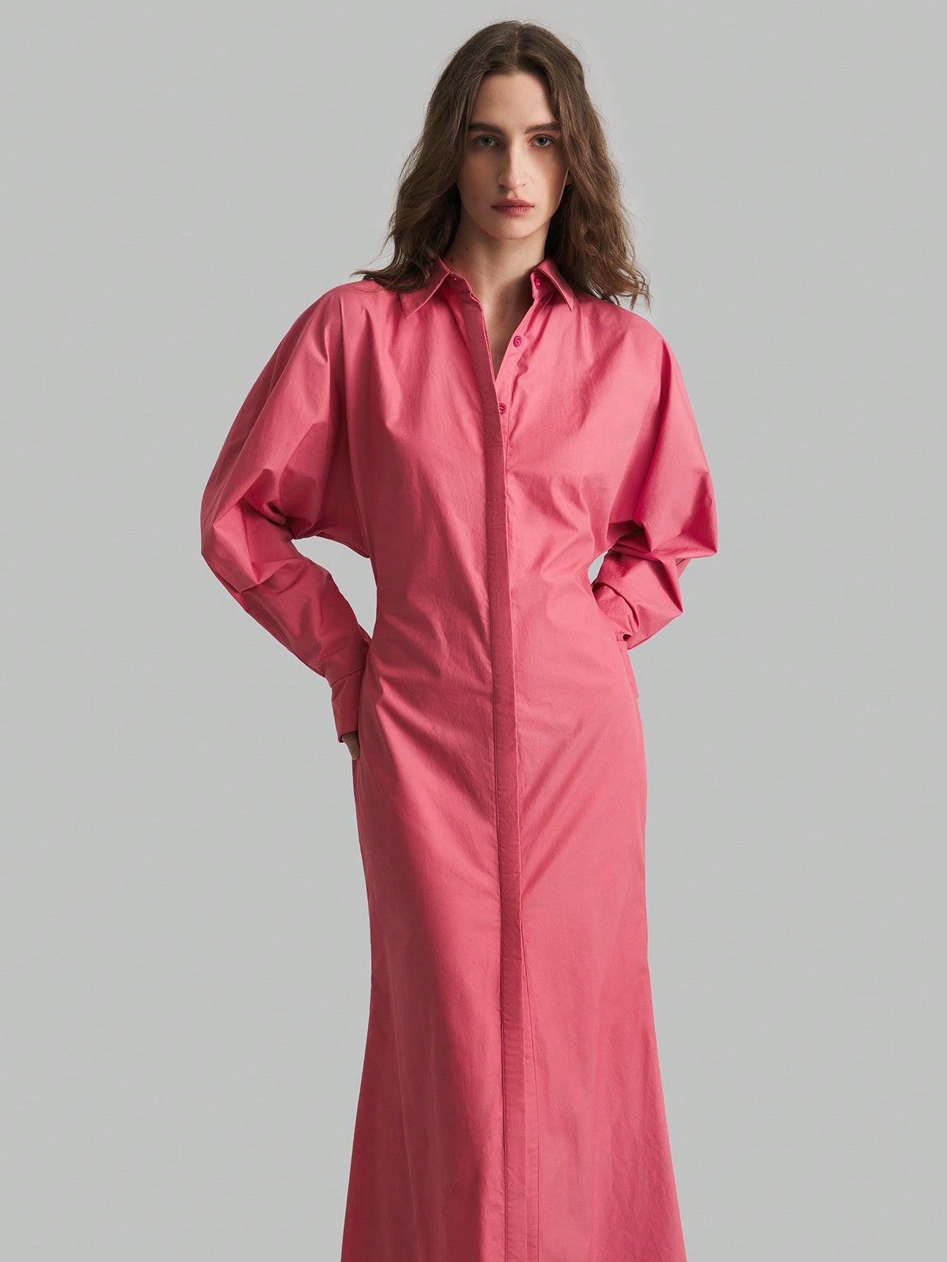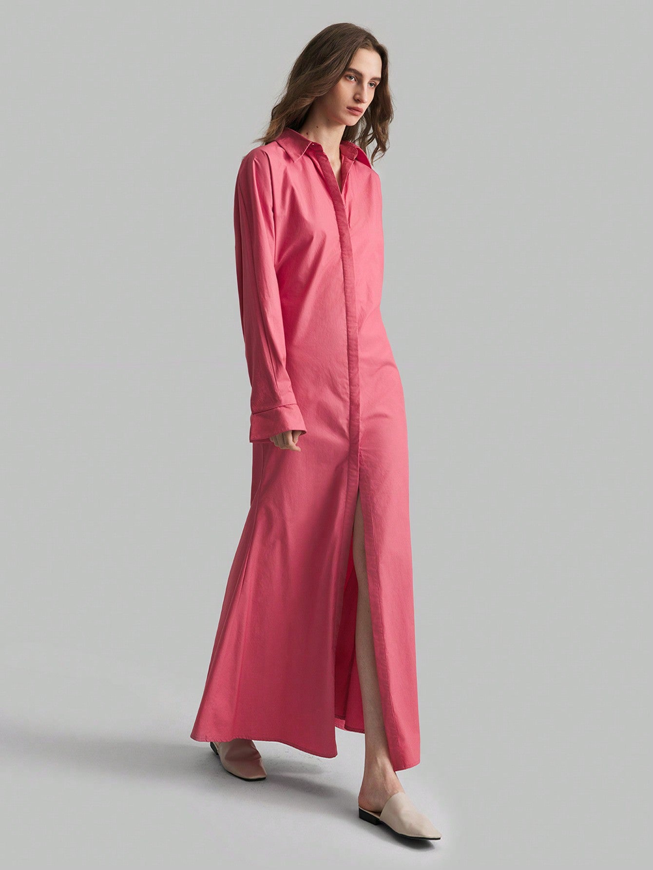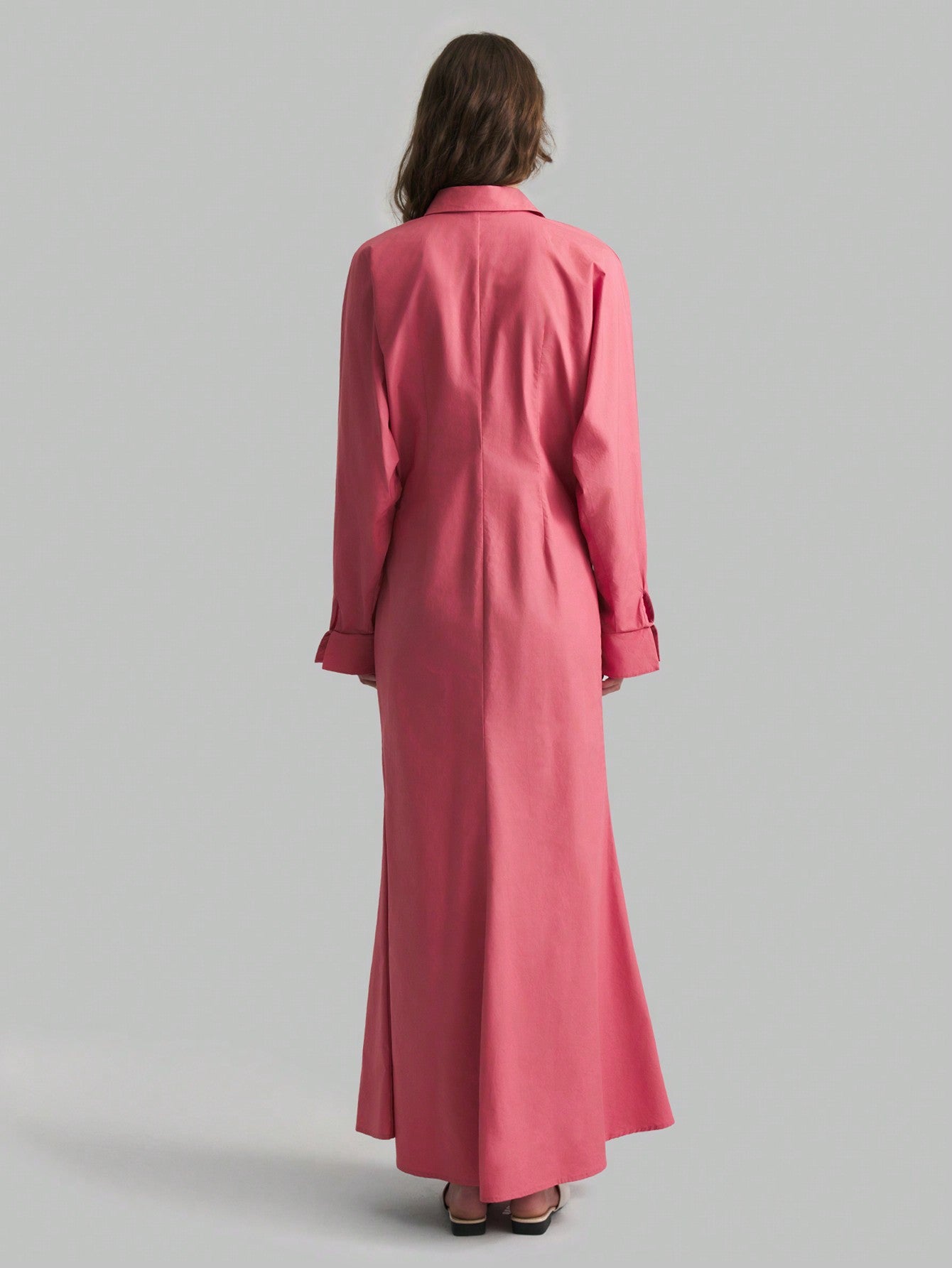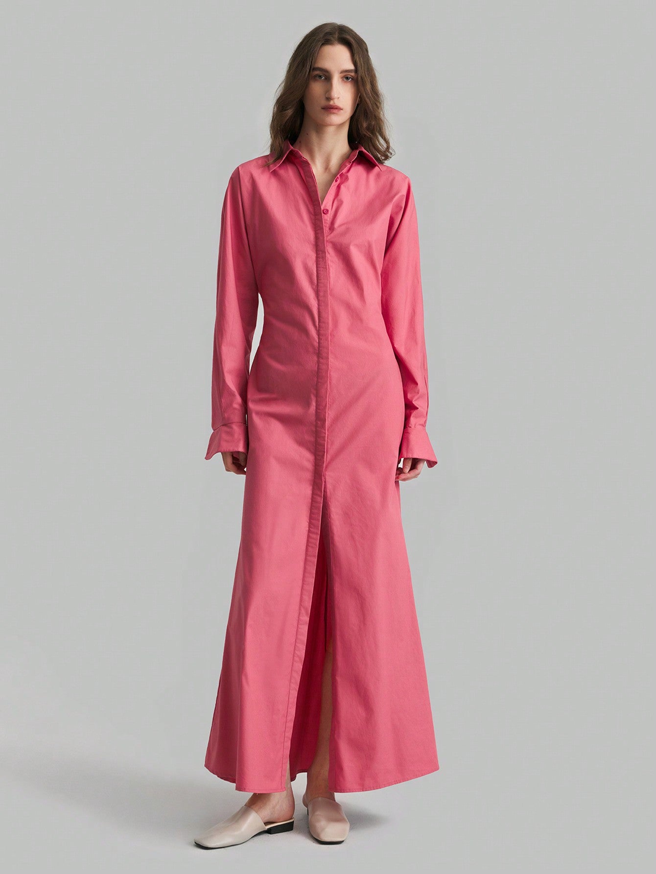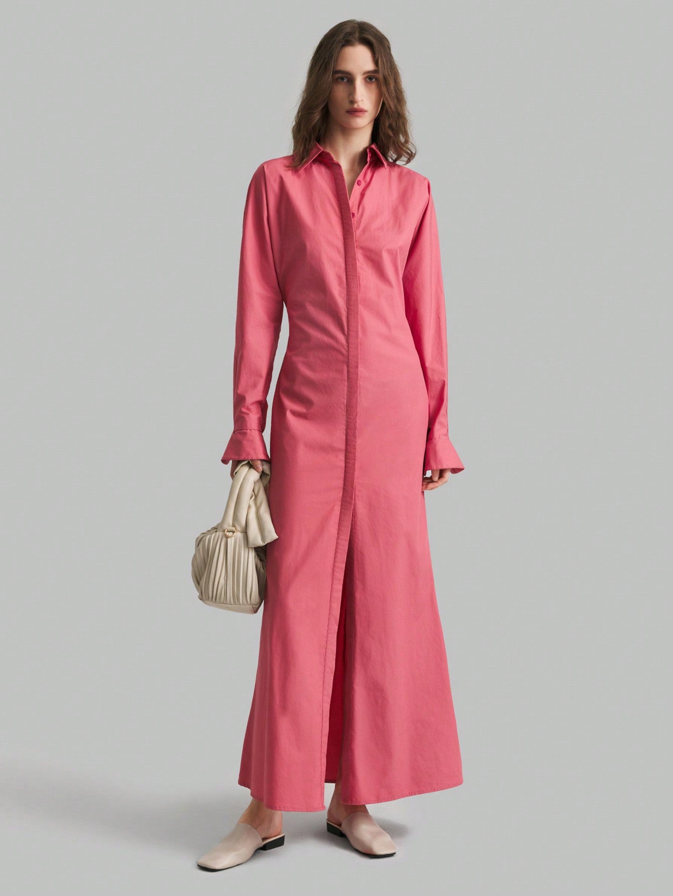 Ontre Women's Elegant Minimalist Light Pink Long Dress, Winter Cotton Fall Dresses