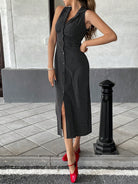 Pariaura French Casual Romantic Printed Shirt Collar Self-Tie Waist Sleeveless Women Dress