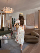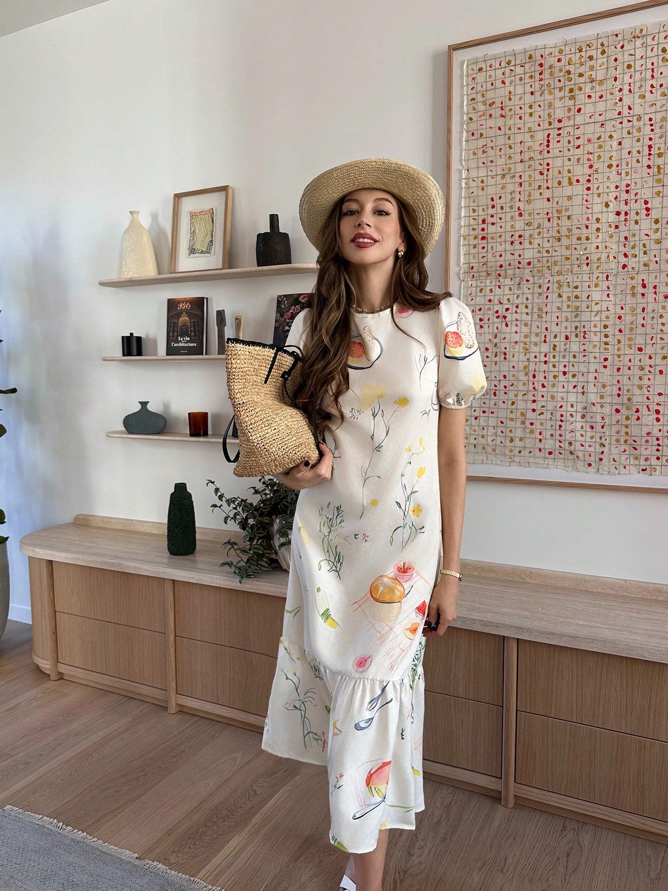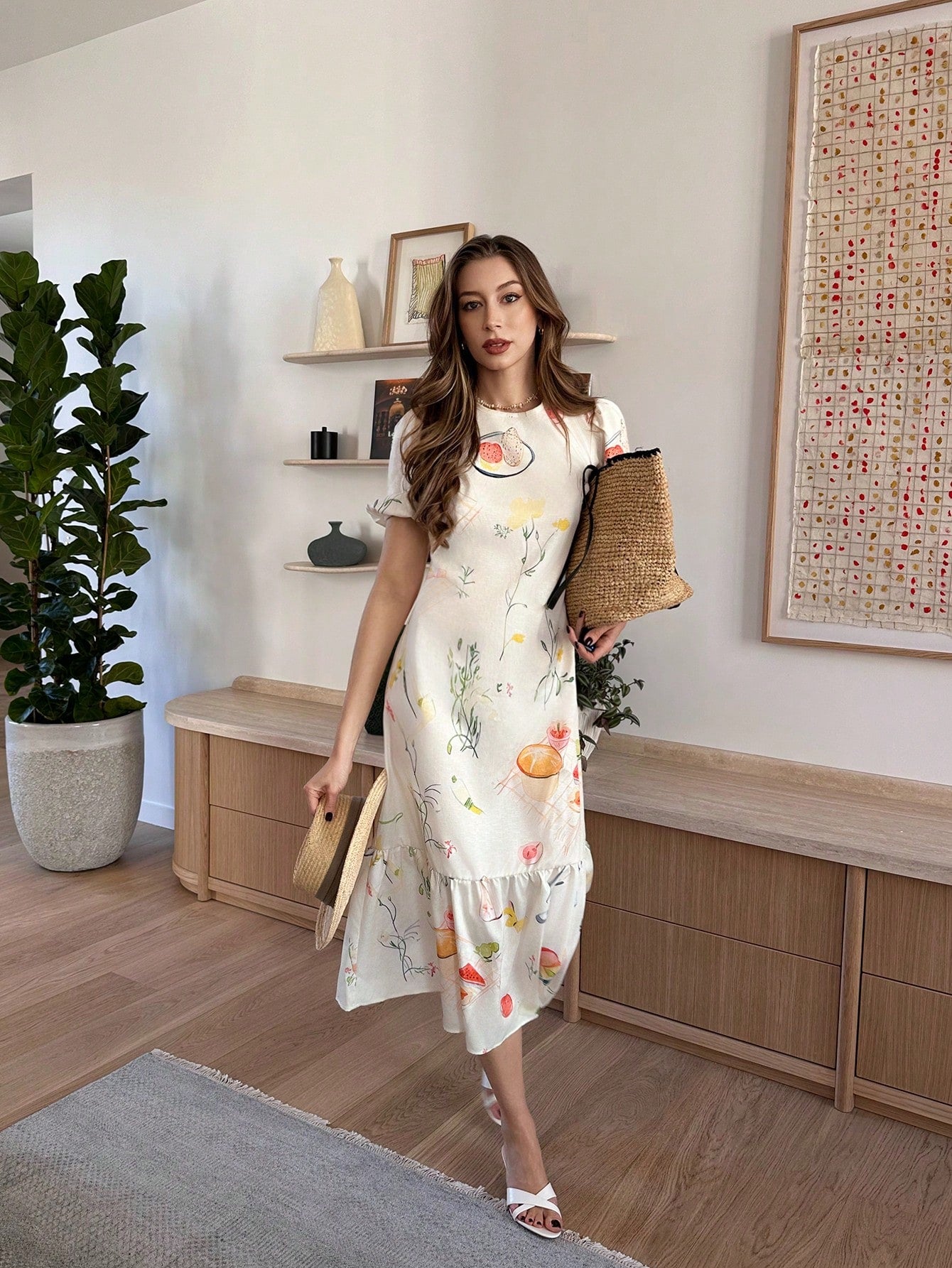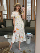 Pariaura Women's Summer Holiday Floral Plant And Fruit Print Backless Tie-Up Dress