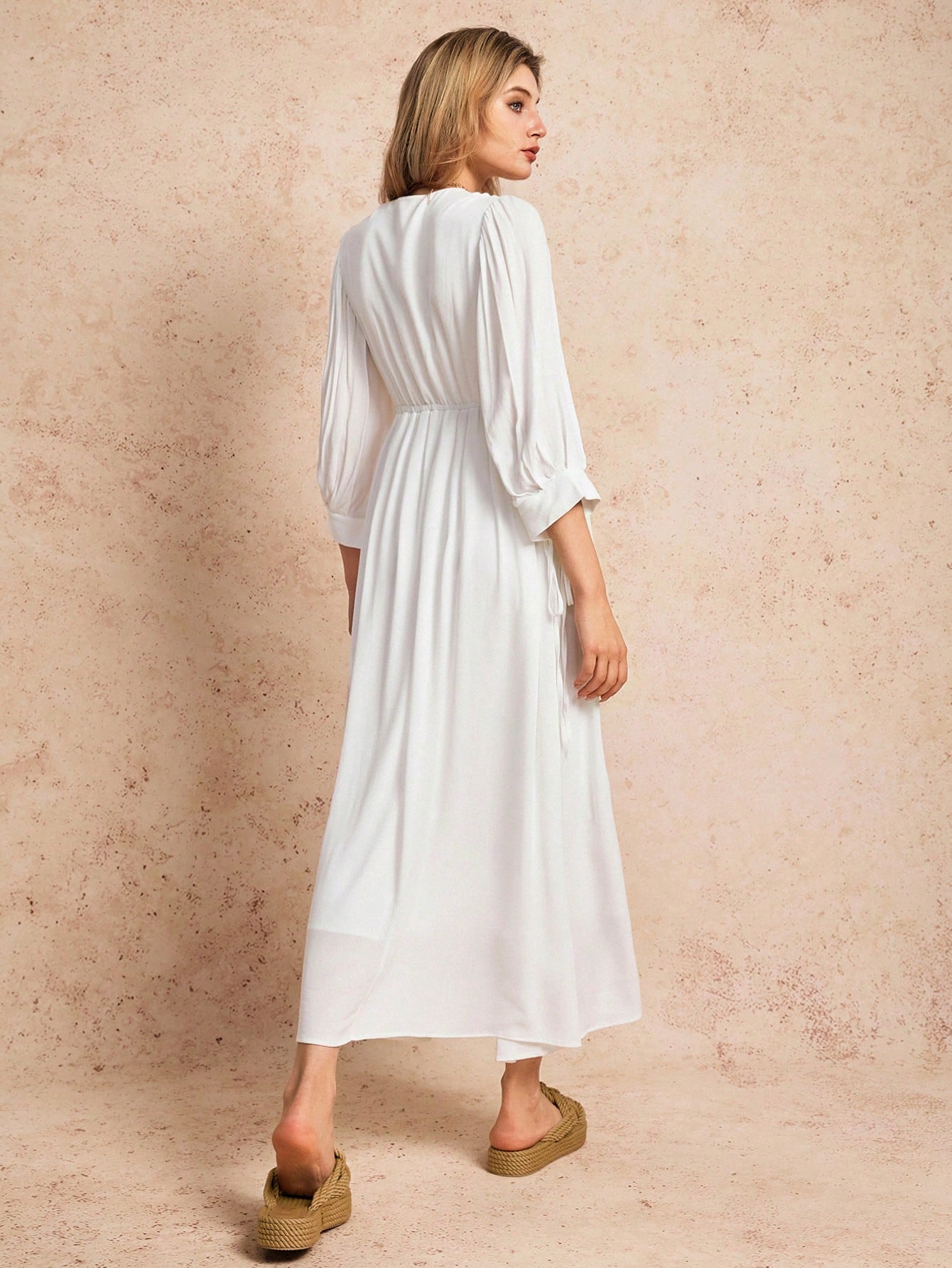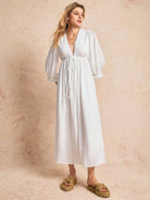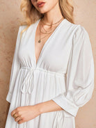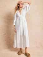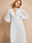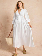 Poï؟½selle Women's White Textured Flowing Babydoll Boho Maxi Dress - Large Hemline