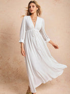women Poï؟½selle Women's White Textured Flowing Babydoll Boho Maxi Dress - Large Hemline