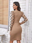 Sheer Polka-dot Organza Sleeve Dress Without Belt