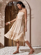 Shirred Frill Trim Ruffle Hem Tube Dress