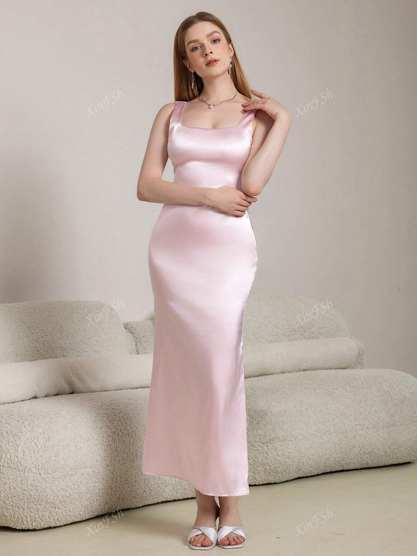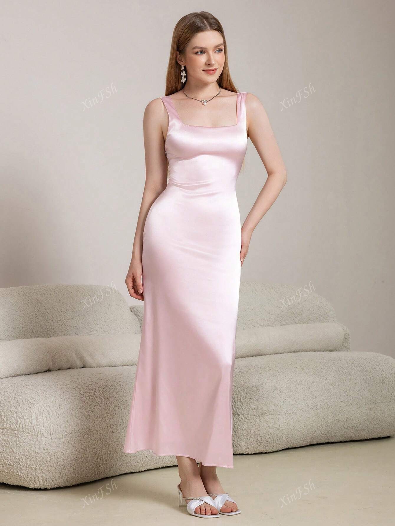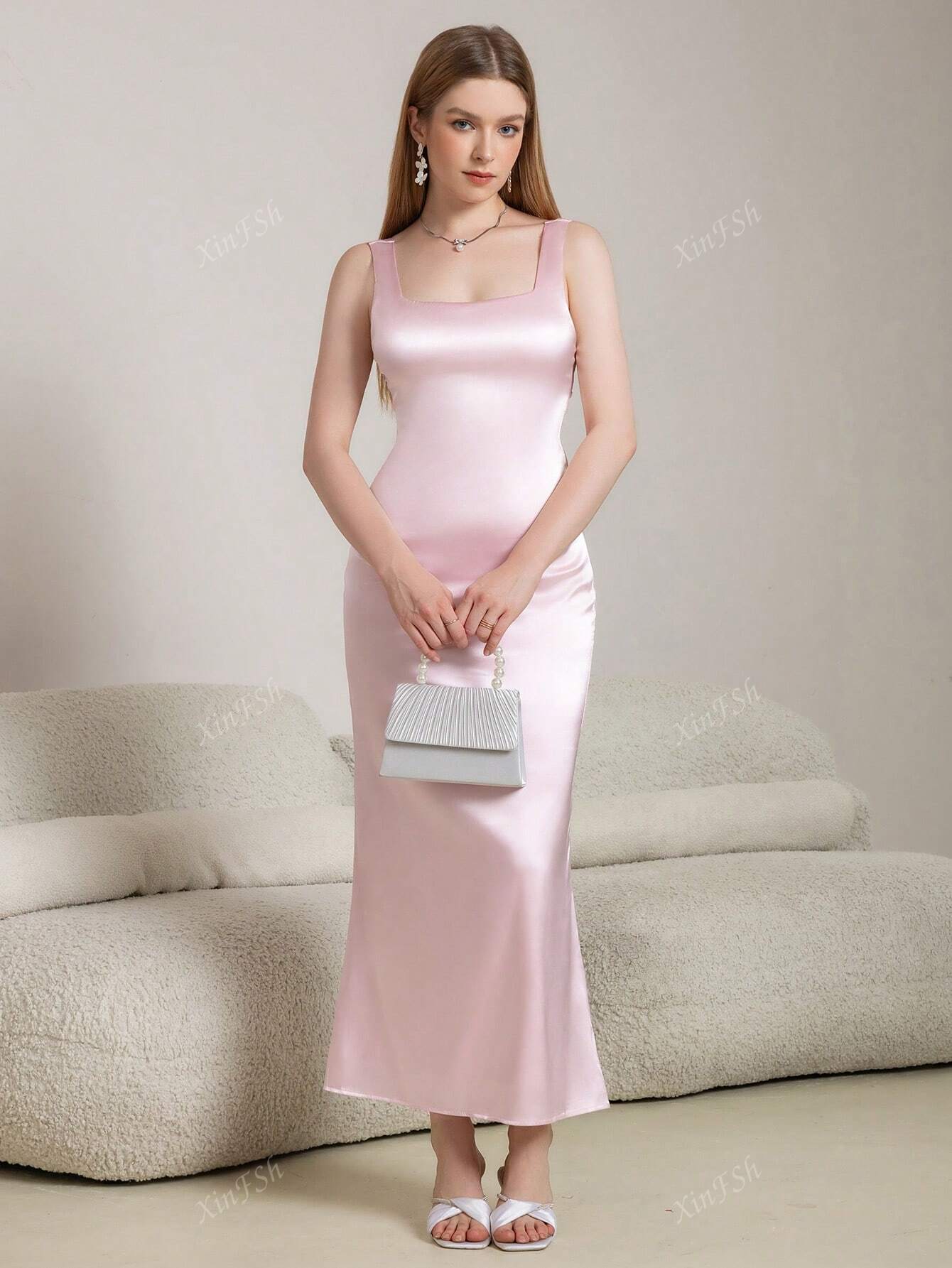 Square Neck Backless Cut Out Crisscross Up Trim Mermaid Hem Bodycon Elegant Formal Evening Gowns, Party