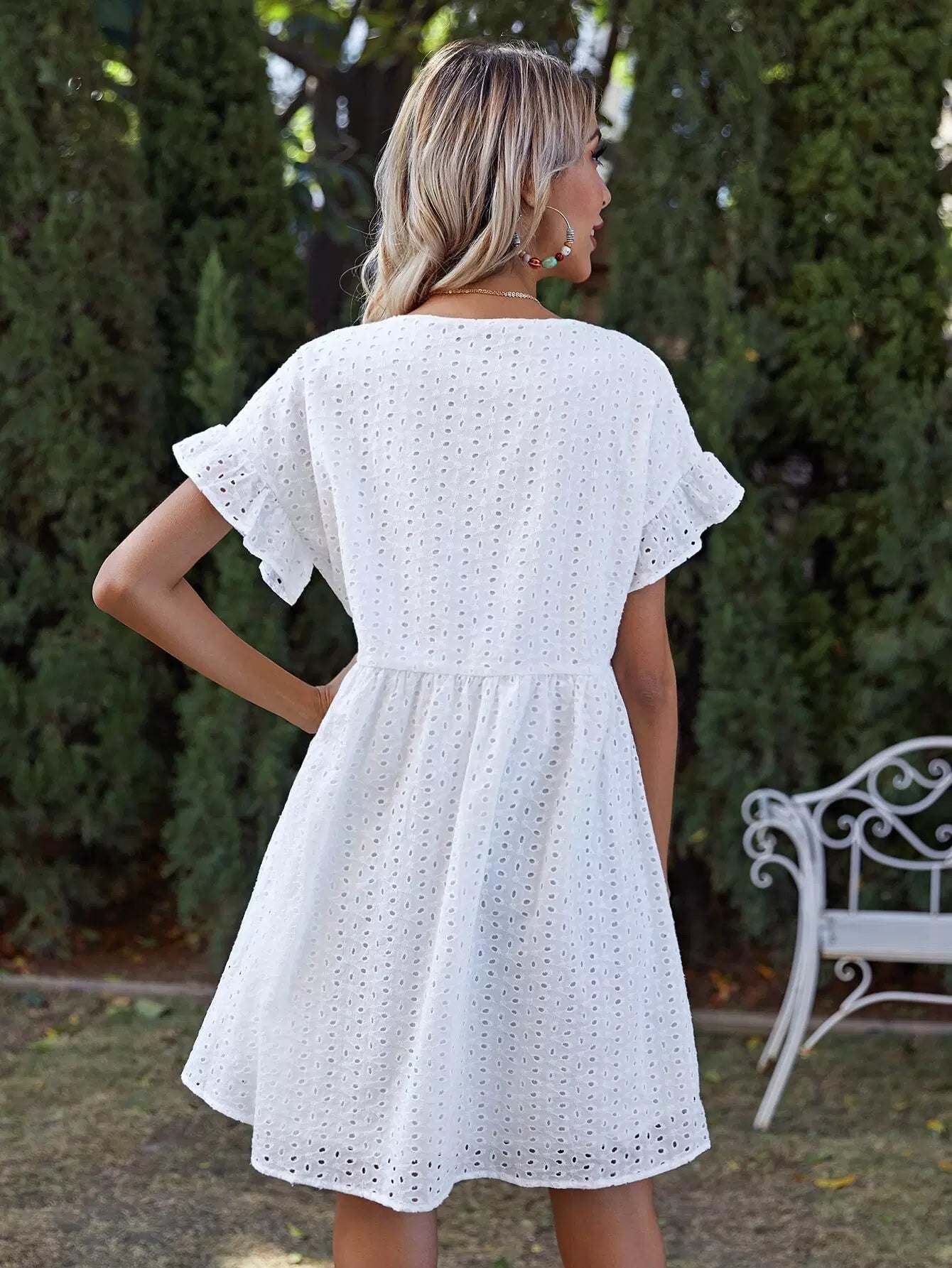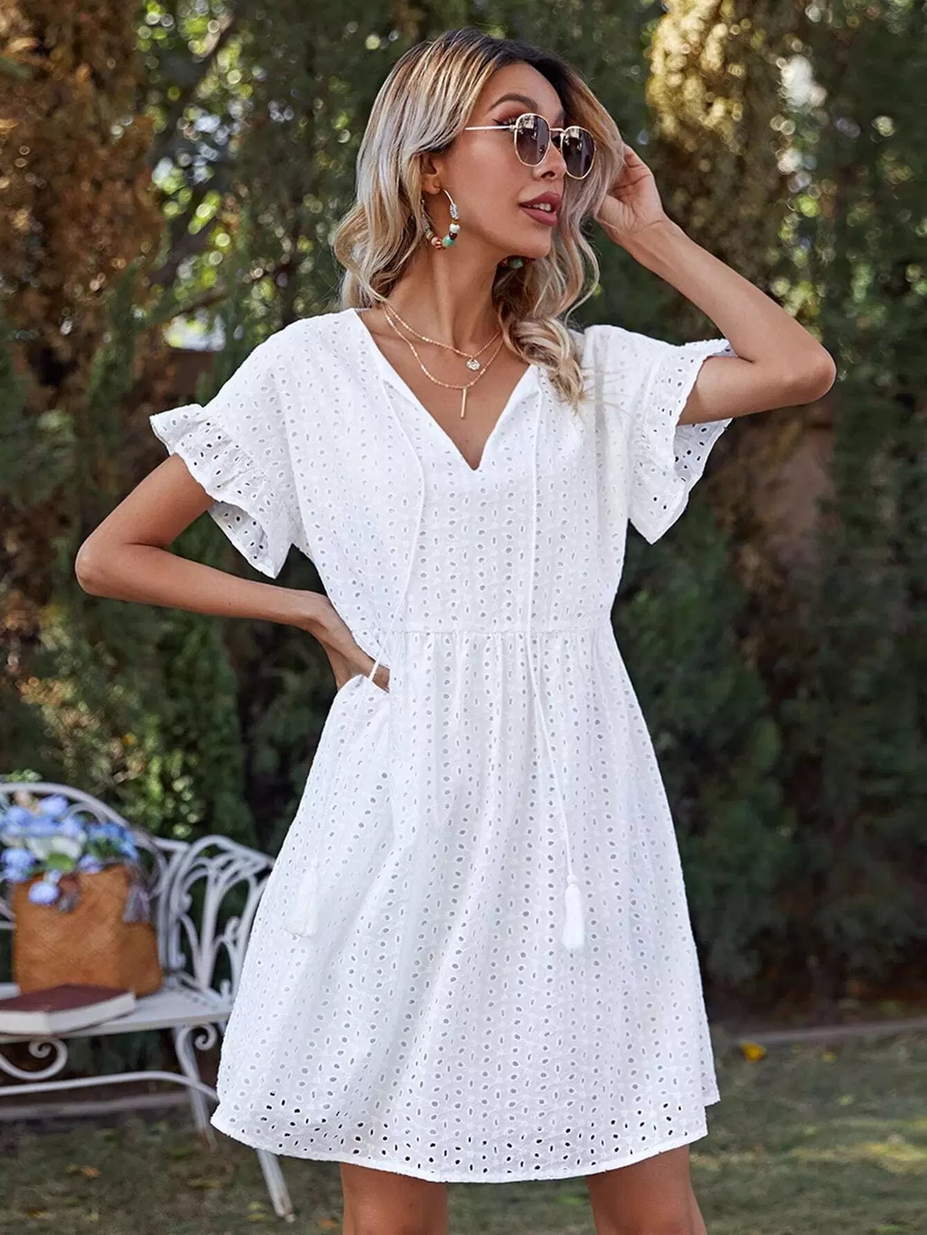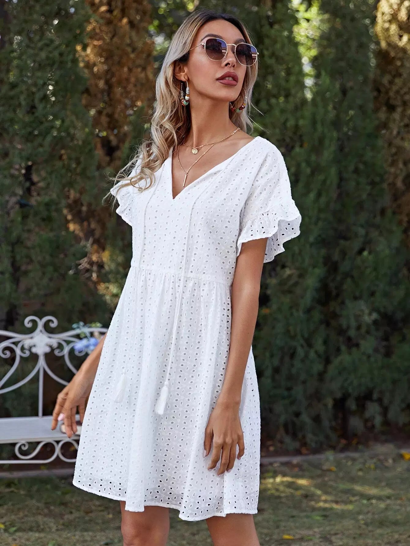 Tassel Tie Neck Ruffle Cuff Schiffy Dress