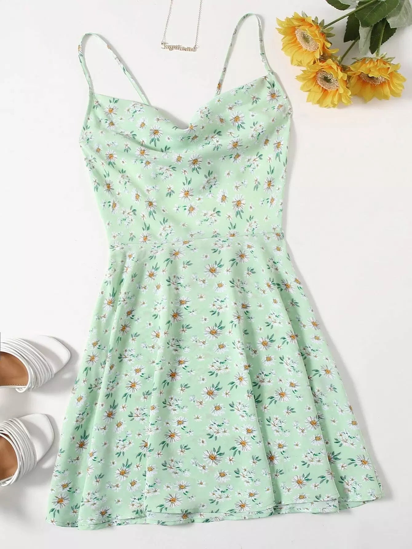 Tie Open Back Daisy Floral Slip Dress