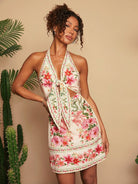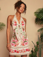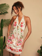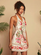 Travachic Women's Floral Print Knot Front Halter Backless Vacation Dress,Summer,Summer Outfits For Women,Beachwear,Beach