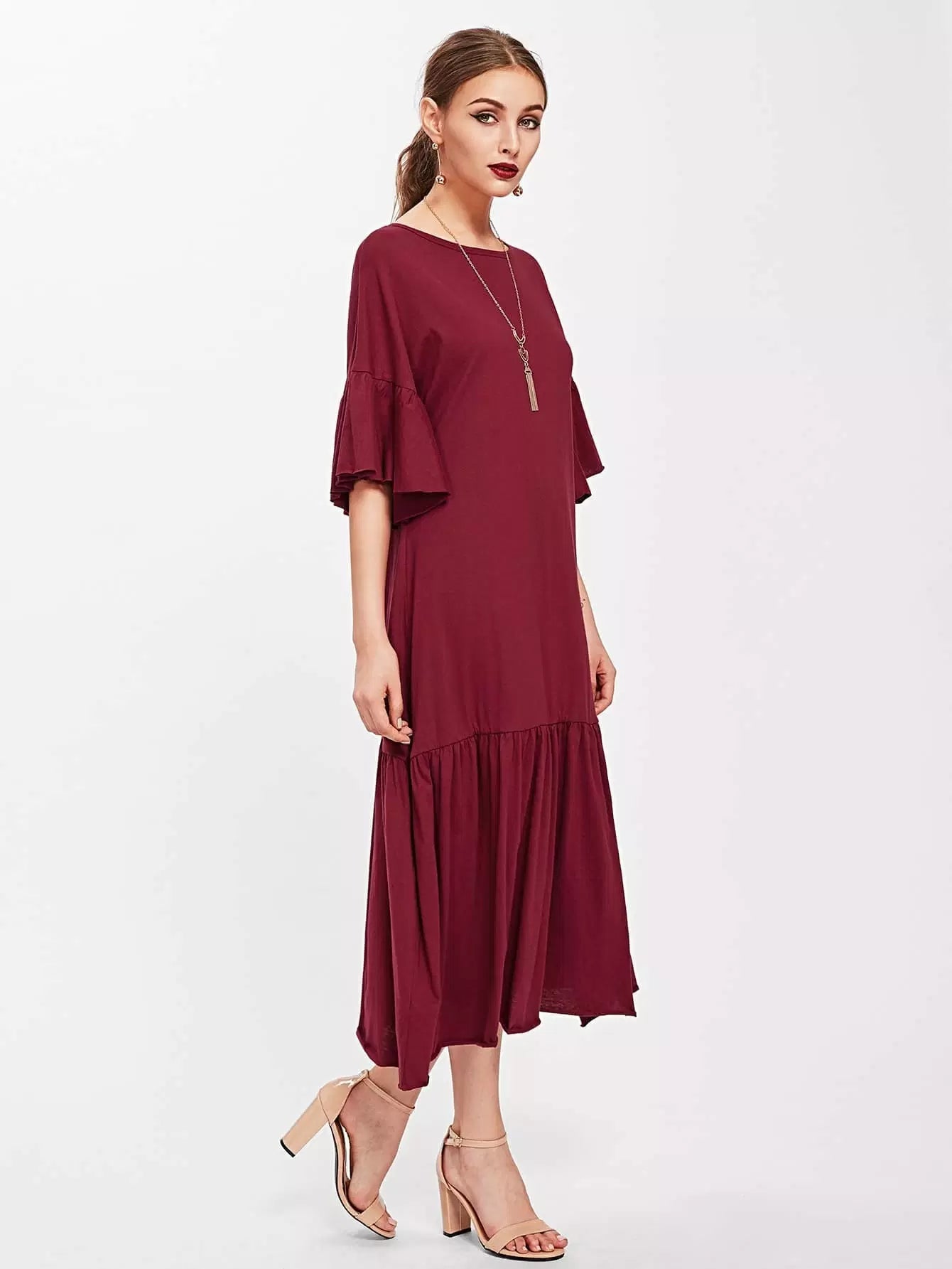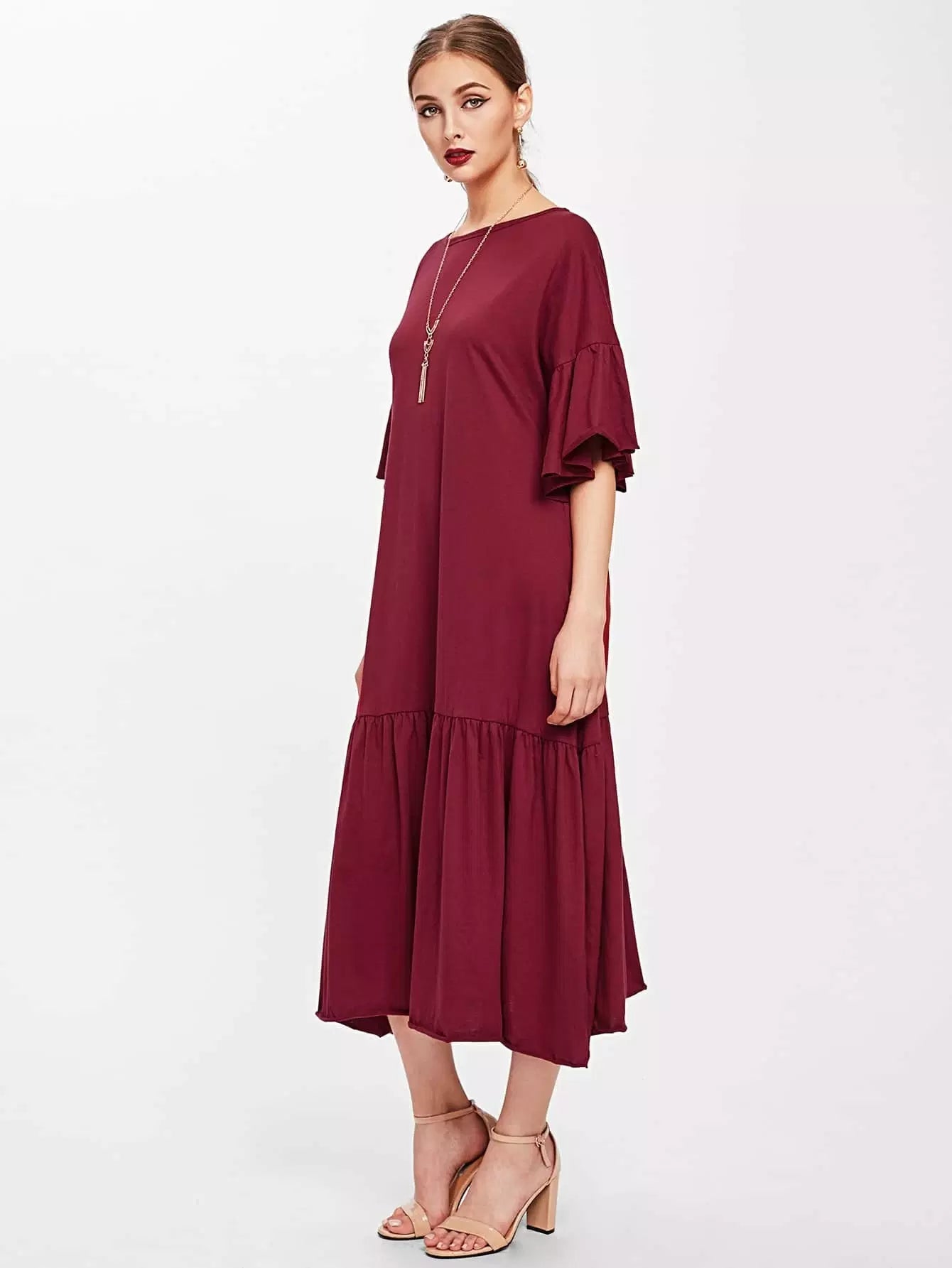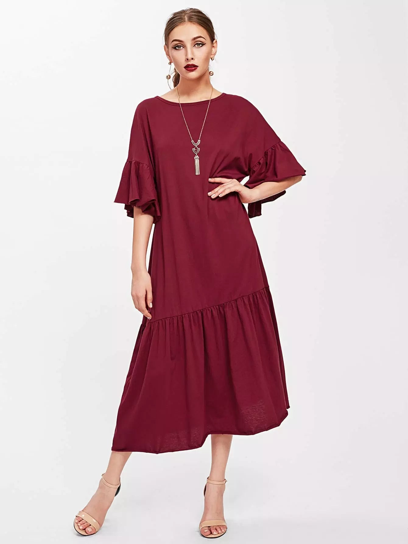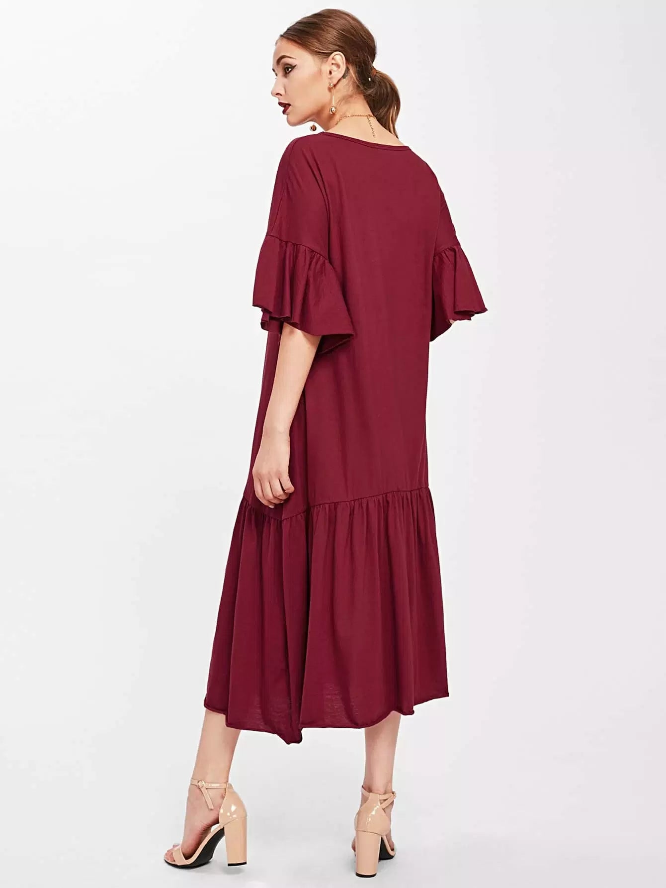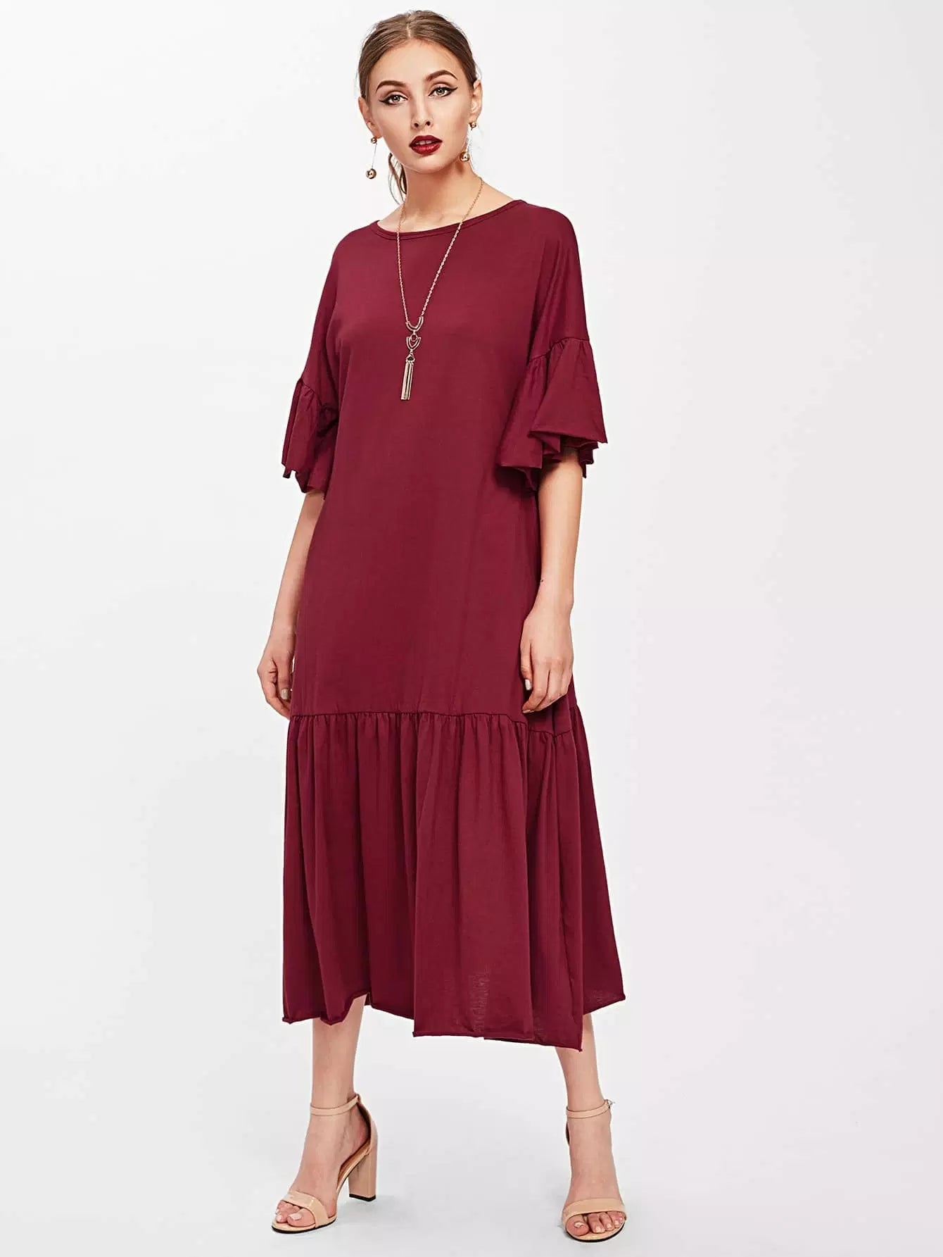 Trumpet Sleeve Tiered Hem Dress