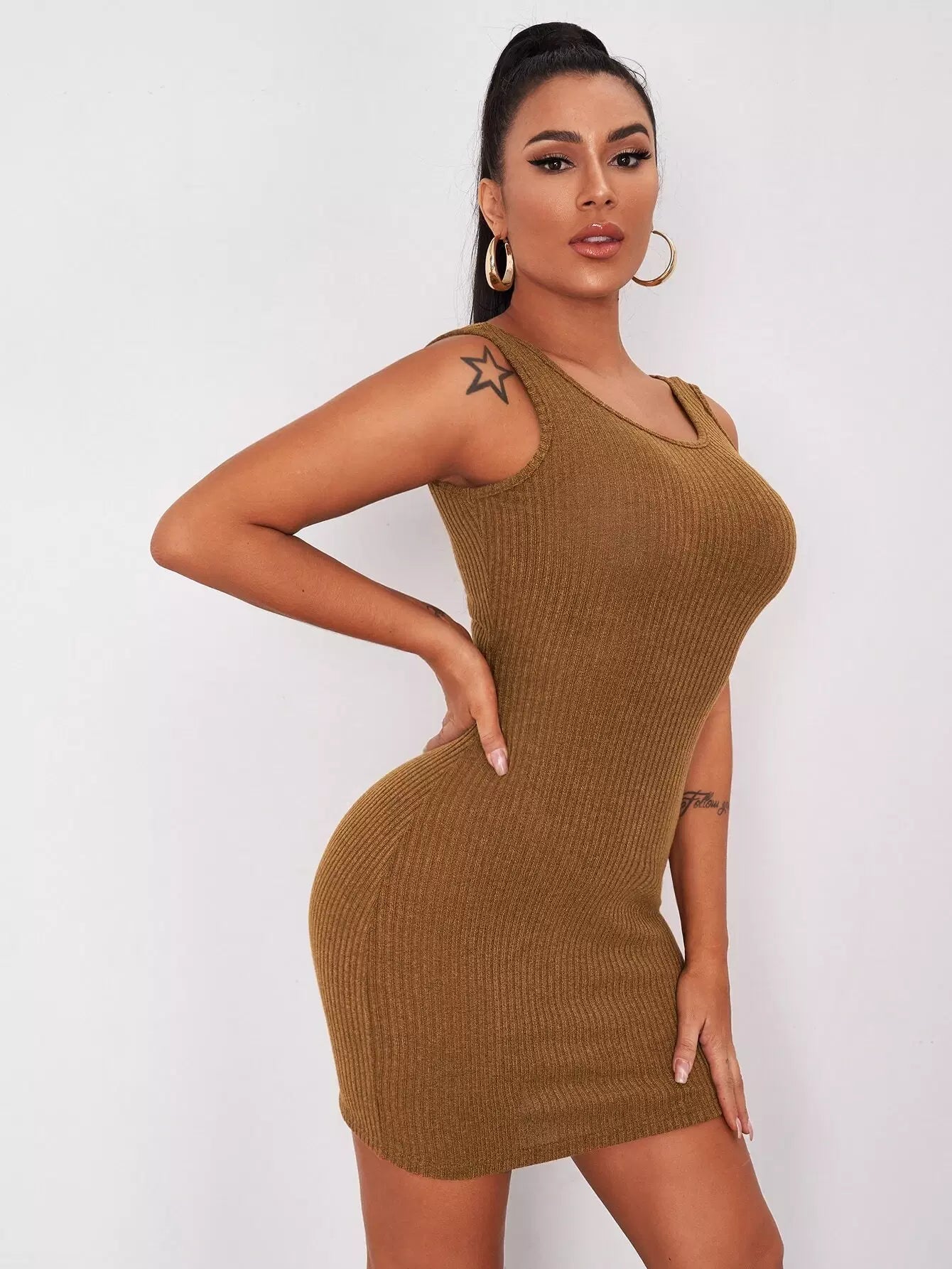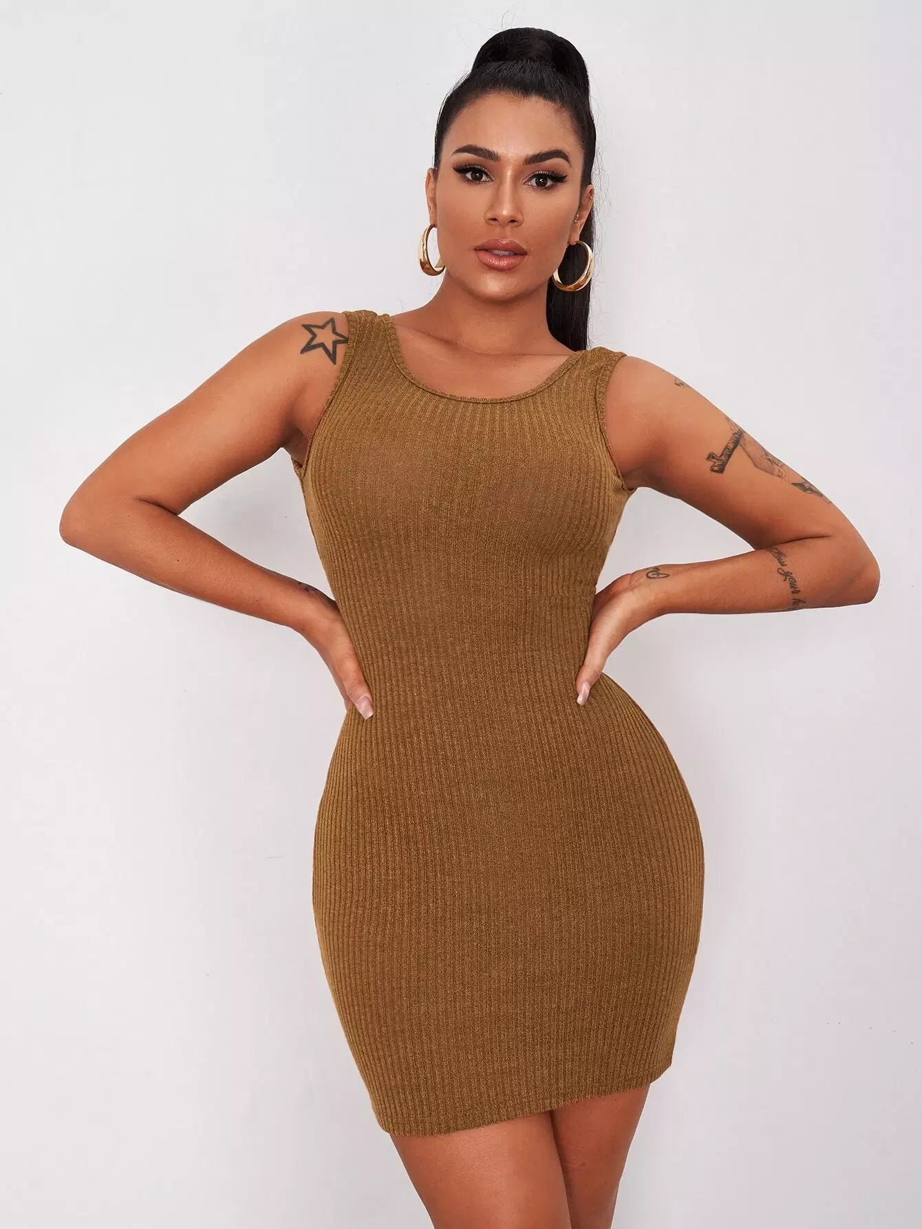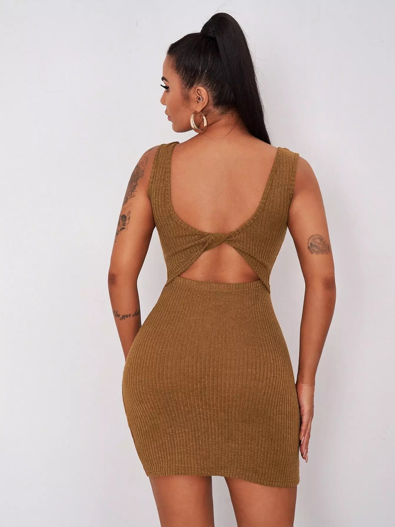 Twist Backless Rib-knit Tank Dress