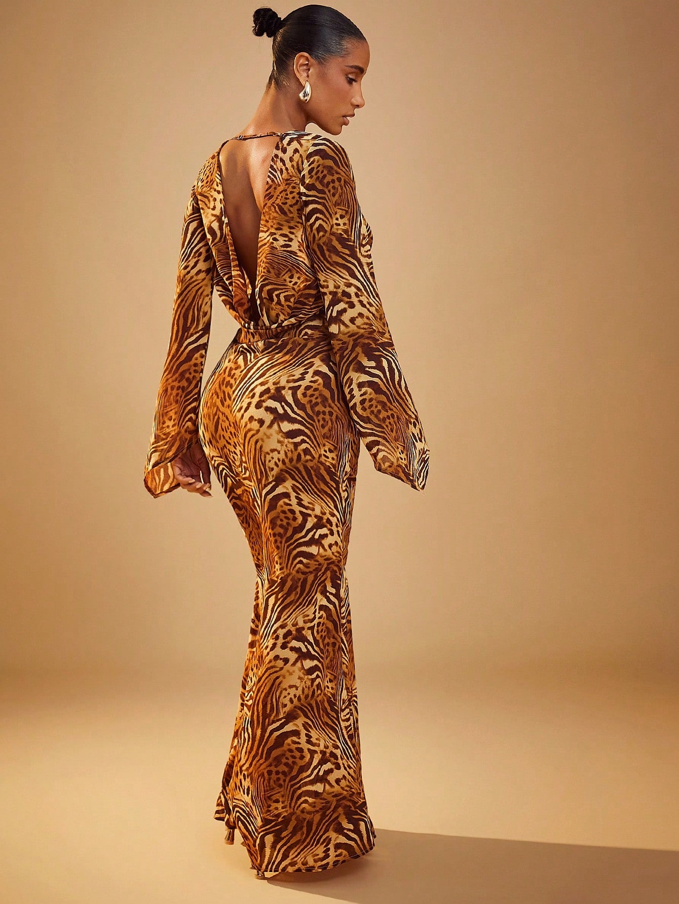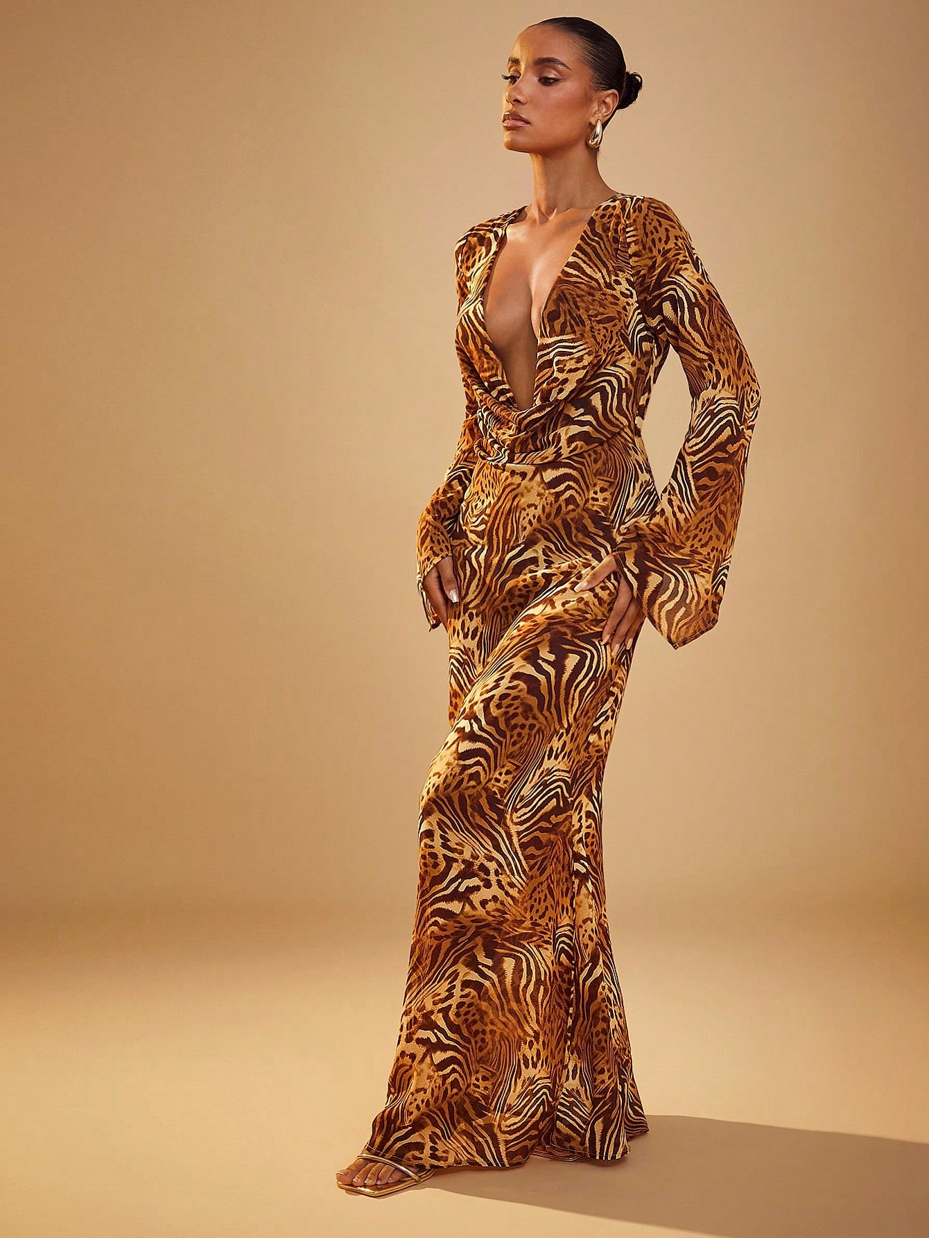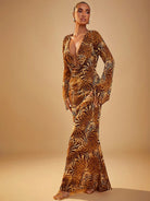 Unity Animal Print Cowling Long Sleeve Mermaid Dress