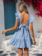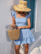 Vivid Eden Woven Flared Sleeve Square Neck Ruffle Hem Women Mini Dress Spring And Summer Outfits Summer