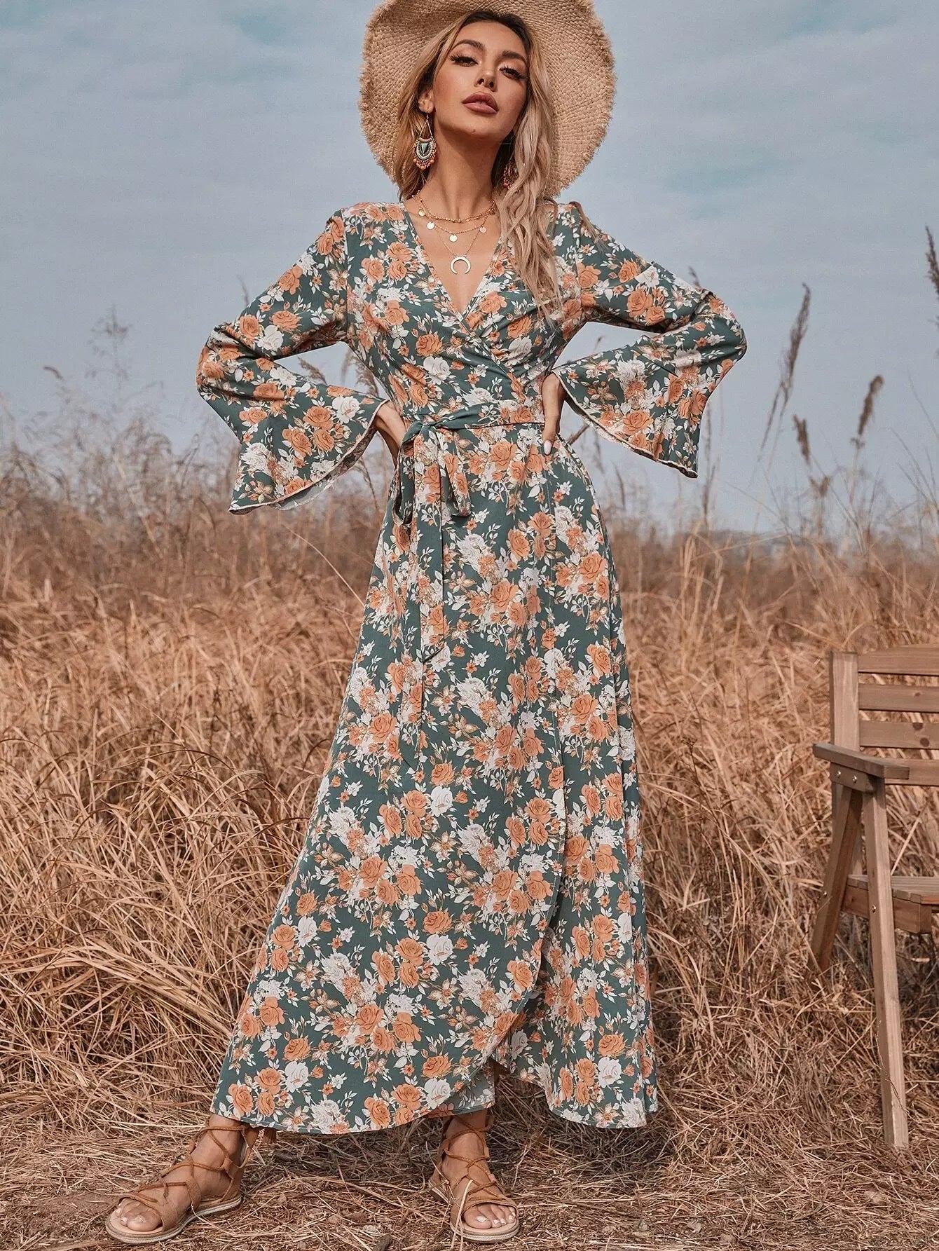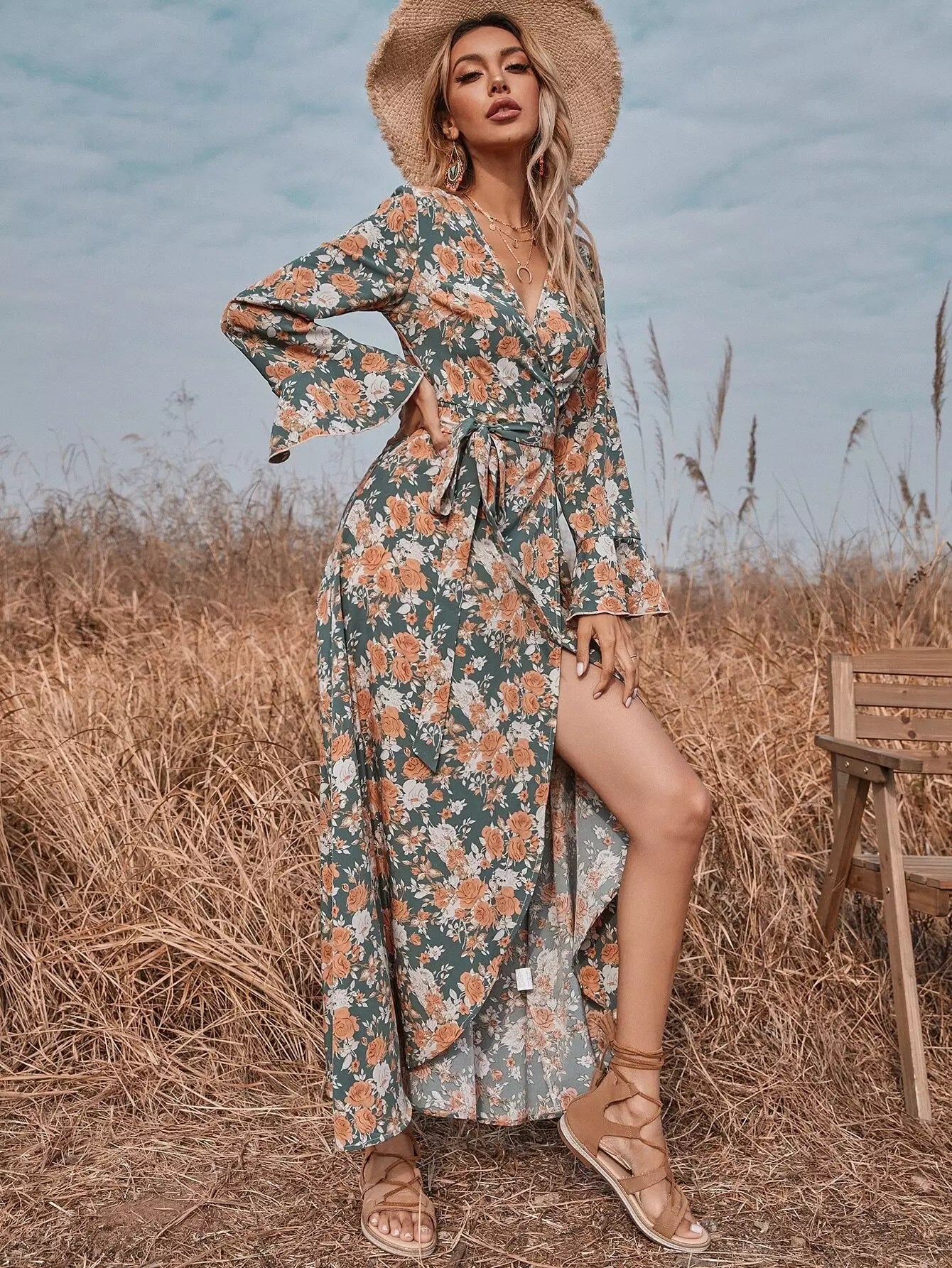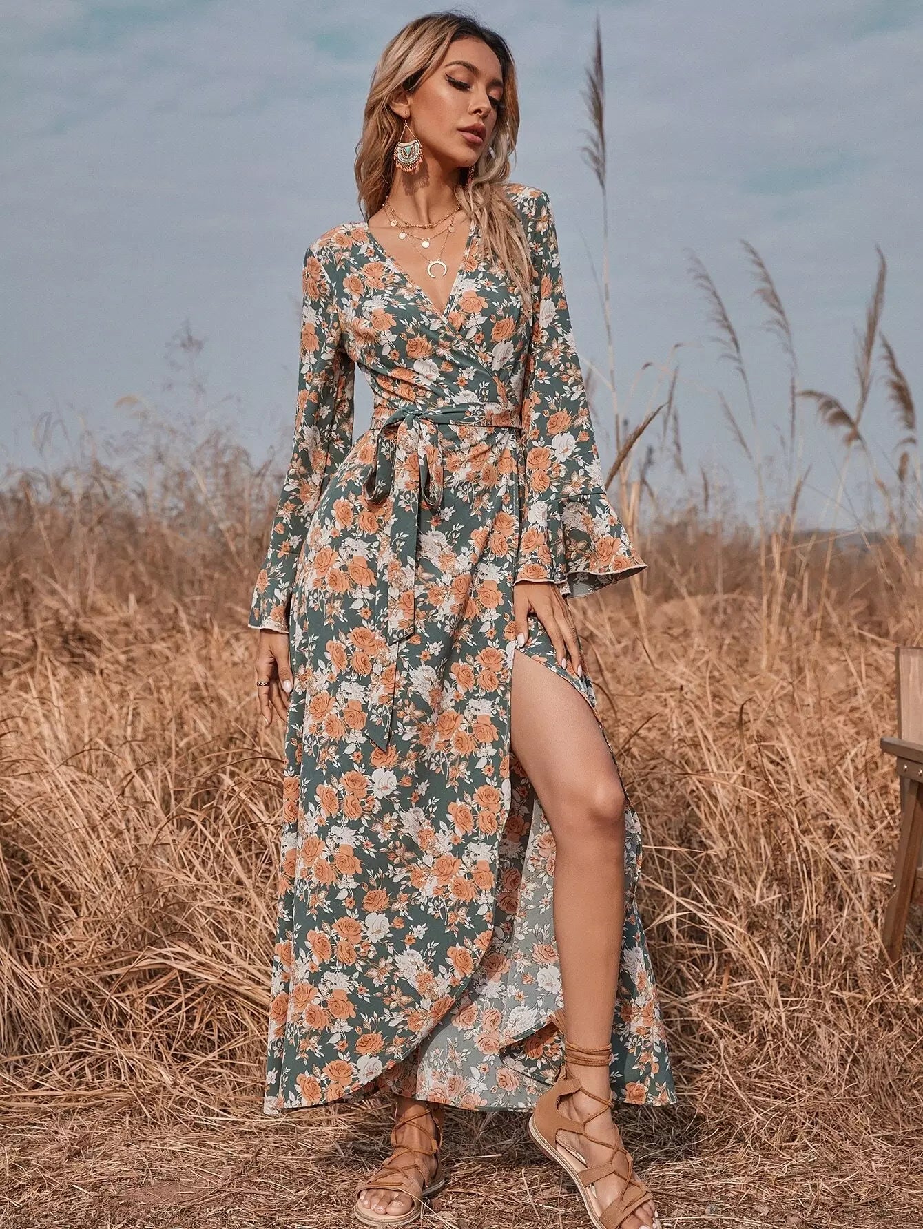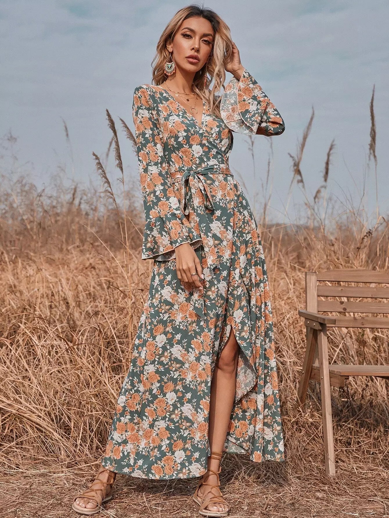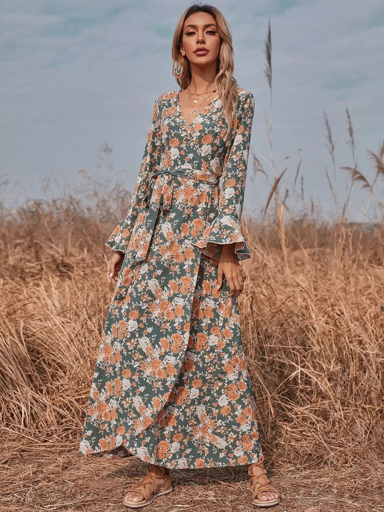 Allover Floral Wrap Dress Without Belt