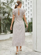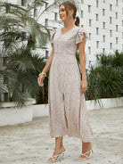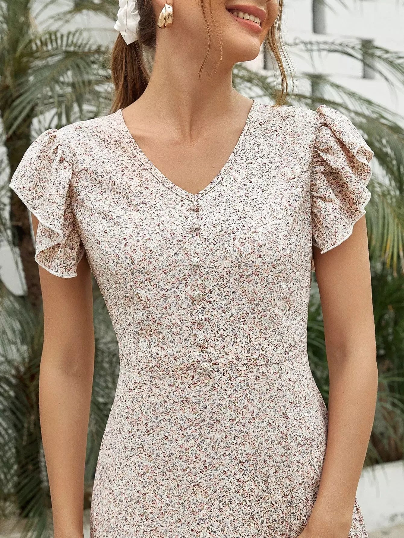 Allover Print Cutout Front Ruffle Armhole Split Hem Dress