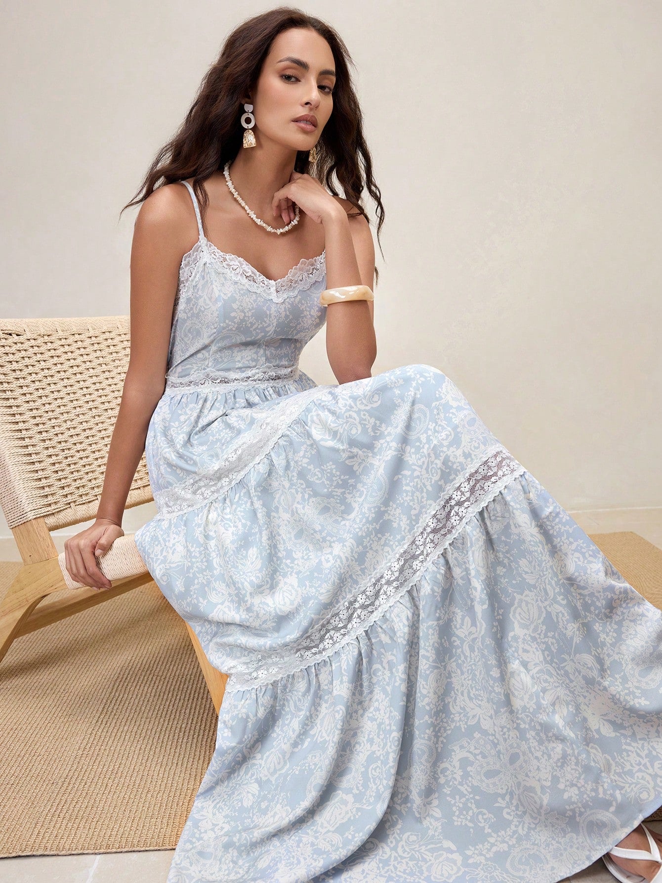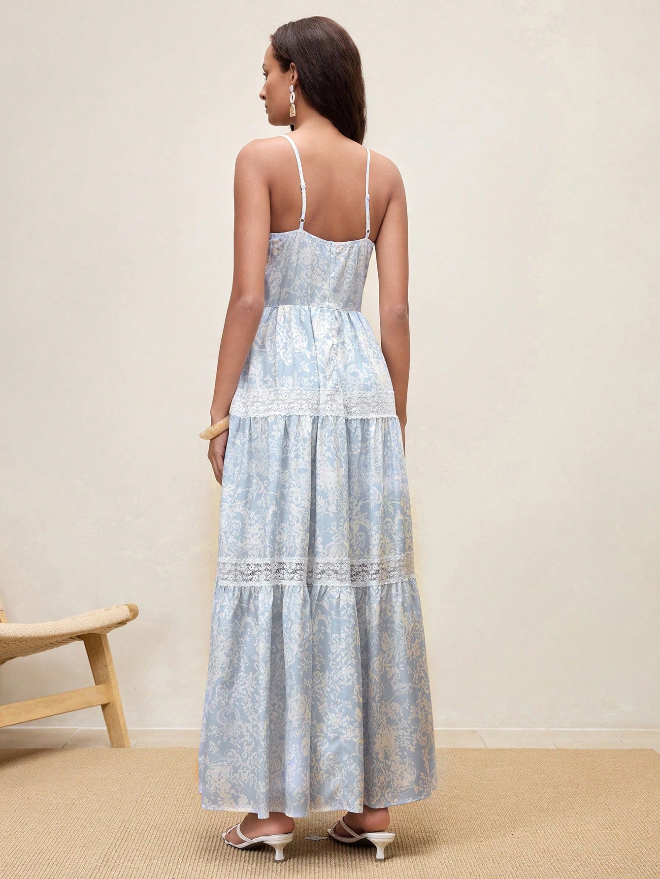 Arave Women's Ditsy Floral Lace Patchwork Camisole A-Line Maxi Dress For Women
