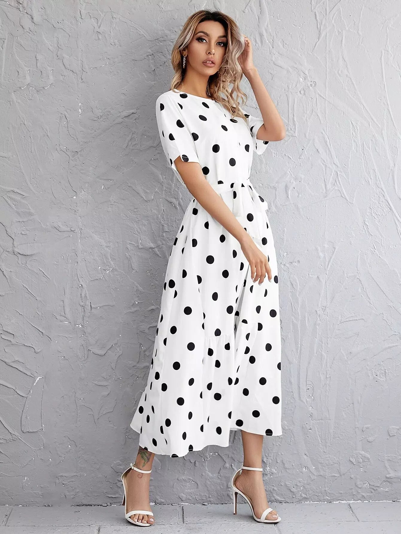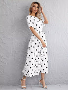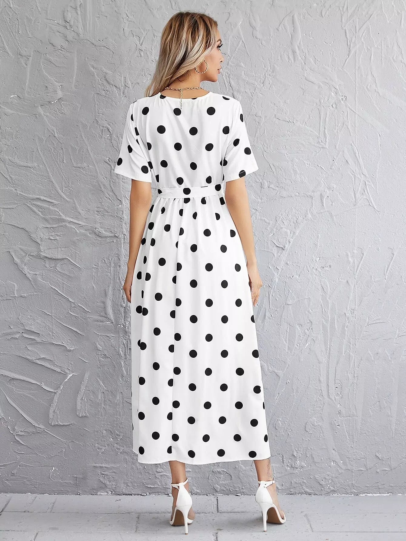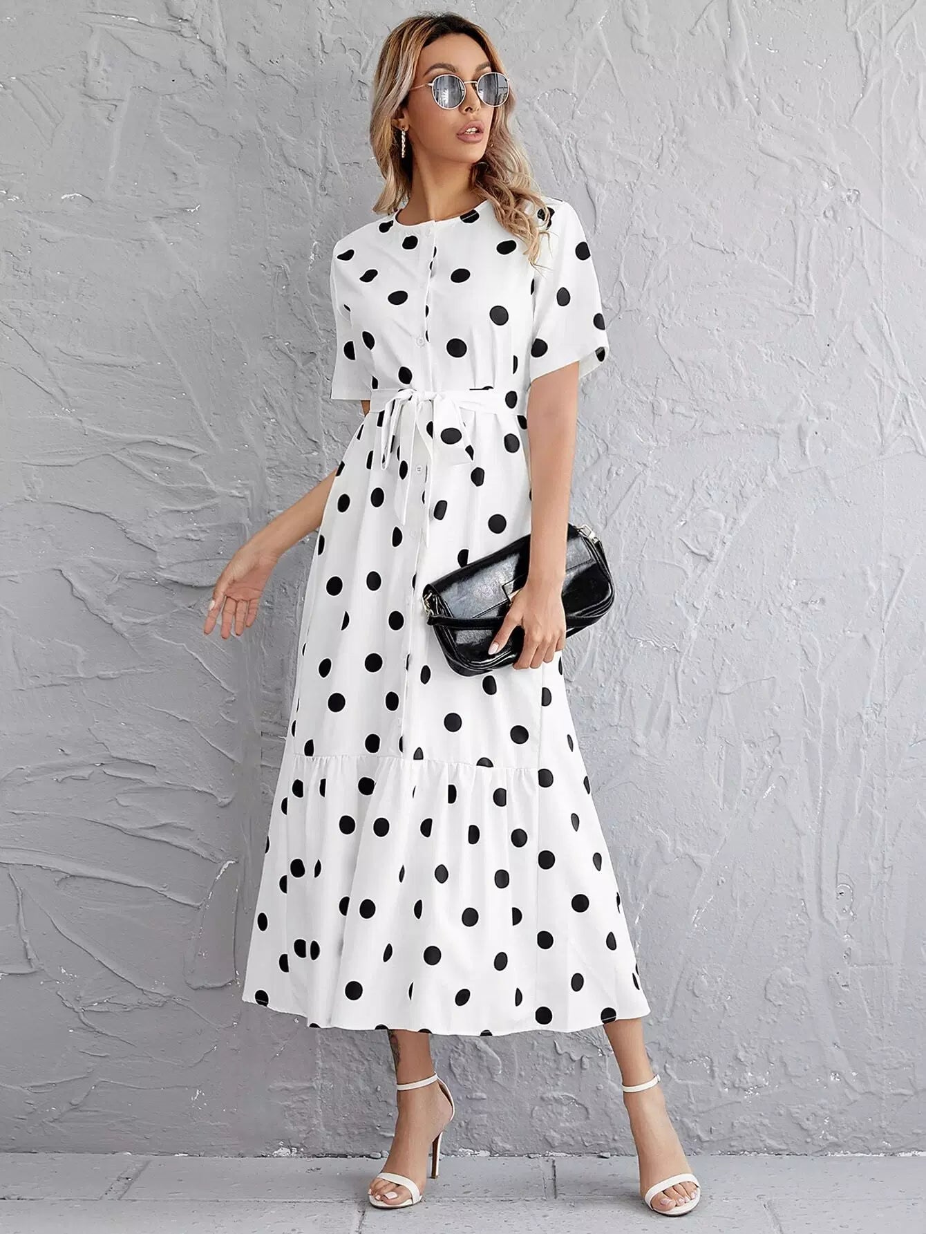 Button Front Ruffle Hem Polka Dot Dress Without Belt