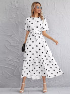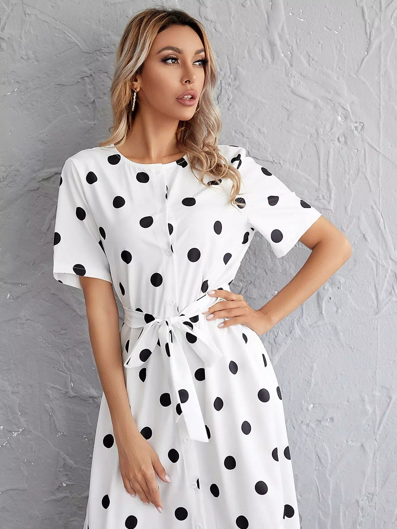 Women - Button Front Belted Ruffle Hem Polka Dot Dress
