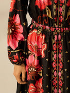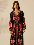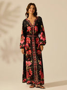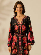 women CAJUNI Women's Boho Tropical Floral Print Puff Sleeve V-Neck Dress