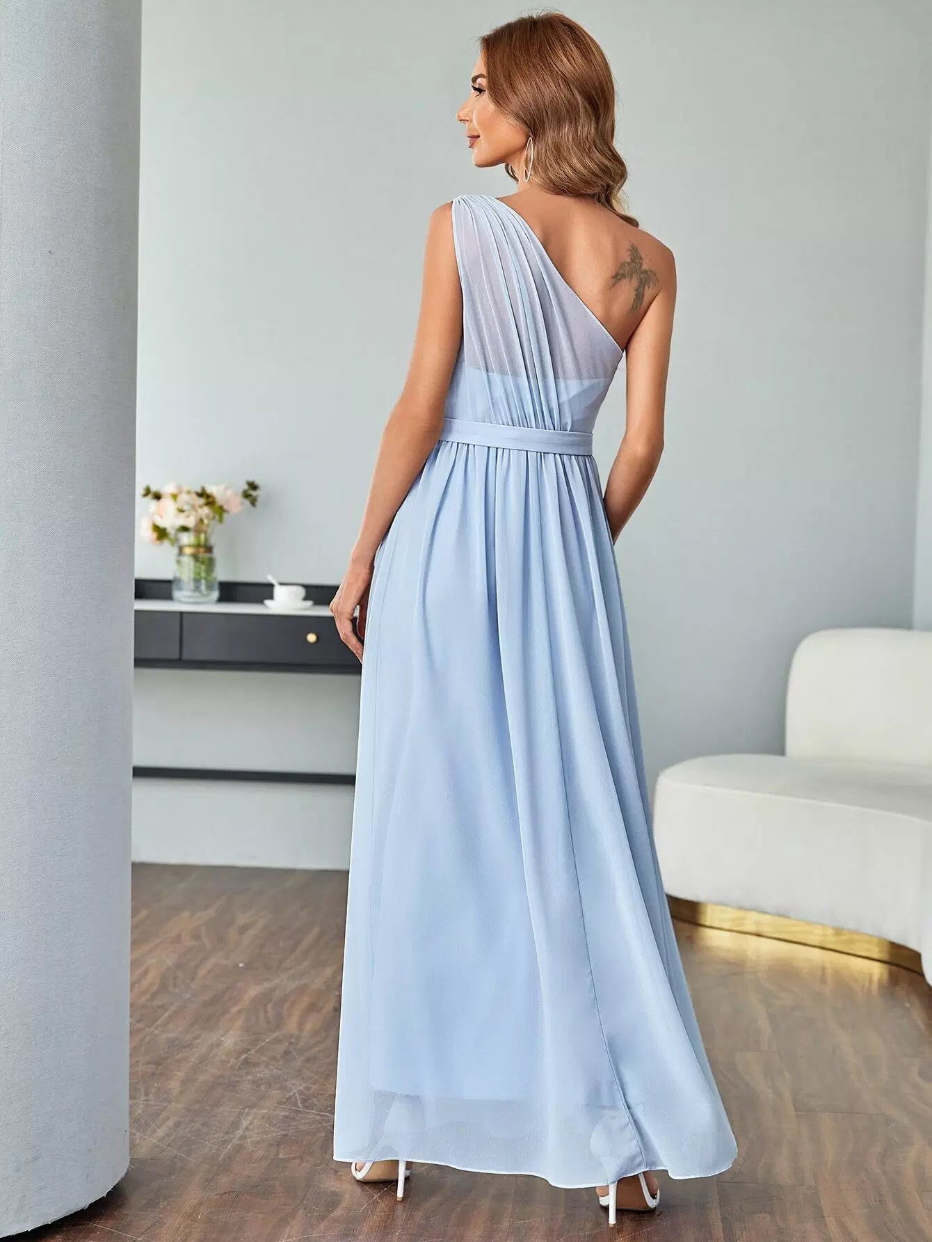 Chiffon One Shoulder Maxi Prom Dress