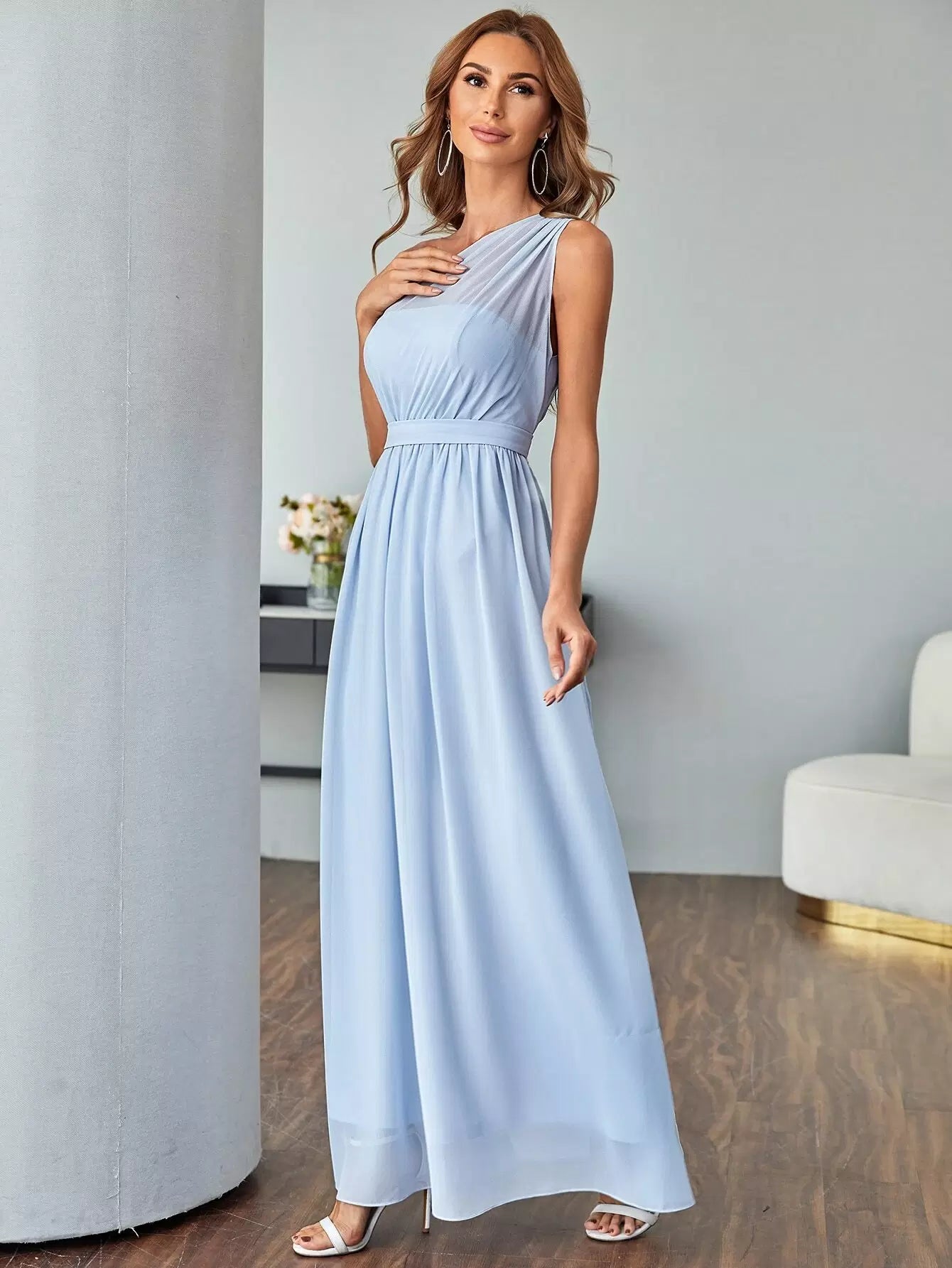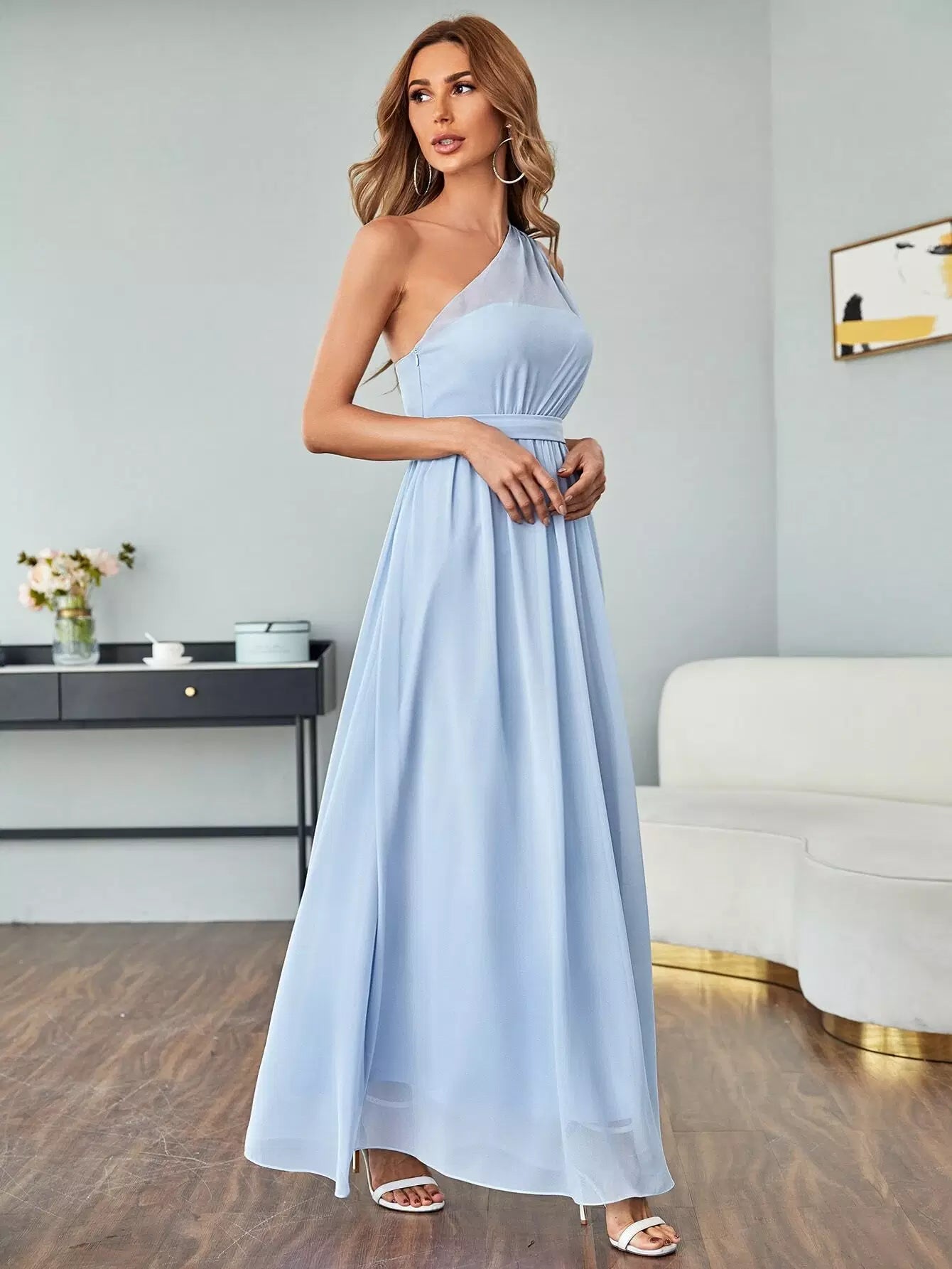 Women - Chiffon One Shoulder Maxi Prom Dress