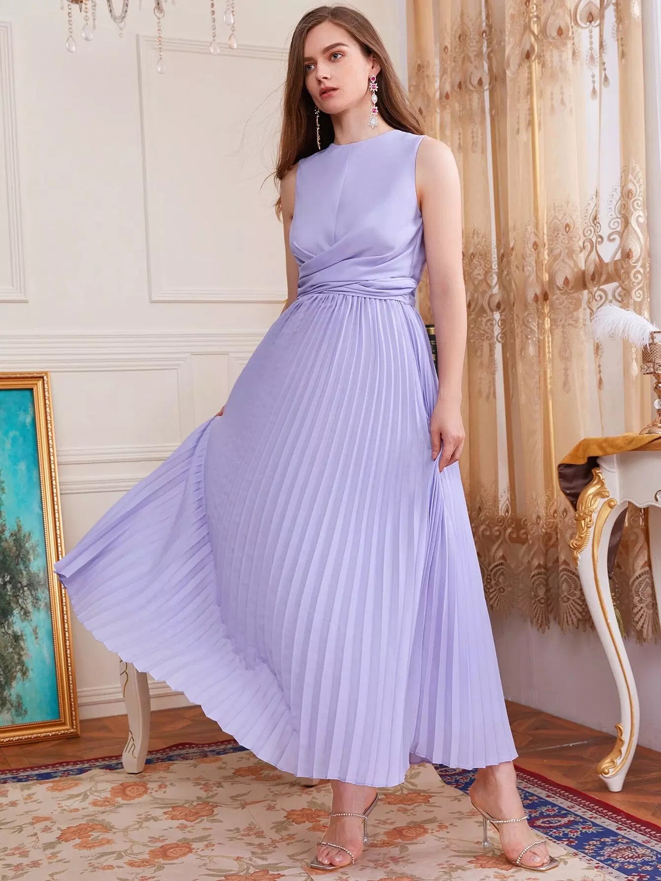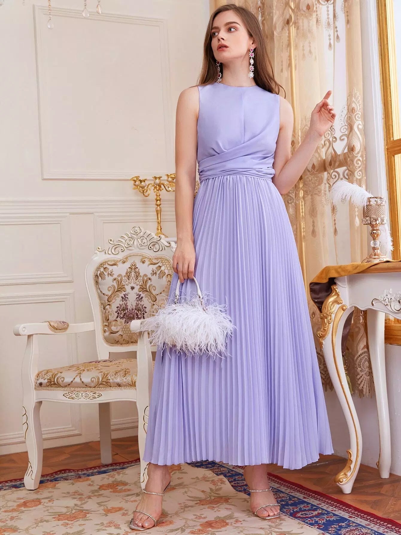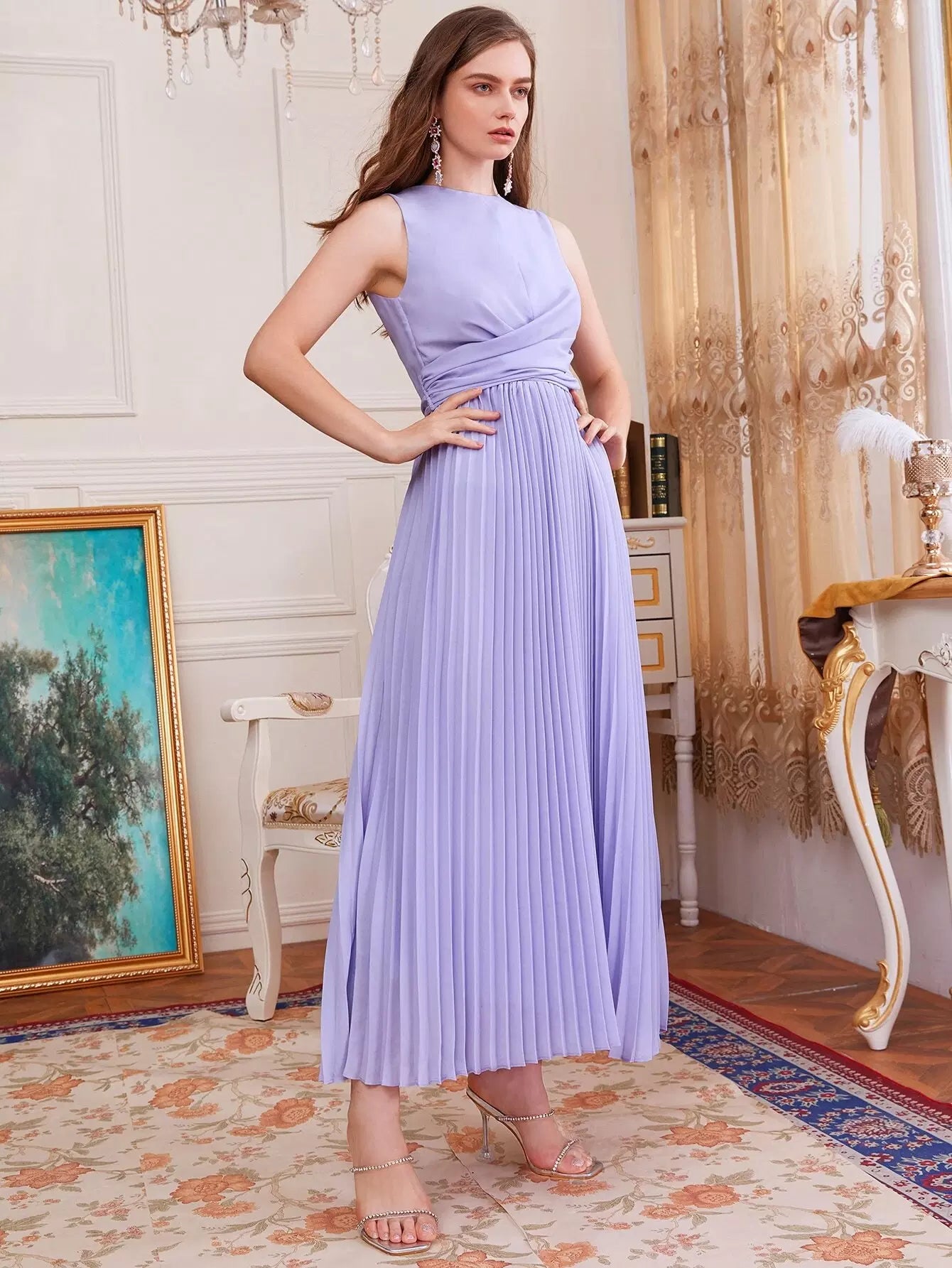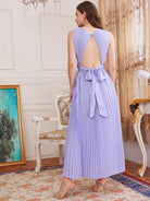 Cut Out Tie Back Pleated Hem Maxi Dress