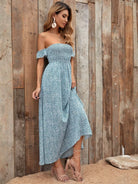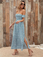Ditsy Floral Shirred Split Thigh Bardot Dress