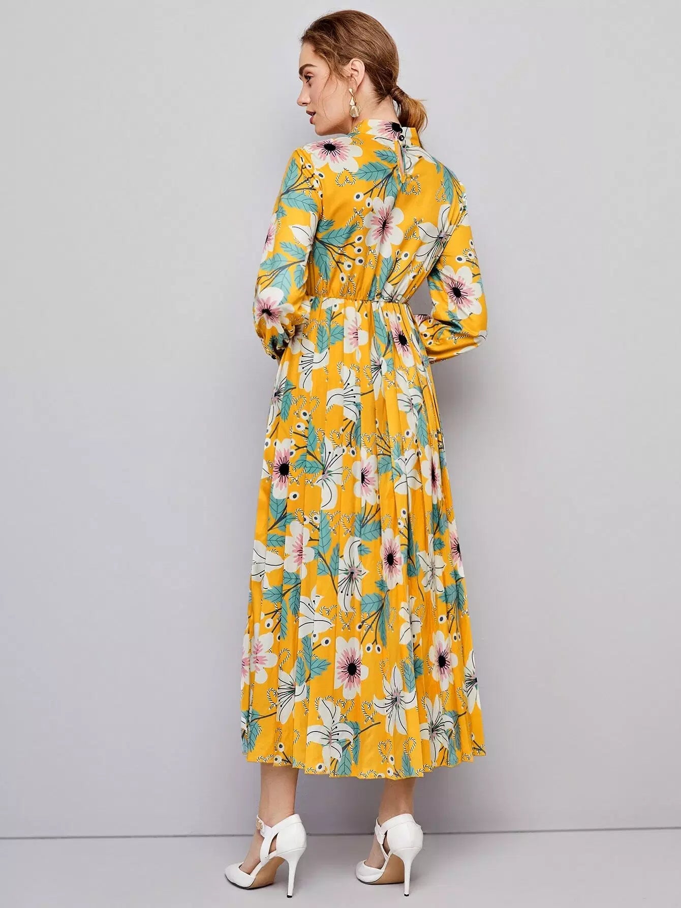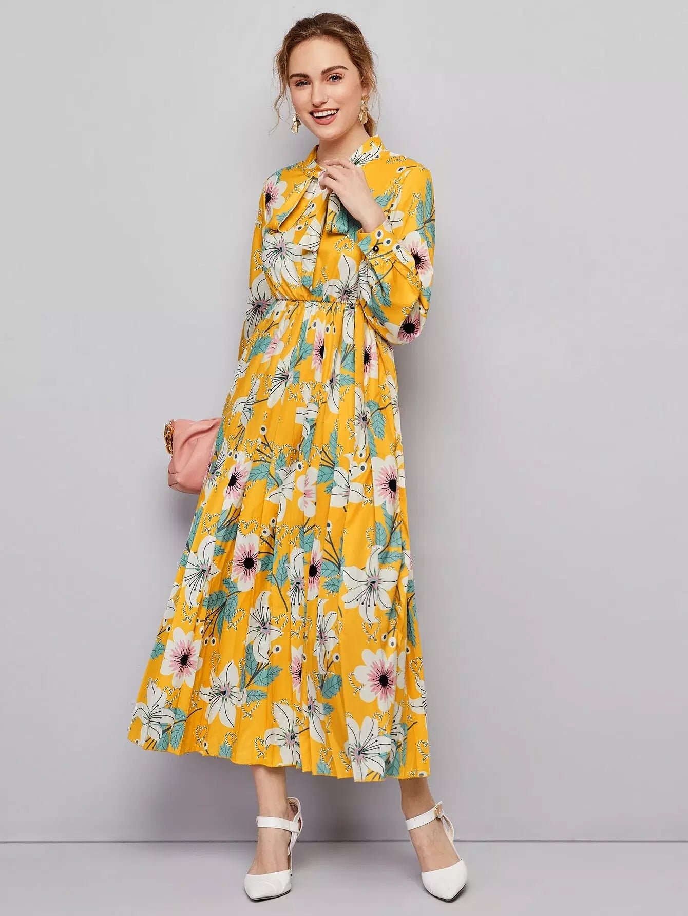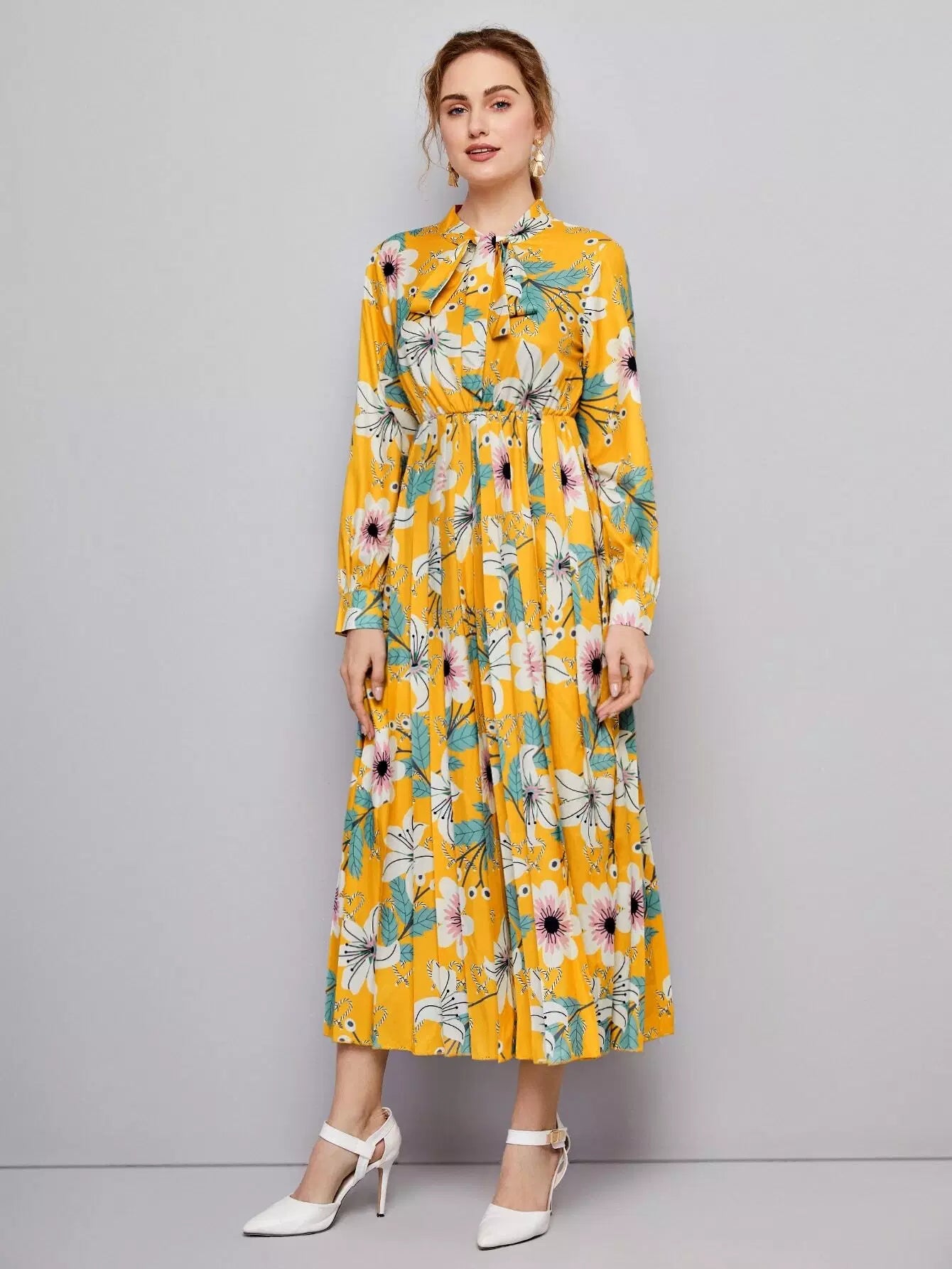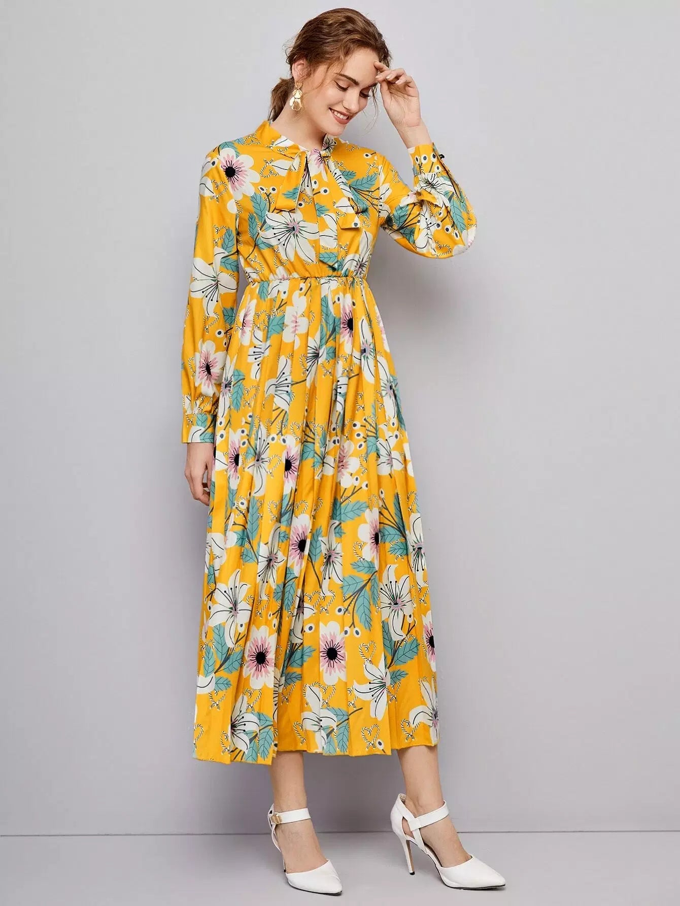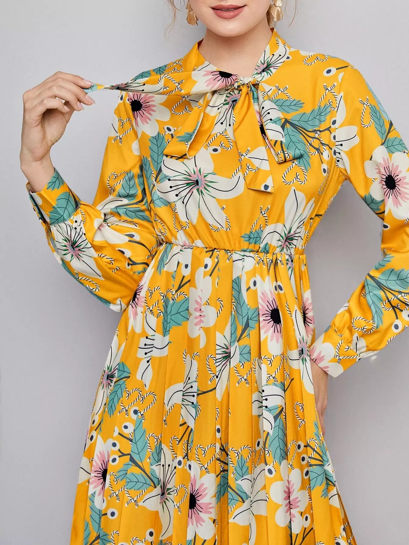 Floral Print Tie Neck Dress
