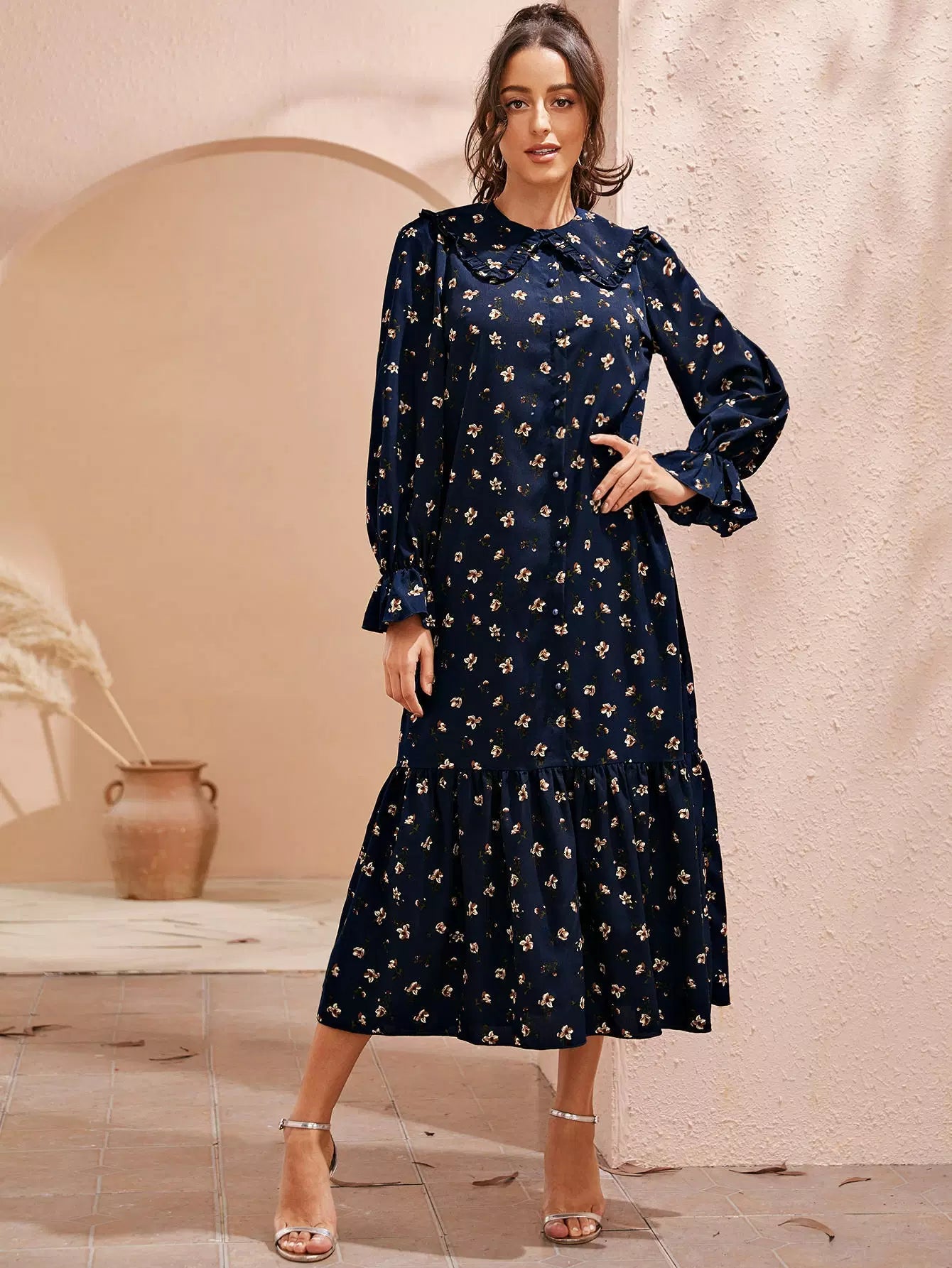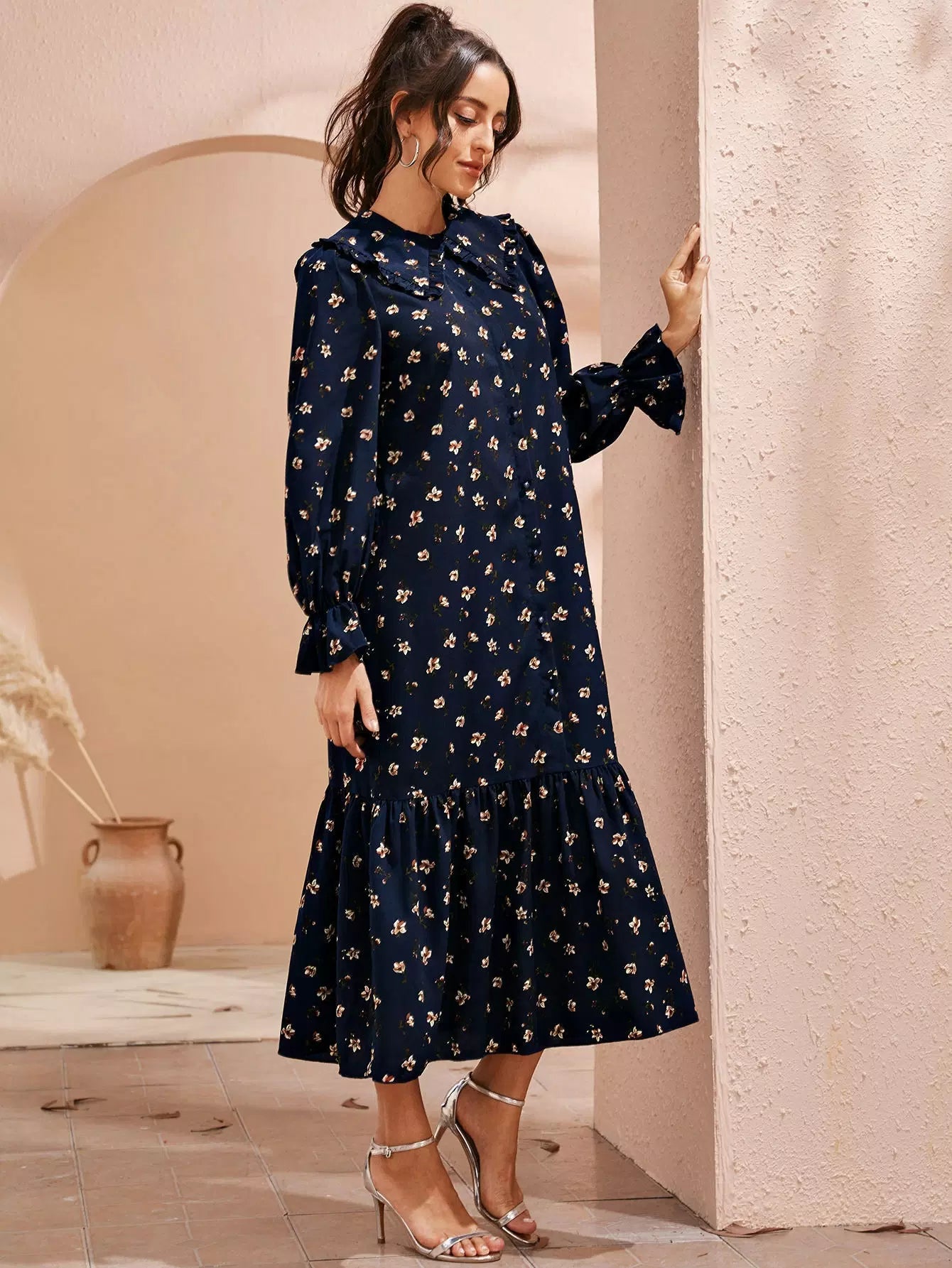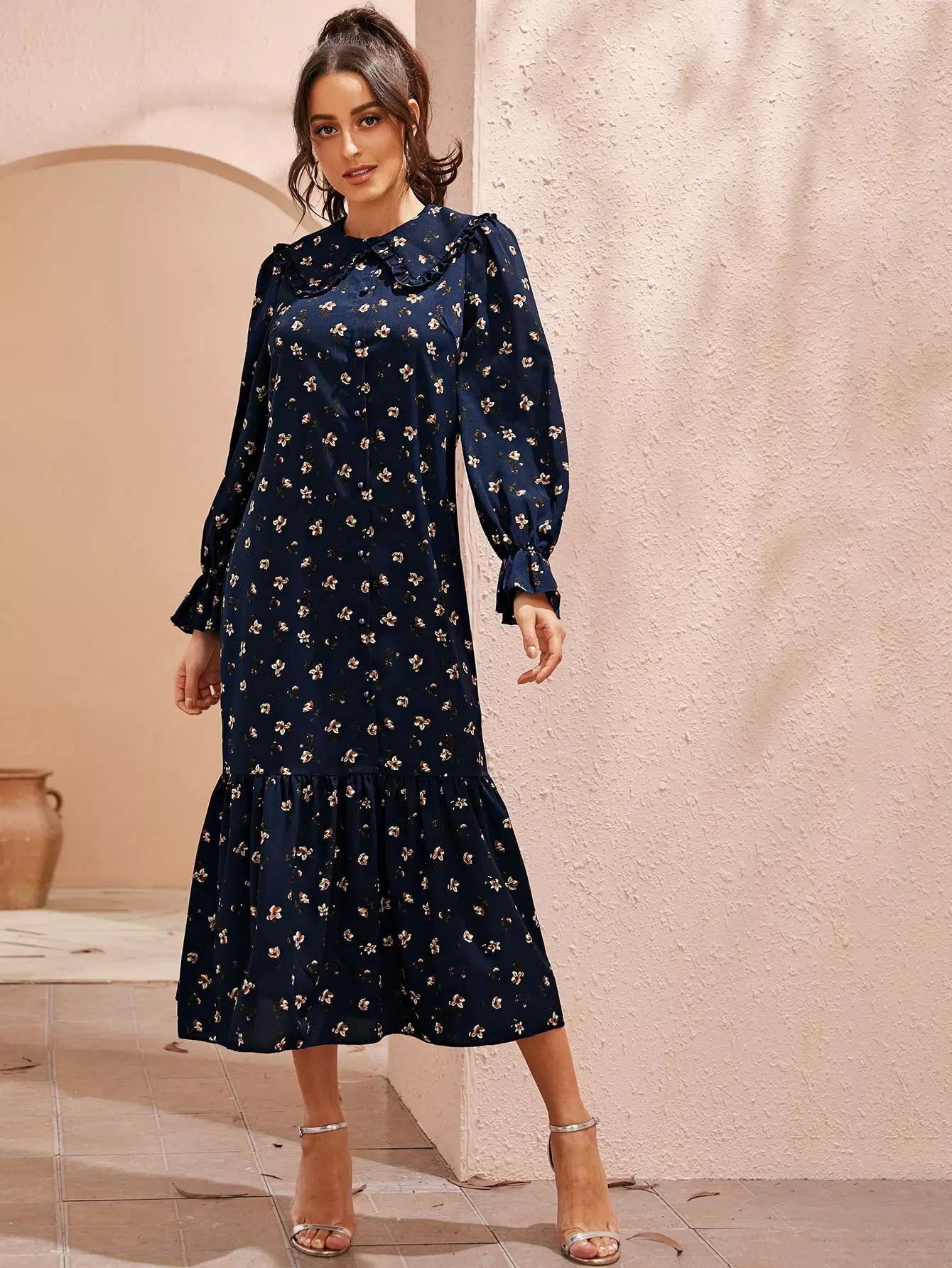 Women - Flounce Sleeve Ditsy Floral Smock Dress