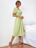 Women - Flounce Sleeve Shirred Detail Split Thigh Dress