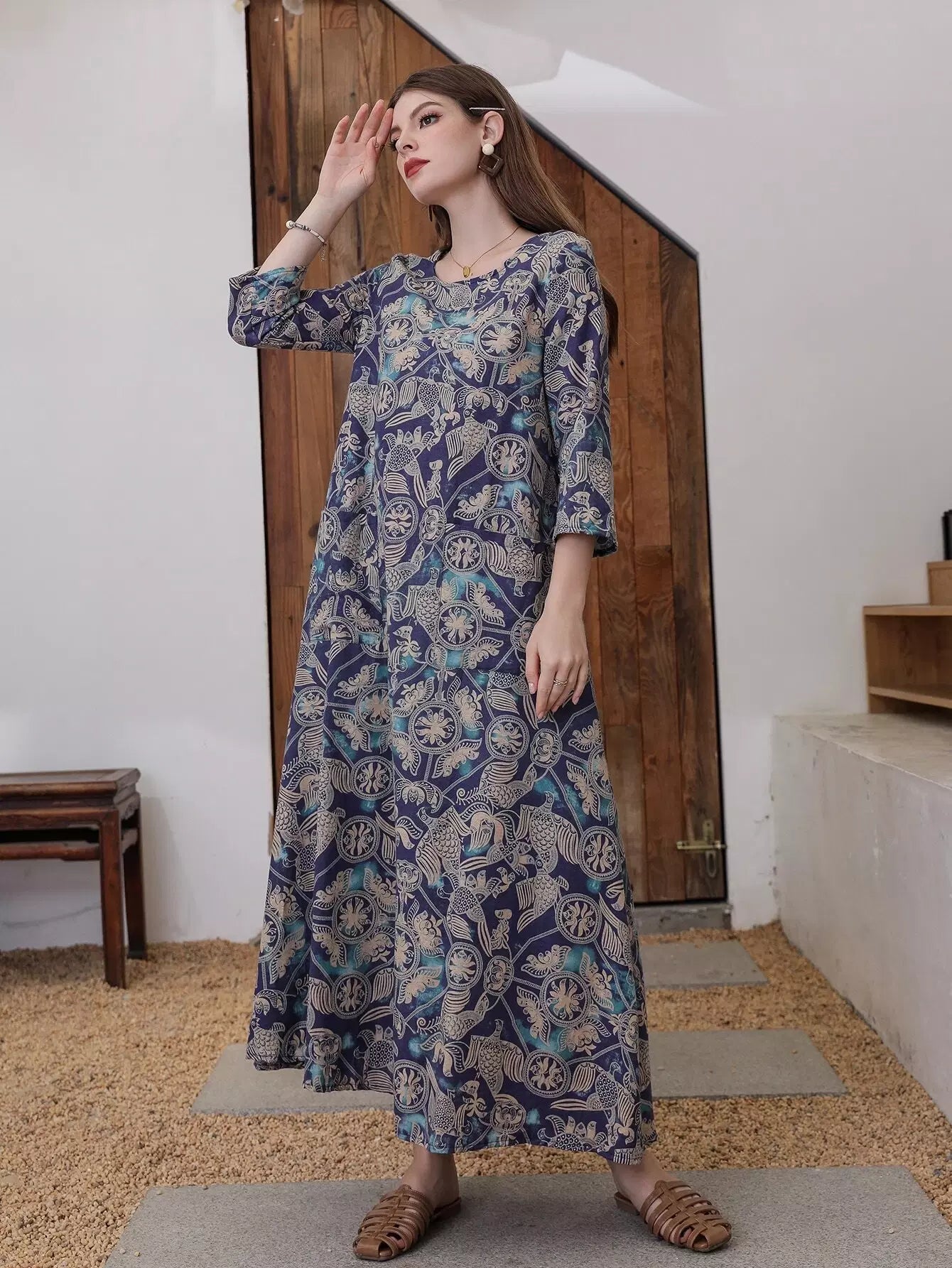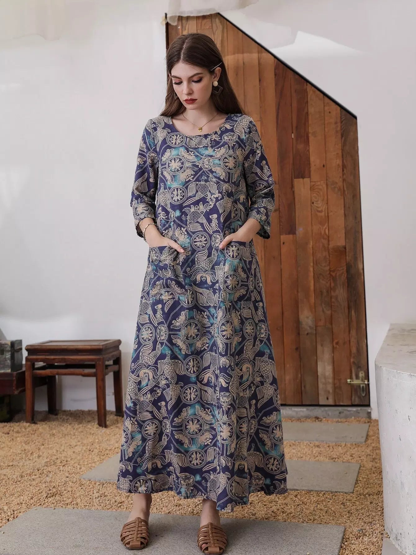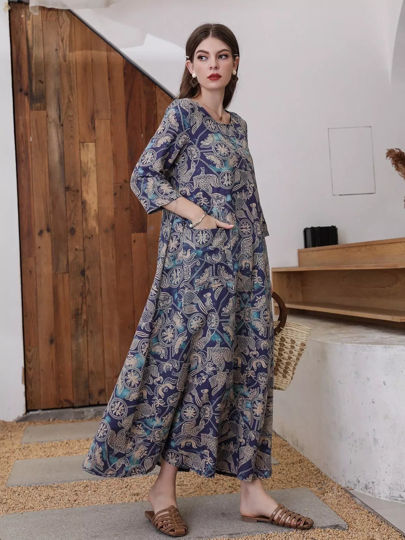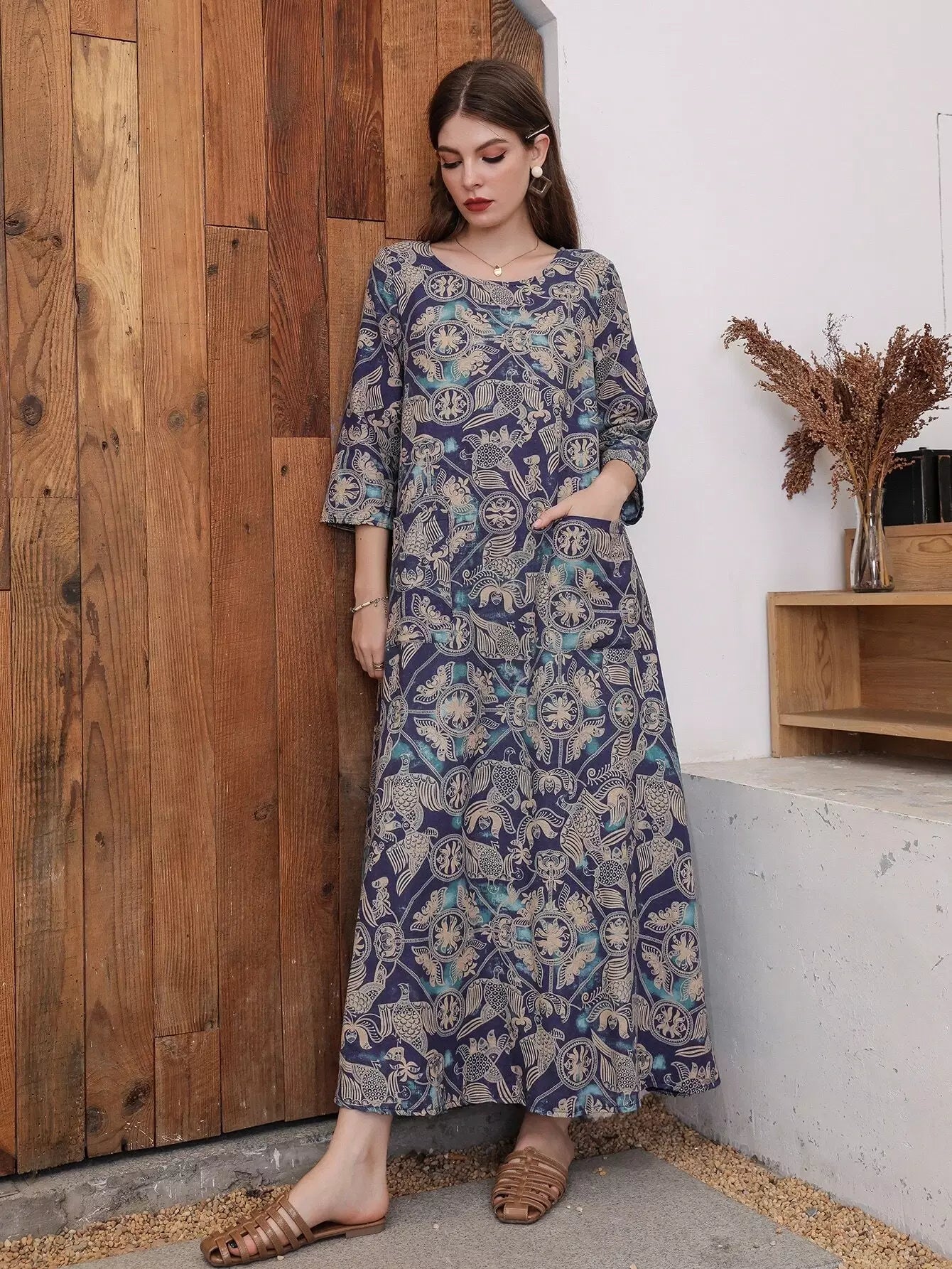 Graphic Print Dual Pocket Dress