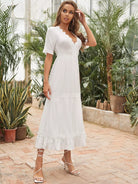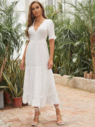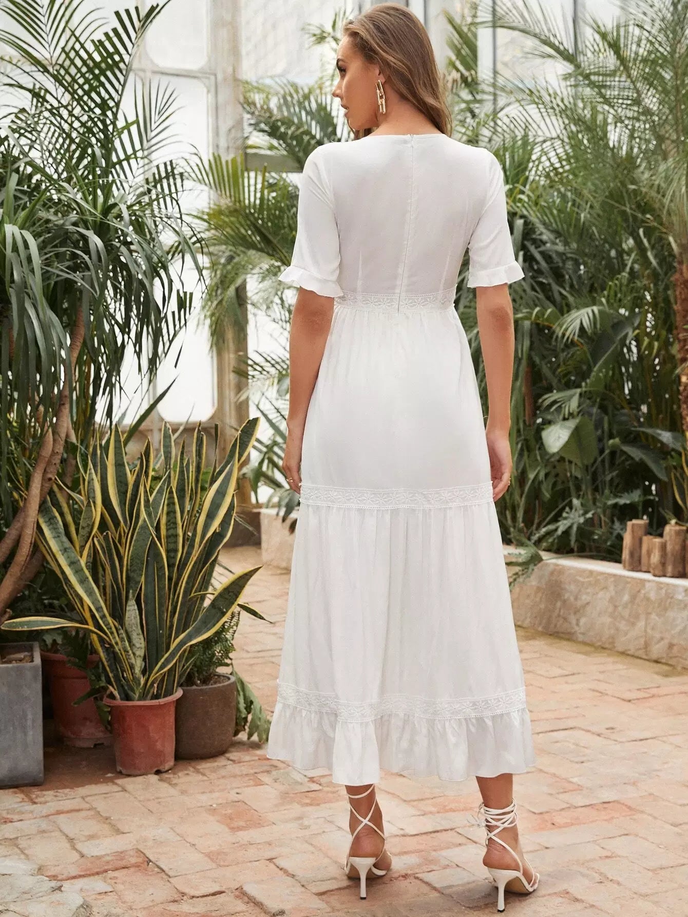 Women - Guipure Lace Trim Ruffle Hem Dress