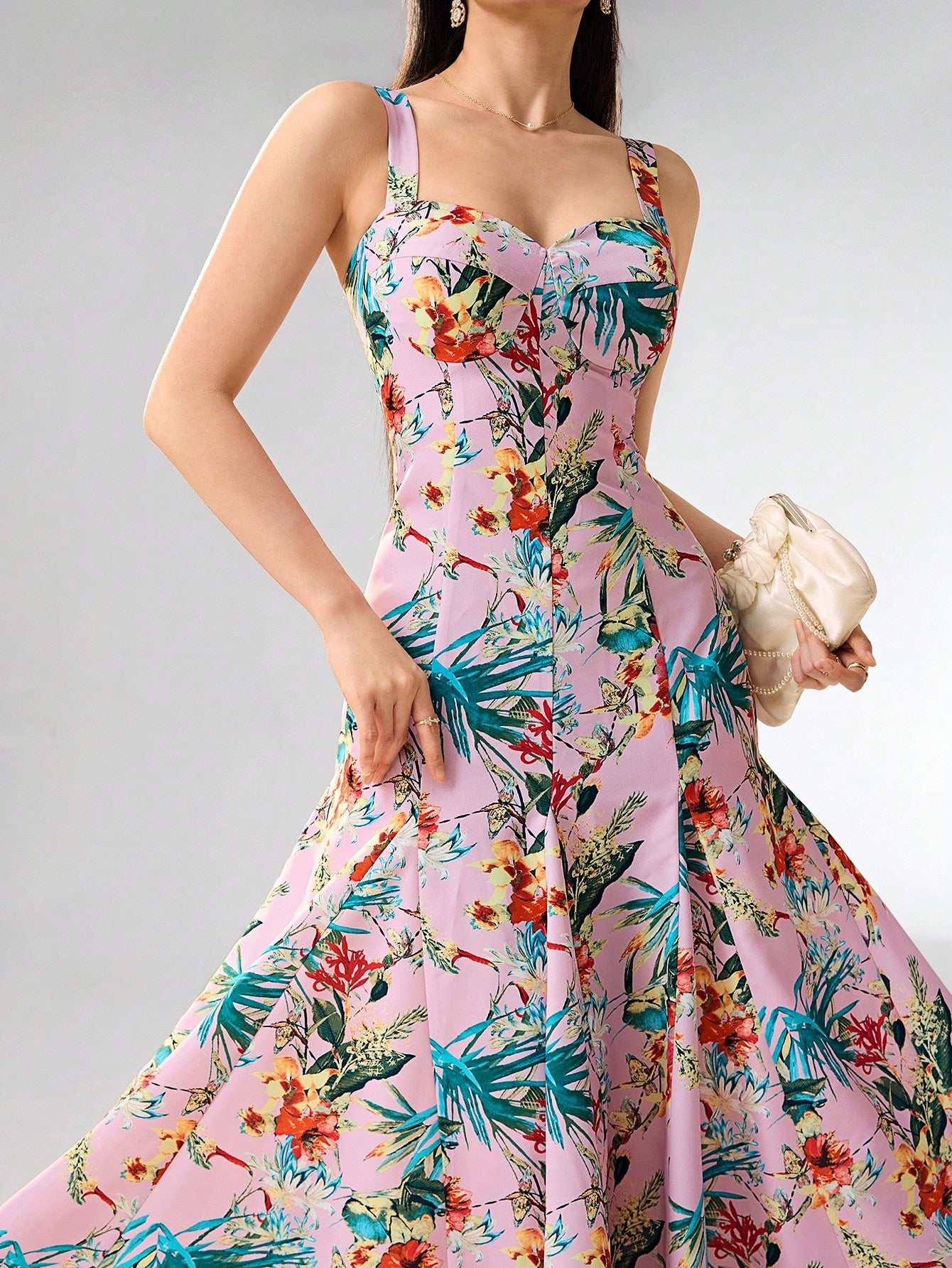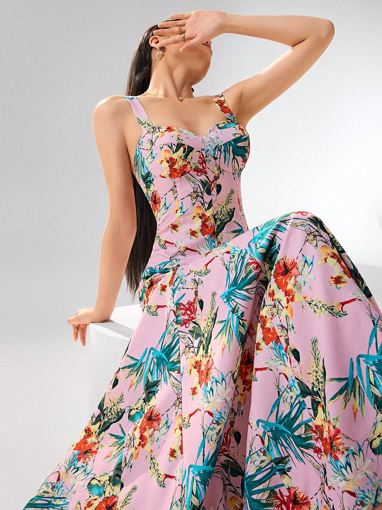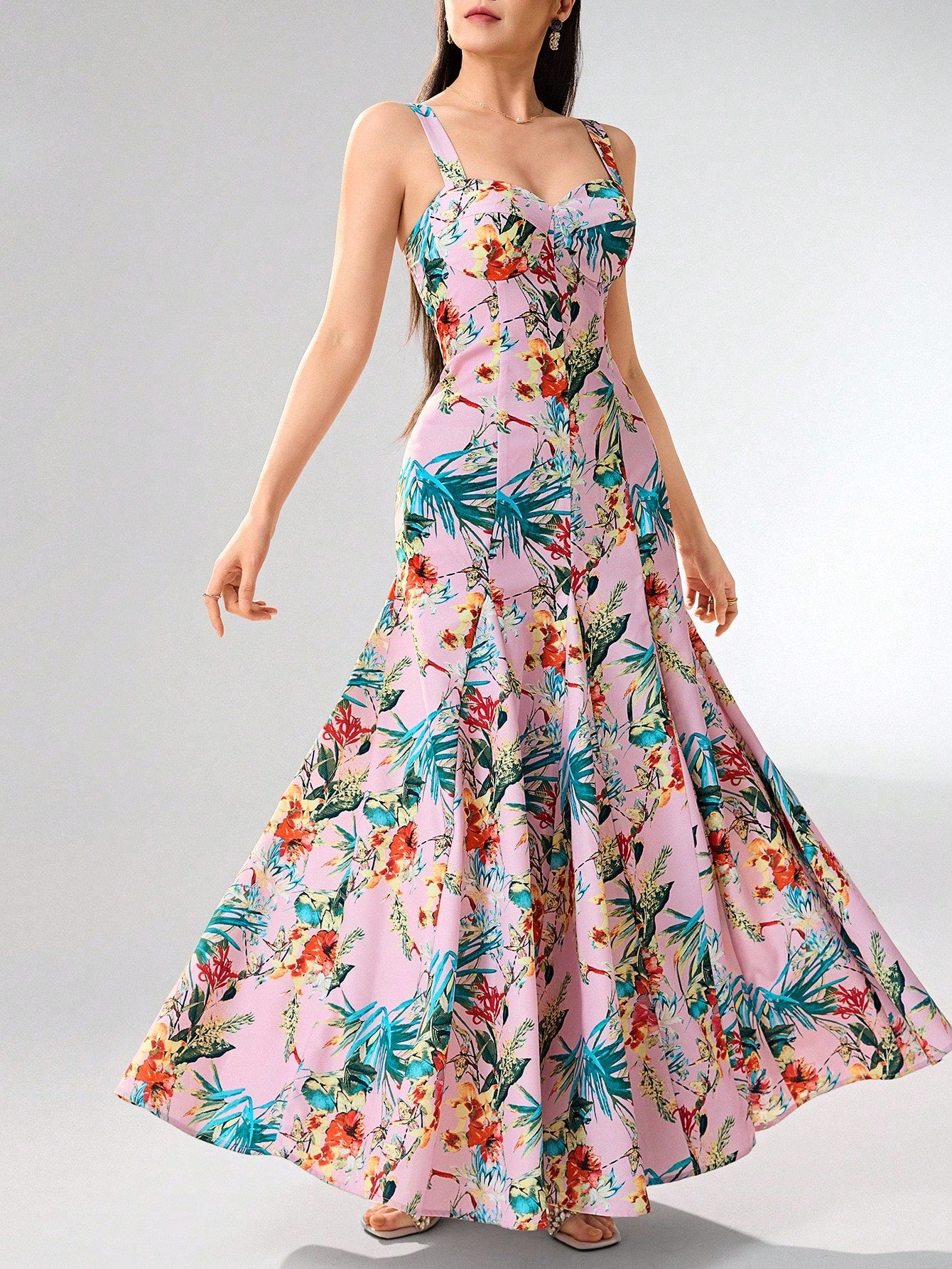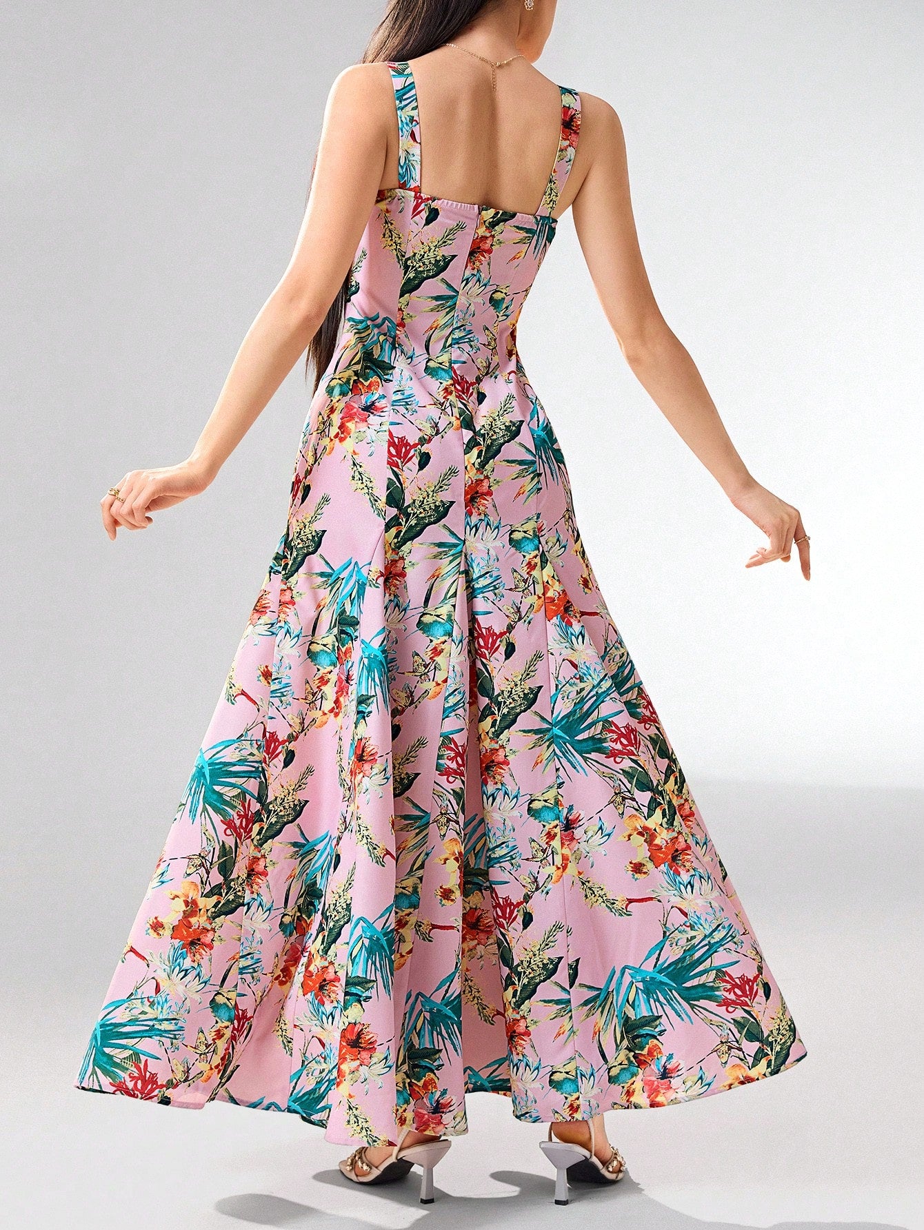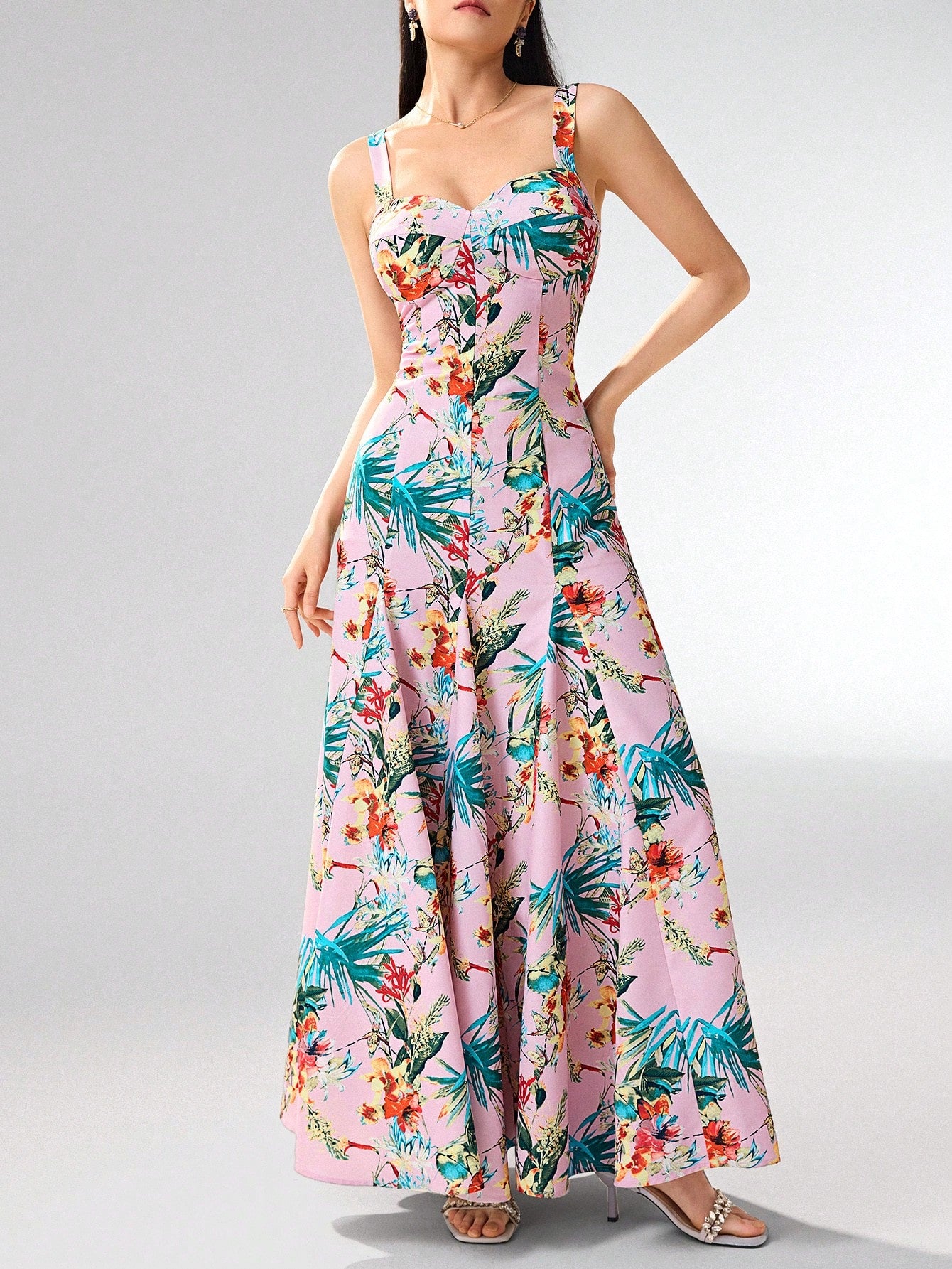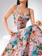 Heiryn Women's Boho Maxi Dress: Pink Tropical Floral Print
