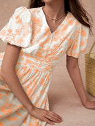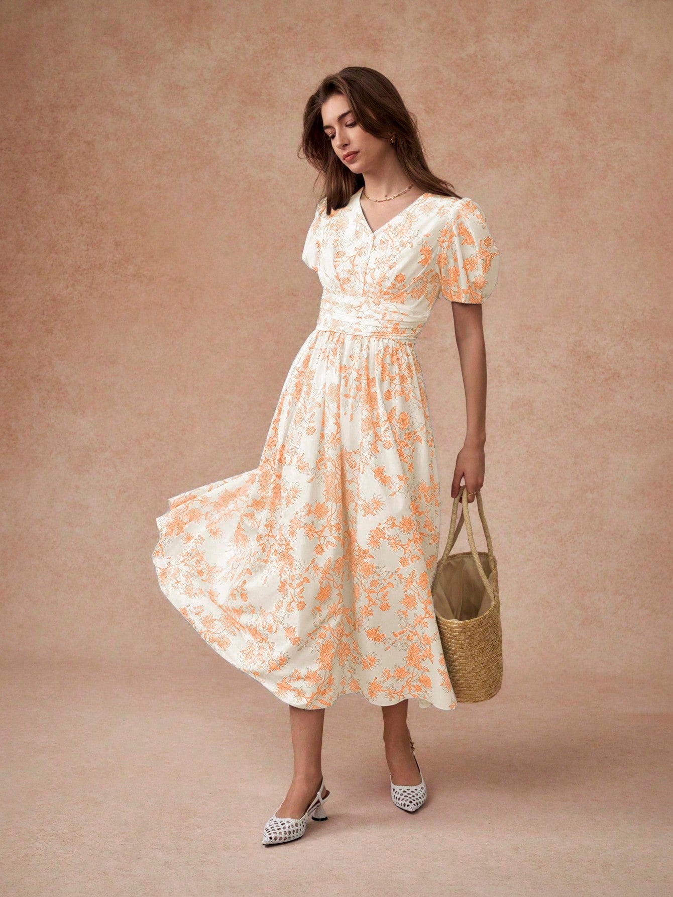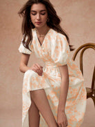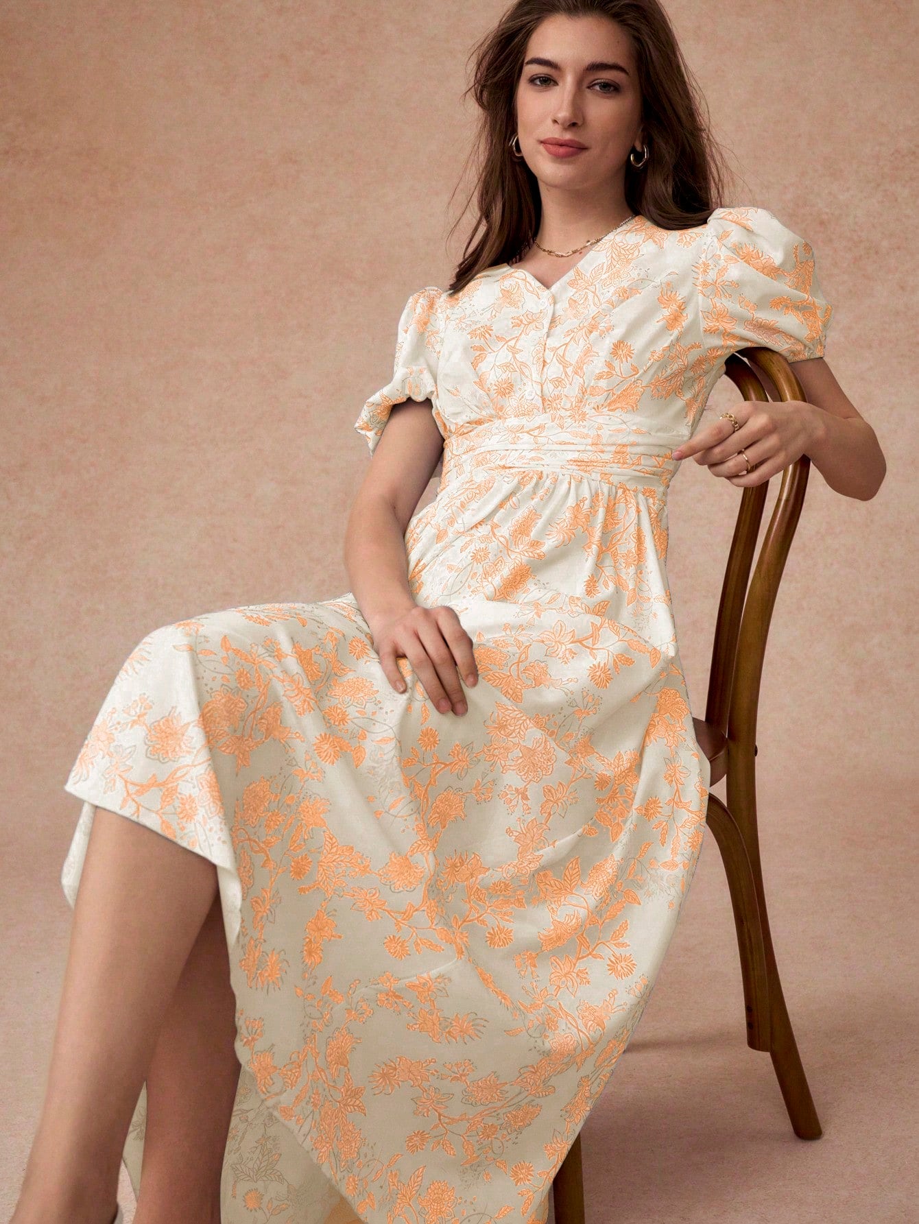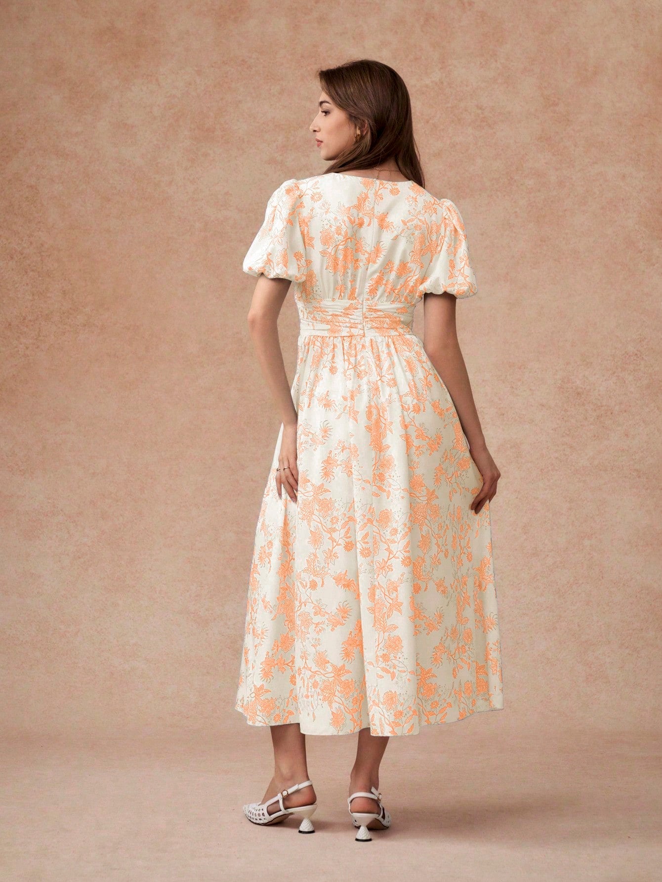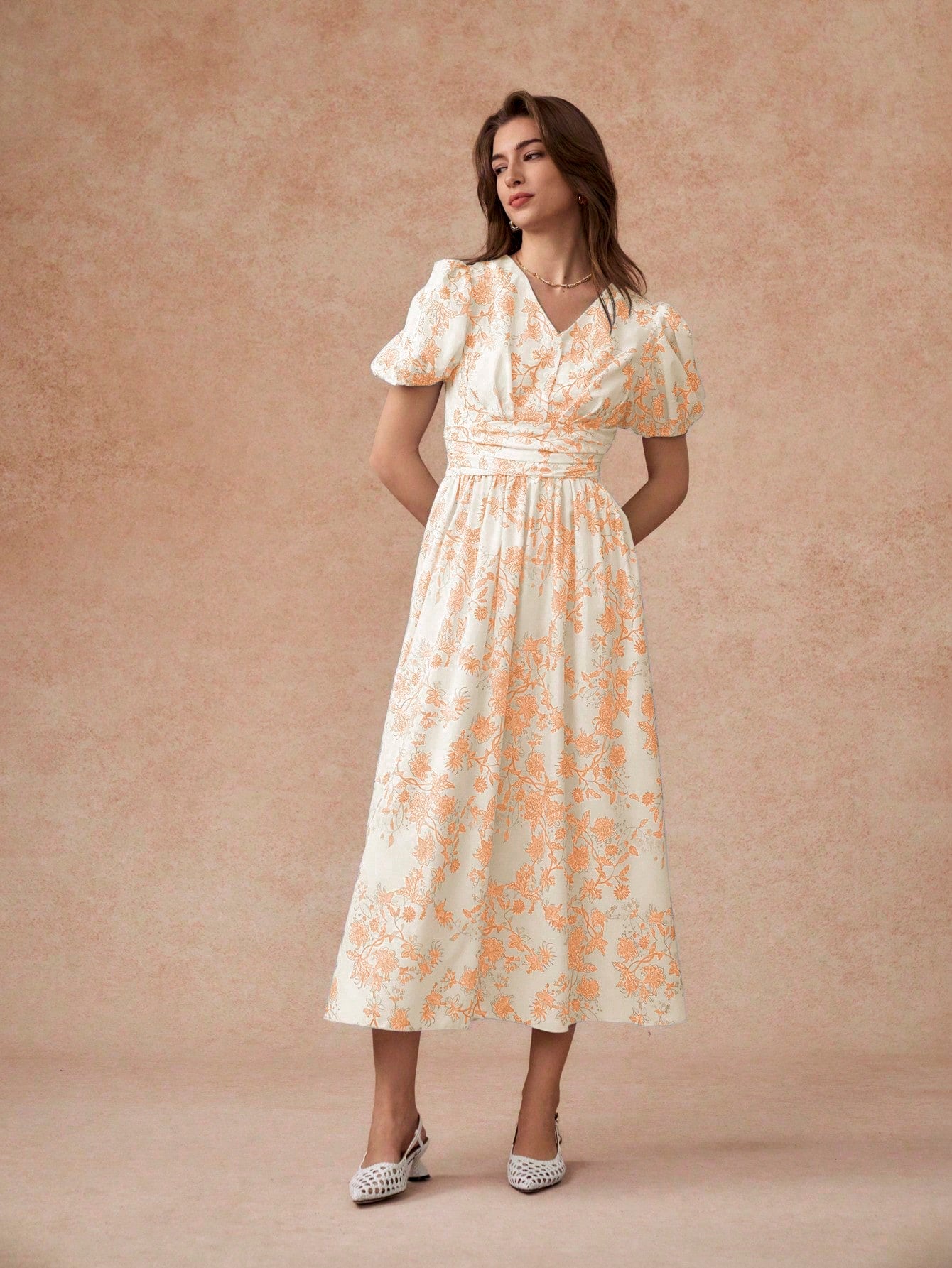 ï؟½closï؟½ra Elegant Puff Sleeve V-Neck Cinched Waist Dress