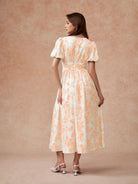 women ï؟½closï؟½ra Elegant Puff Sleeve V-Neck Cinched Waist Dress