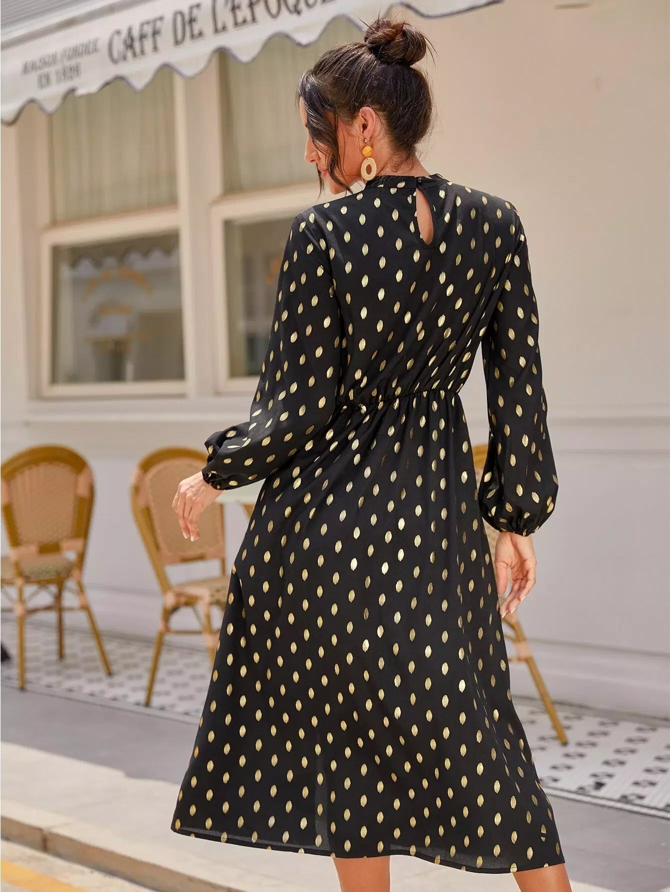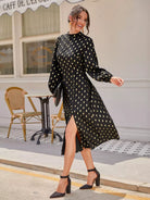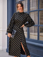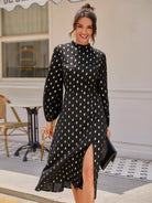 Mock Neck Gold Dot Split Thigh Dress