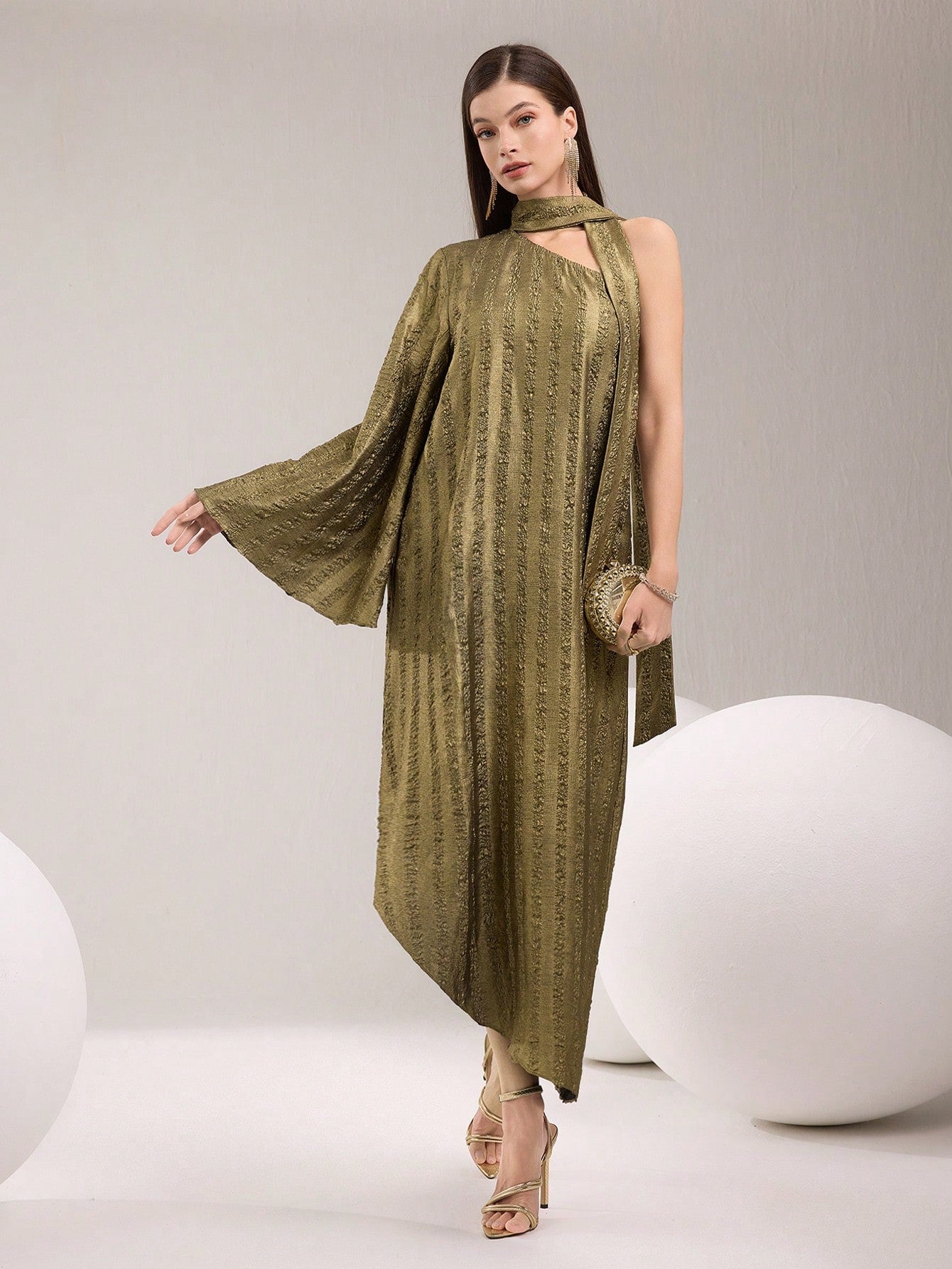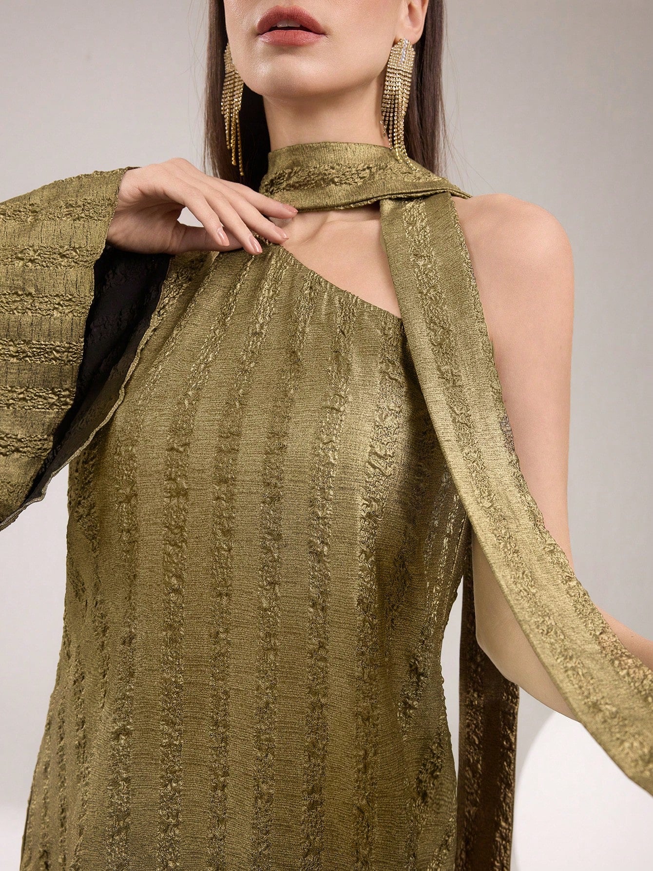 Modelyn Women's Elegant Banquet Metallic Dress With Ribbon Fabric