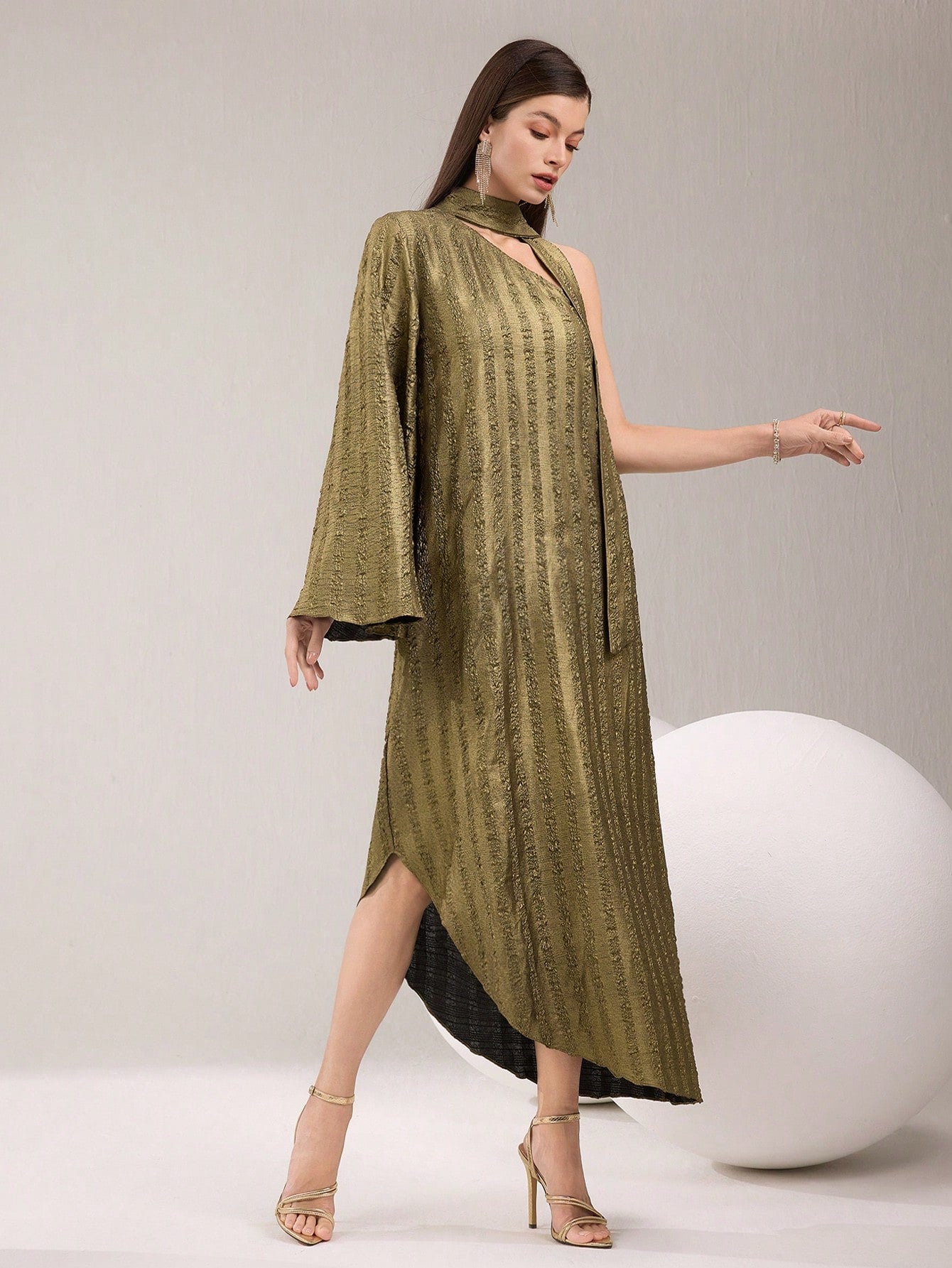 women Modelyn Women's Elegant Banquet Metallic Dress With Ribbon Fabric