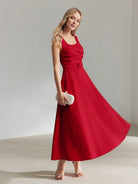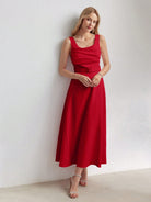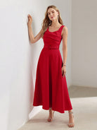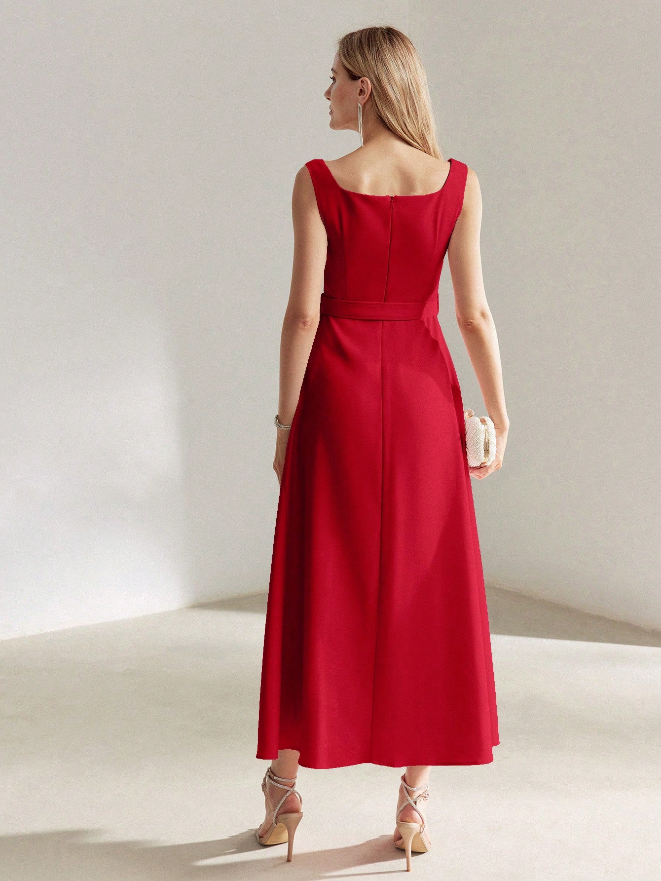 MOTF PREMIUM SOLID RUCHED BODICE FLARE HEM BUCKLE LONG DRESS Without Belt