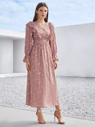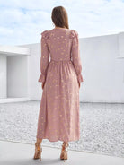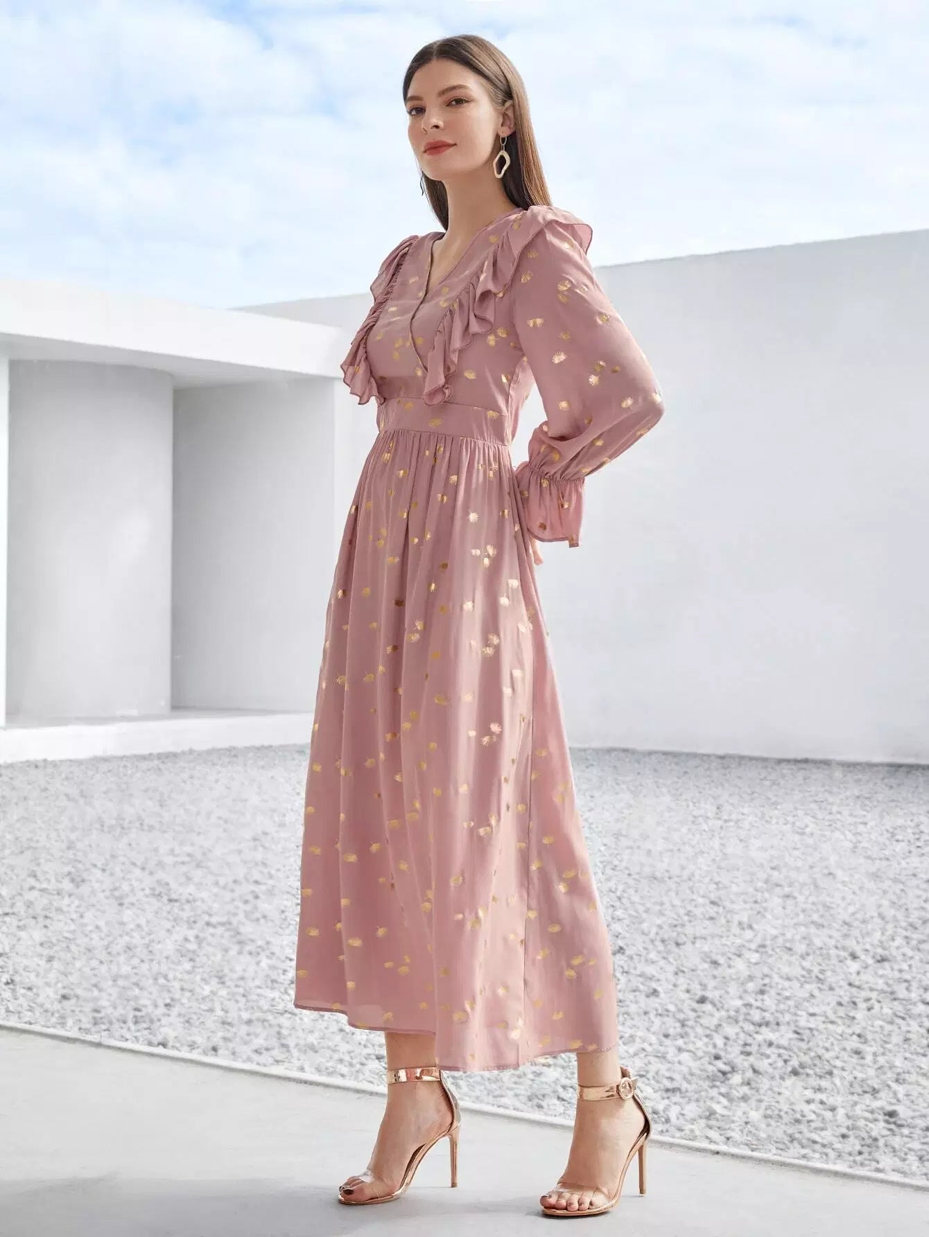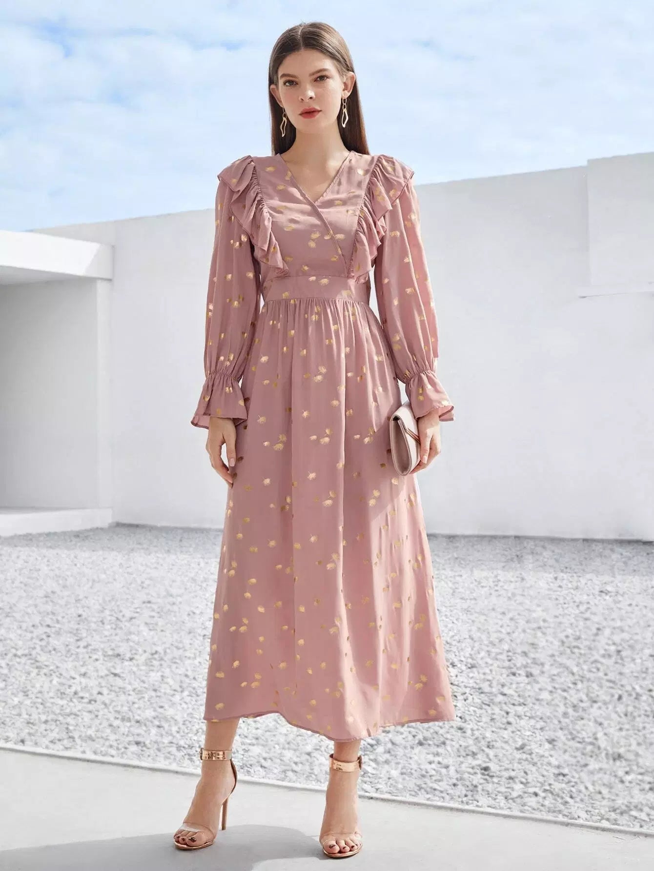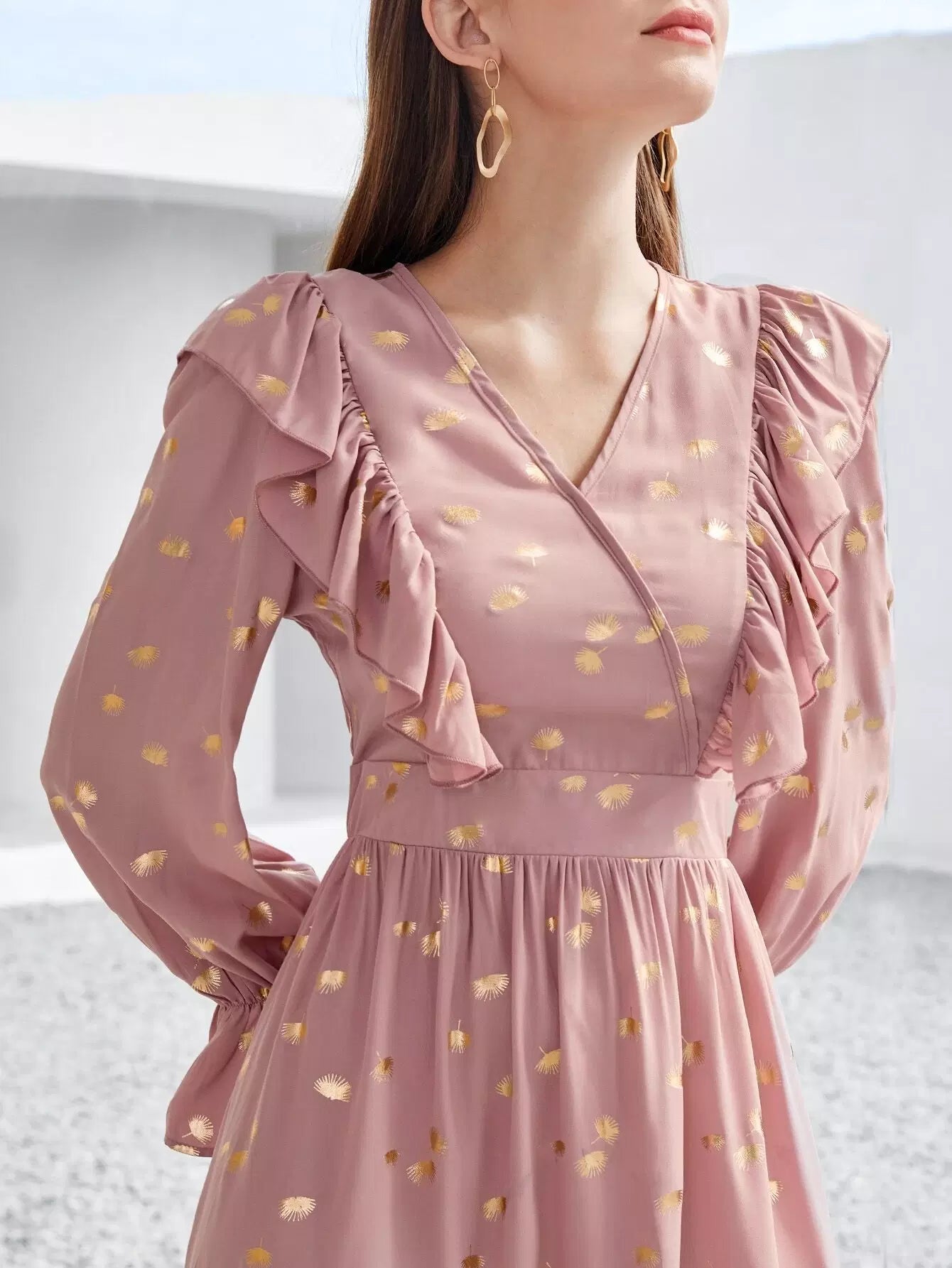 Plants Print Ruffle Trim Flounce Sleeve A-line Dress