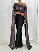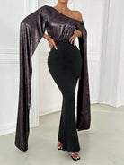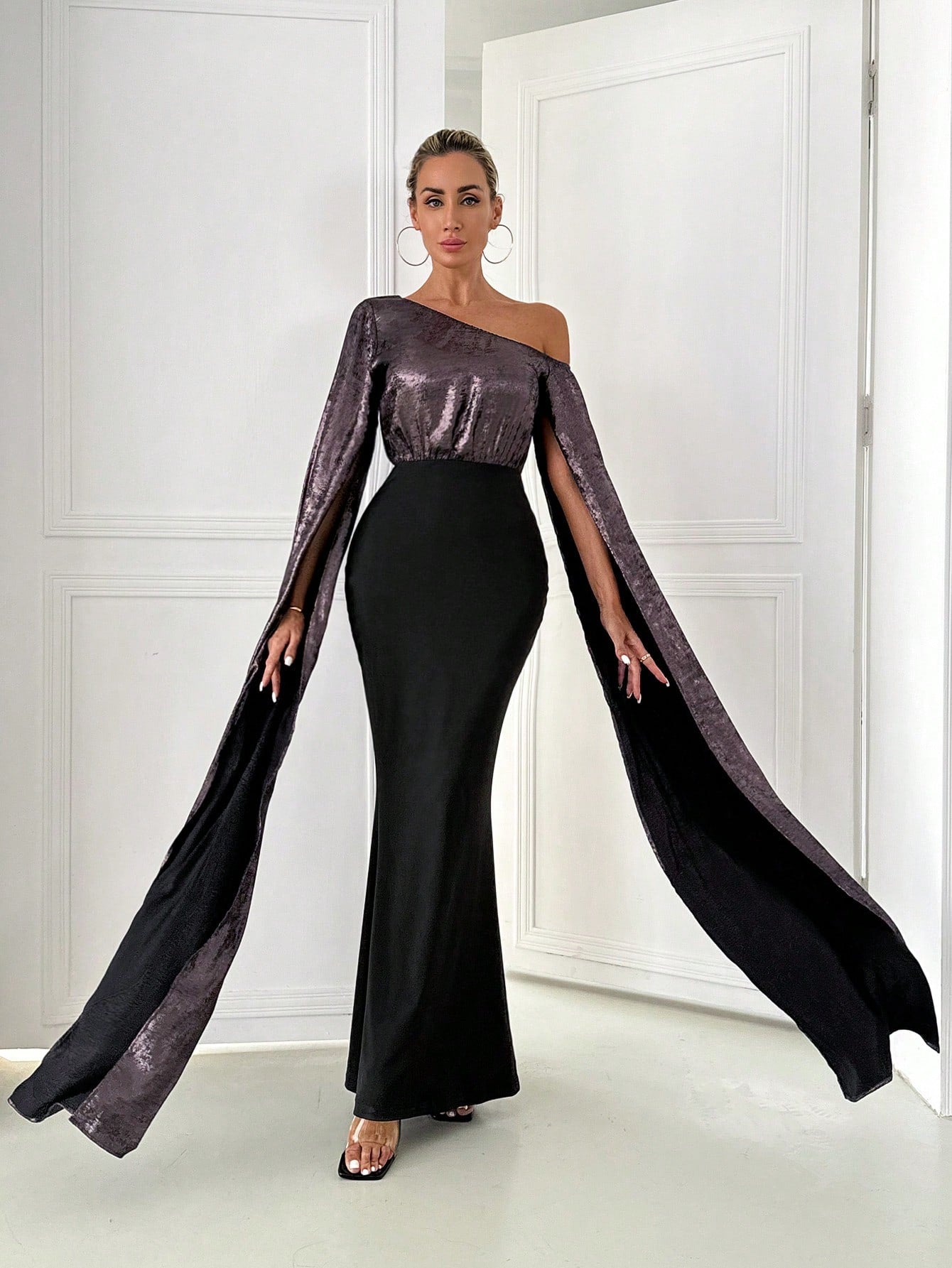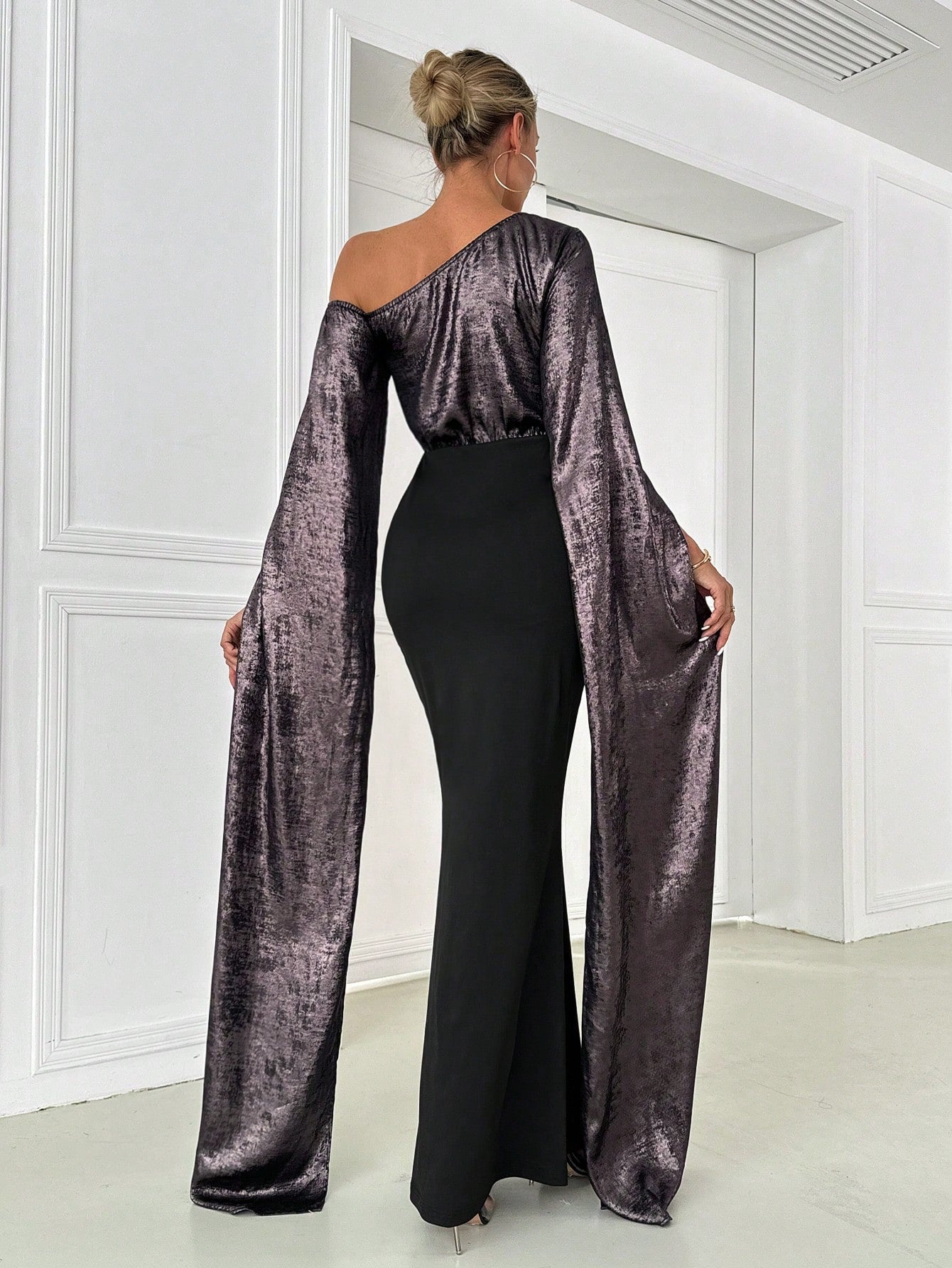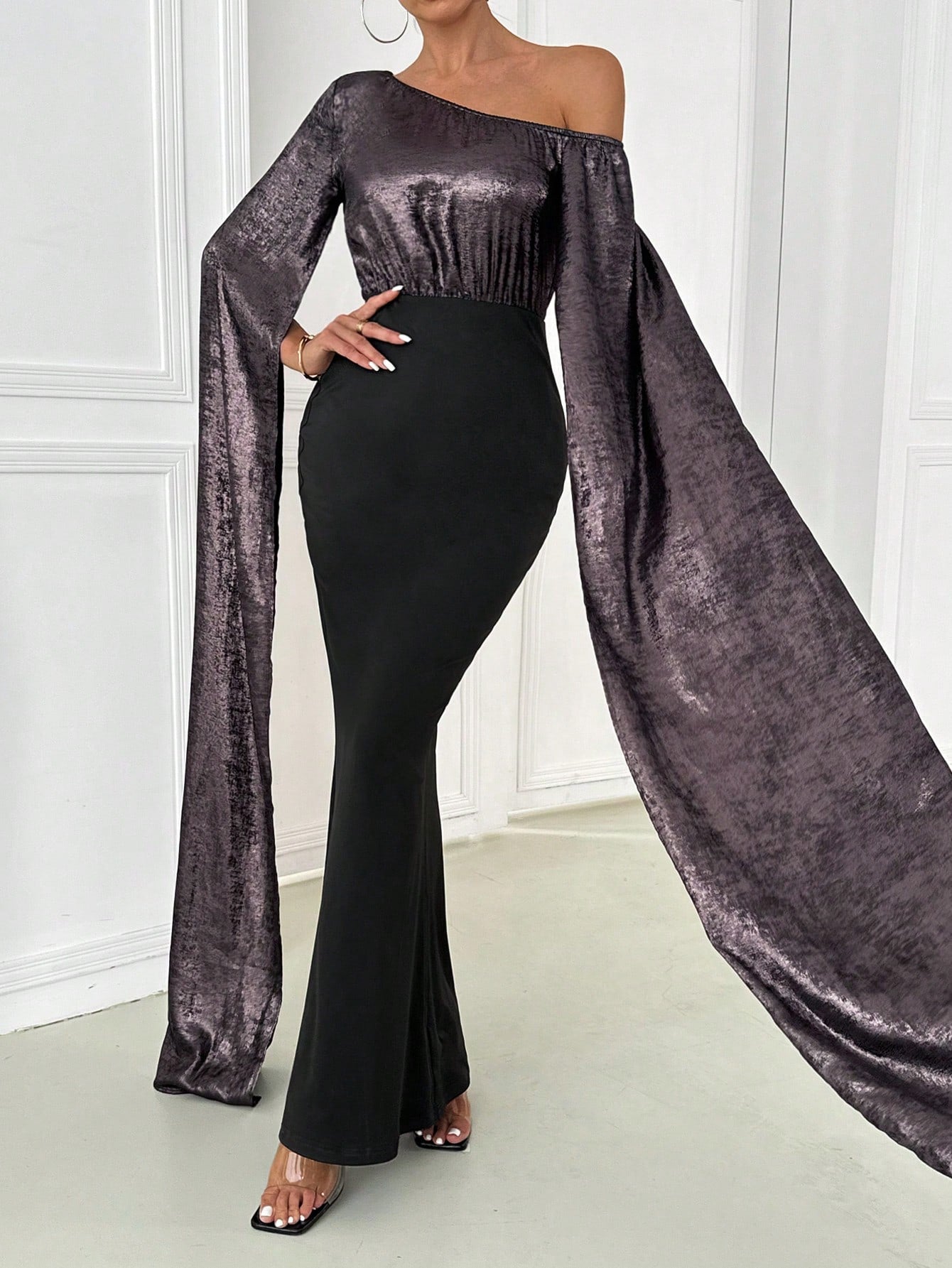 SHEIN Clasi Women Elegant Asymmetrical Collar Oversized Sleeve Fitted Dress