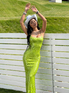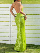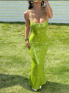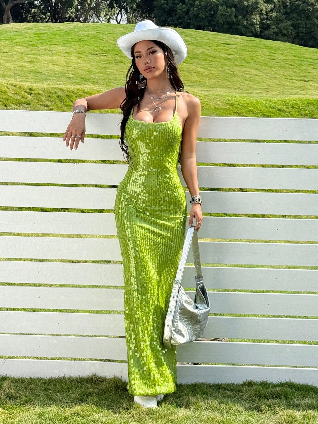 SHEIN EZwear Women's Solid Sequins Embellished Elegant Slim Fit Mid-Length Slip Dress