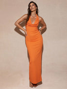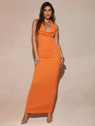 Silquee Women's Orange Draped Neck Halter Dress