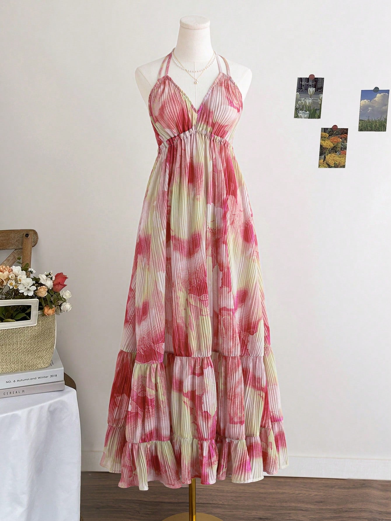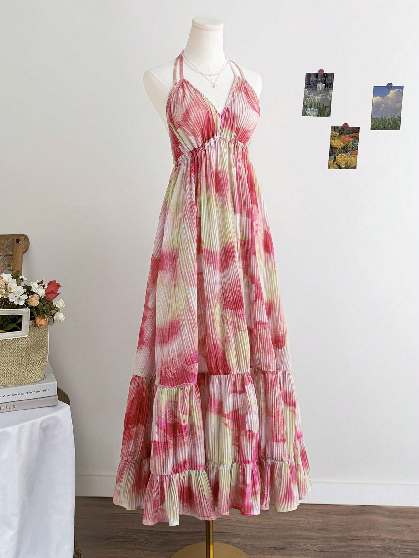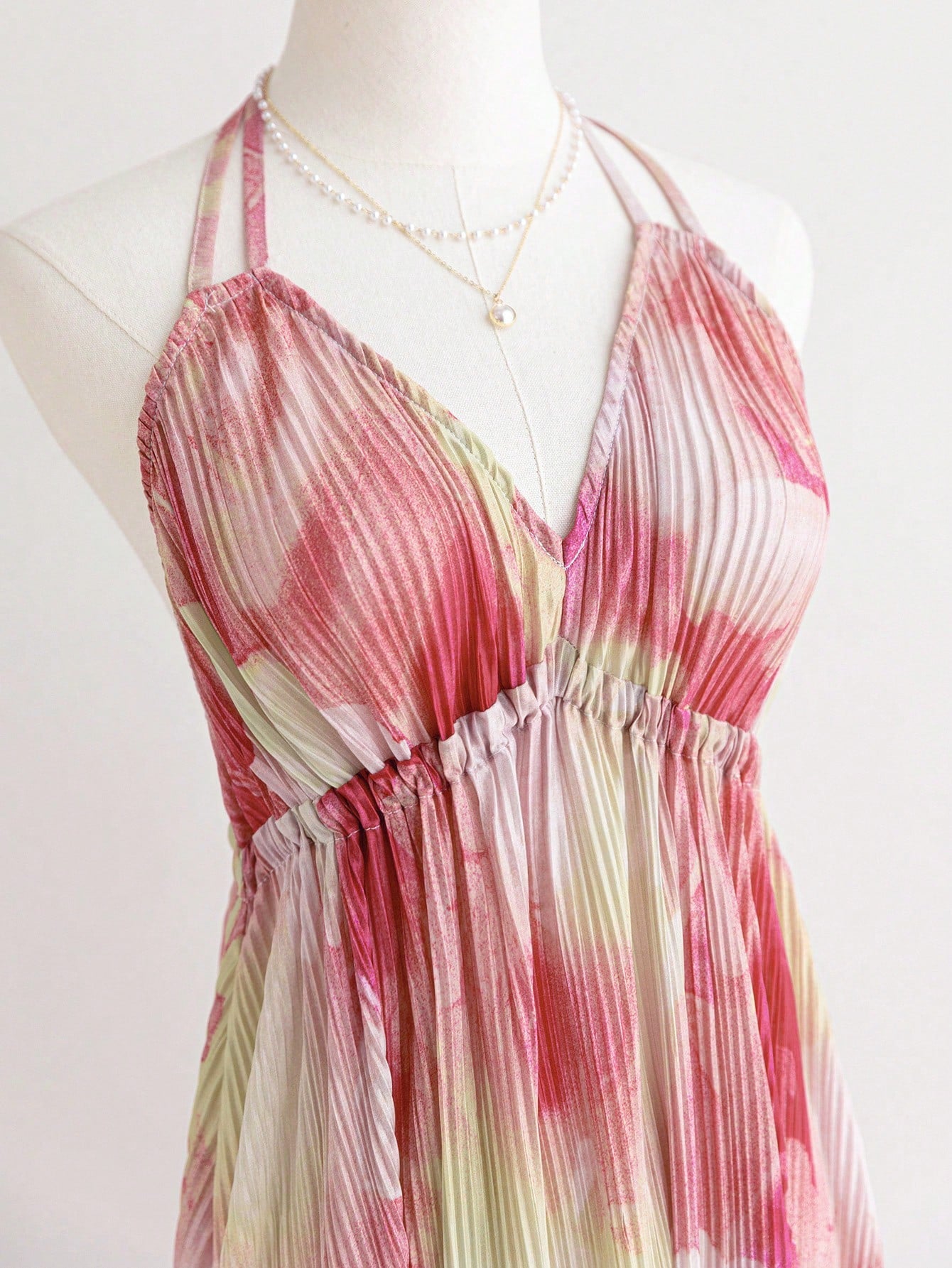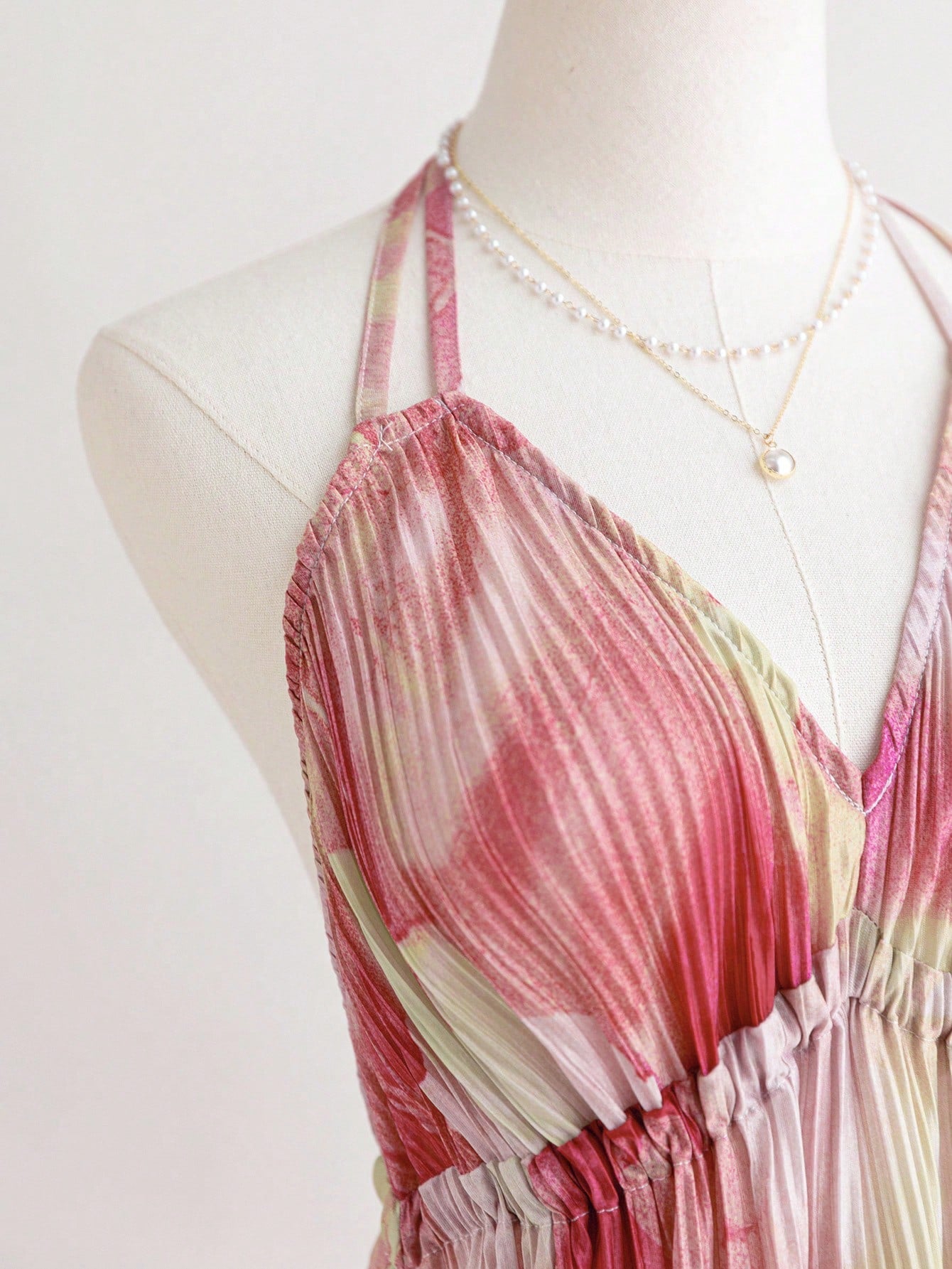 Soleia Women's Halter Tie Backless V-Neck Drawstring Dress