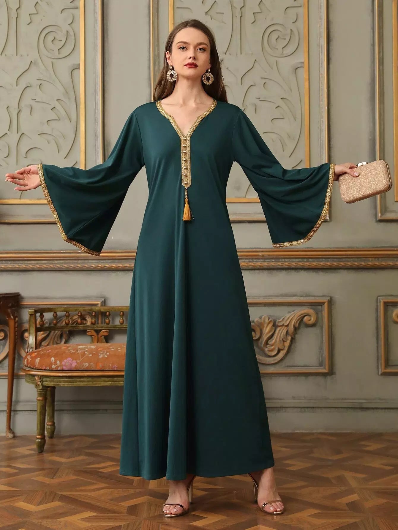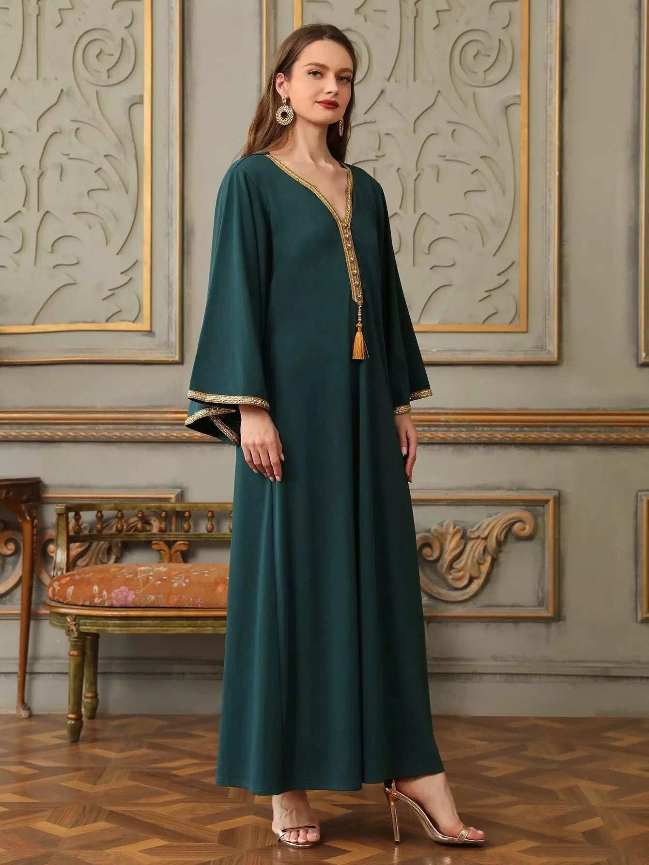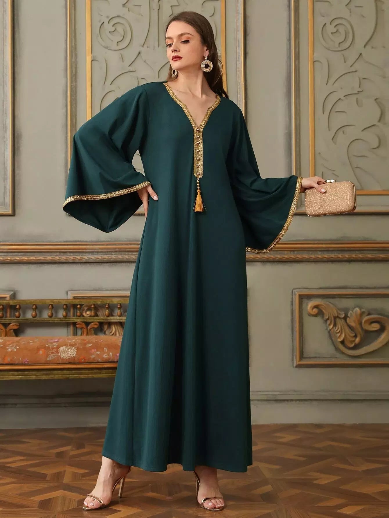 Tassel Front Contrast Binding Tunic Dress