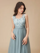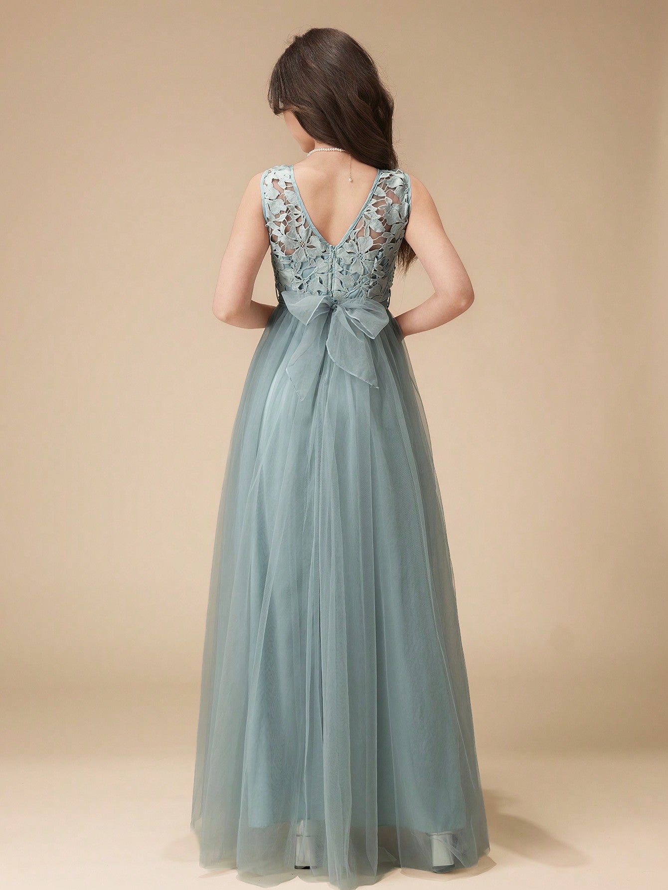 Teen Girl Chiffon Bridesmaid's Grey-Green Long Dress