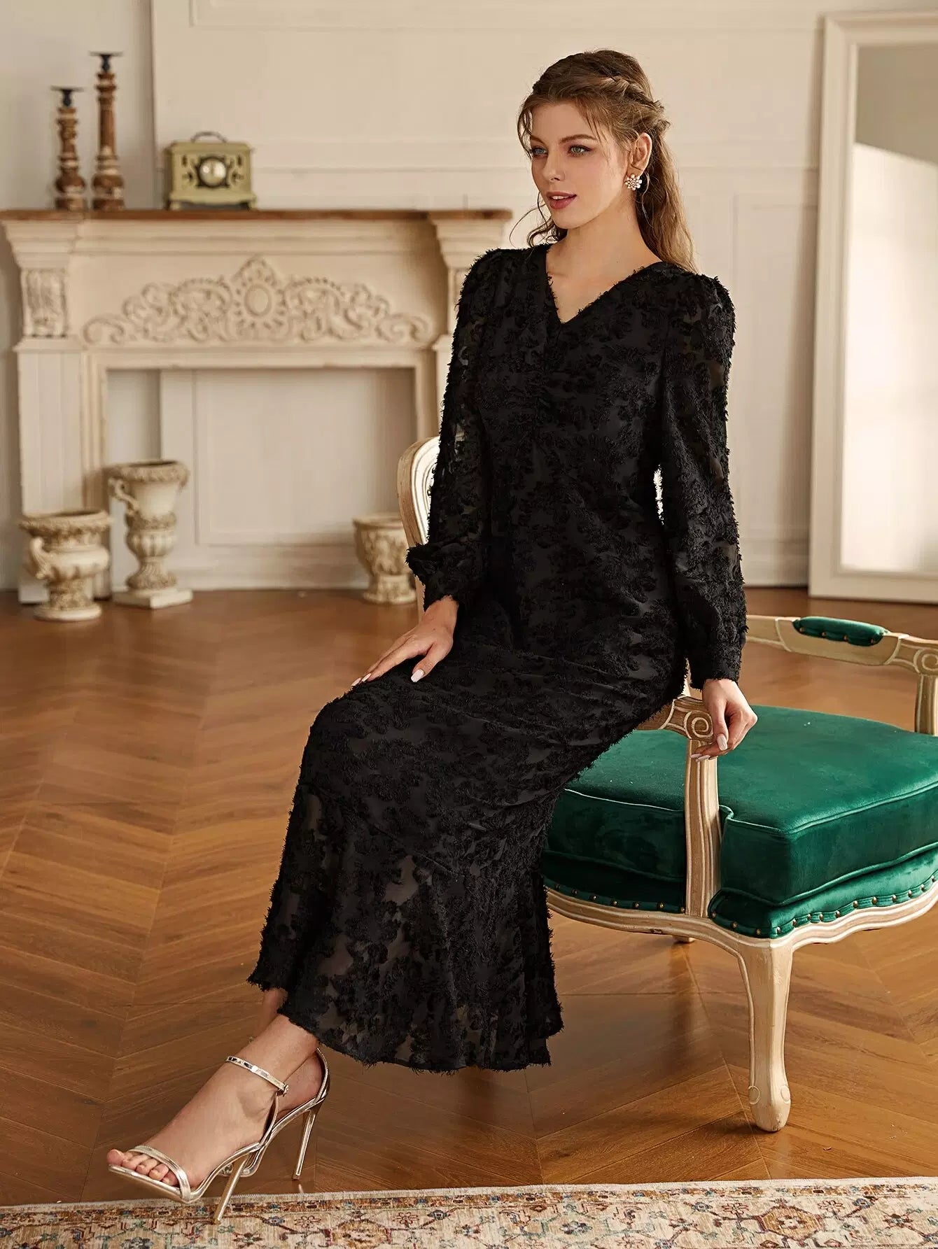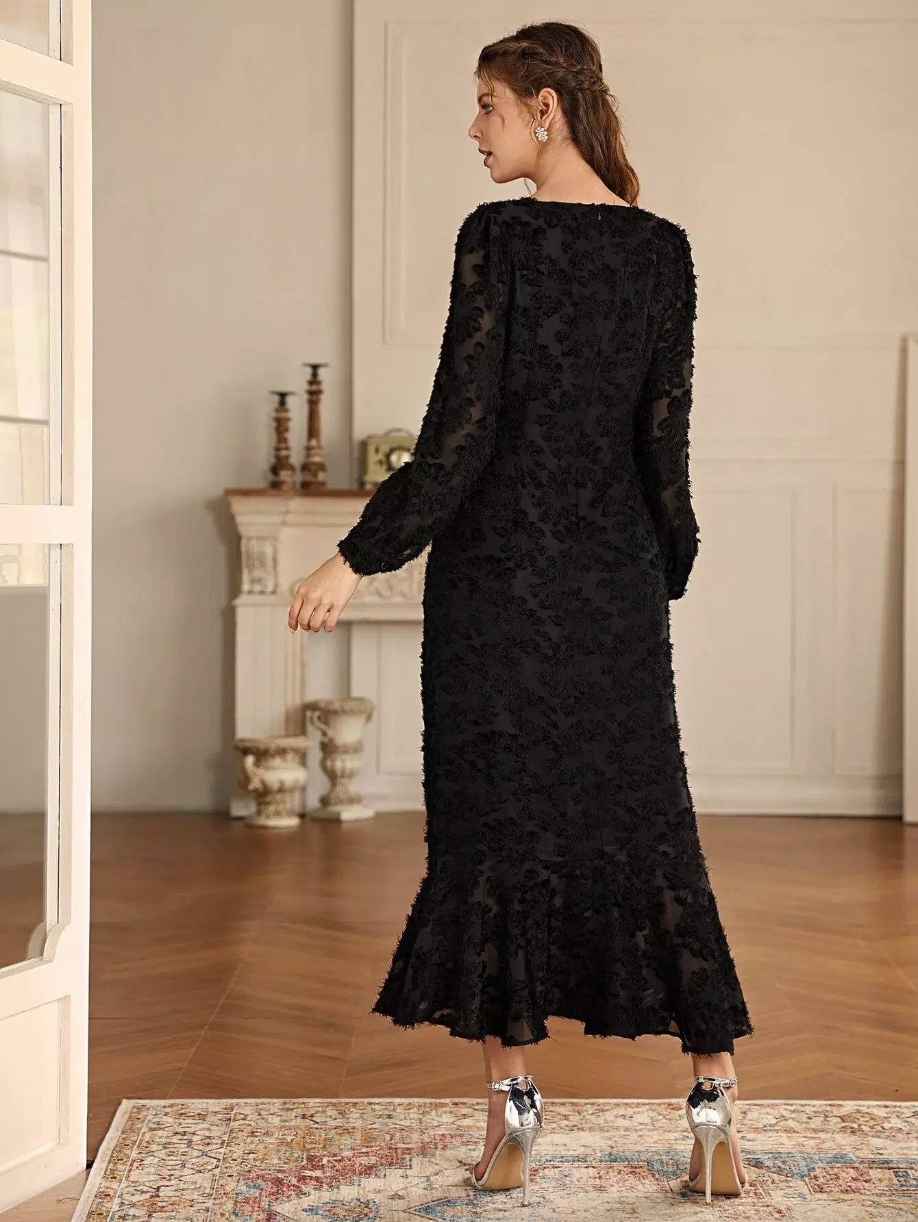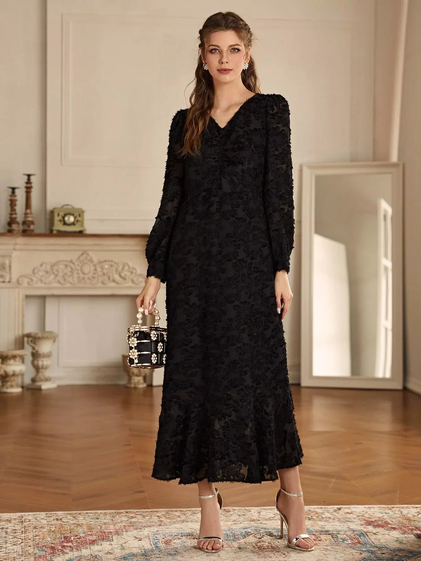 V-neck Ruffle Hem Fitted Fuzzy Dress