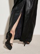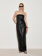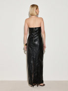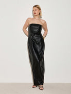 AiiRZ Strapless Faux Leather Maxi Evening Dress Bodycon Column Gown Holiday Party Formal Black Evening