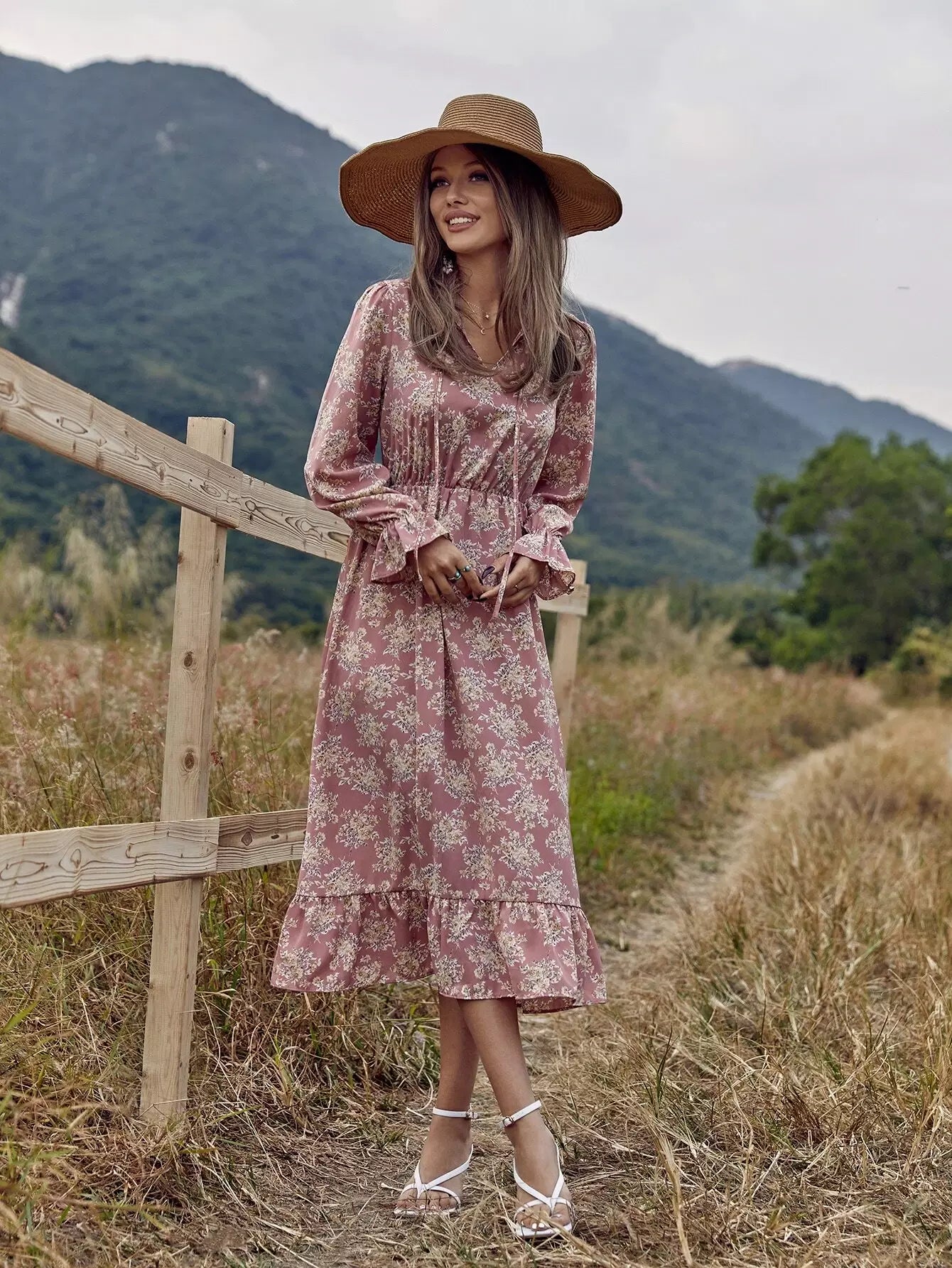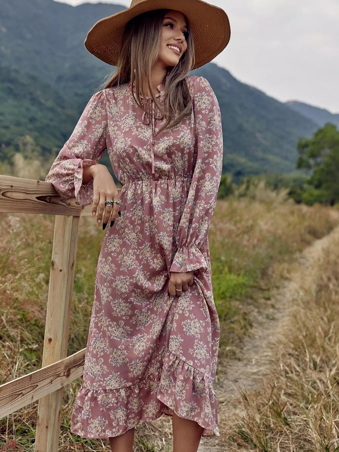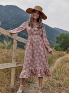 Allover Floral Tie Neck A-line Dress