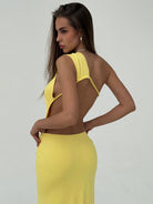 Aloruh Yellow Backless Lace-Up Casual Sexy & Charming Women's Dress Summer Summer Outfits Summer Clothes