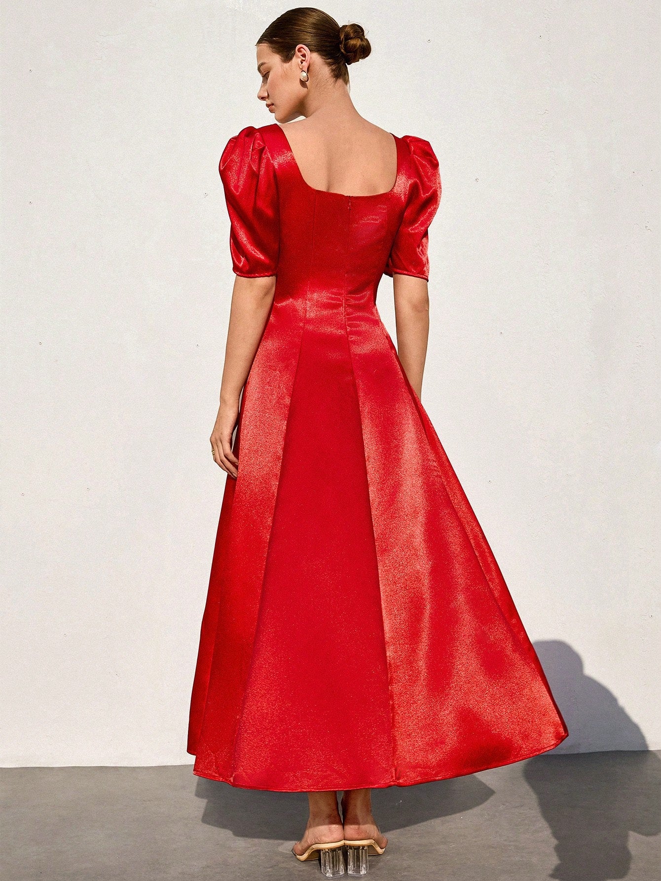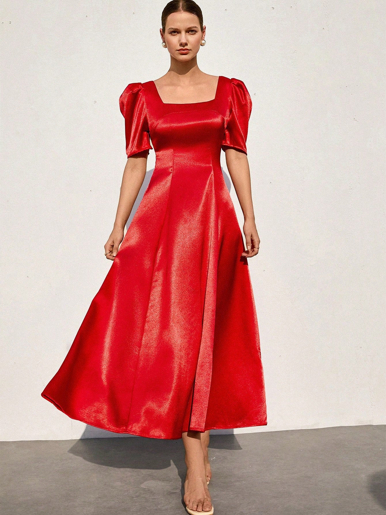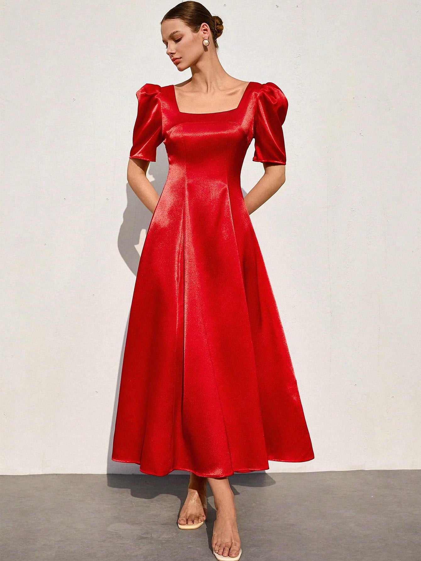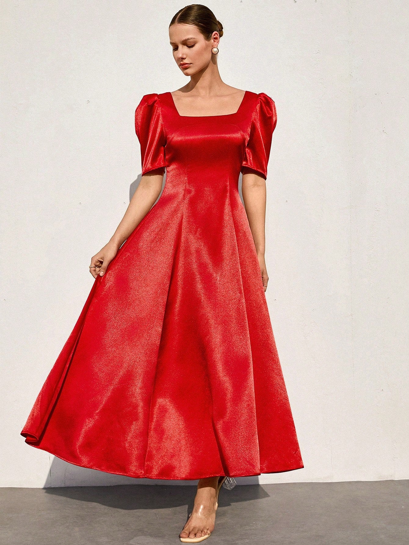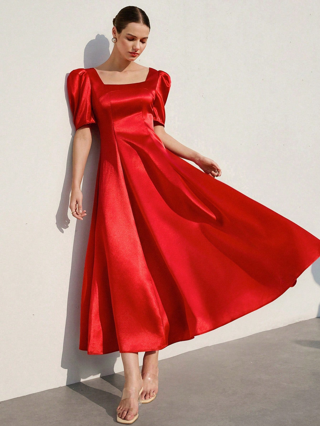 Aveloria Rosie French Romantic Tulip Sleeve Shiny Satin Flare Dress For Women Elegant FashionableOld