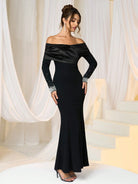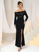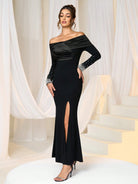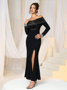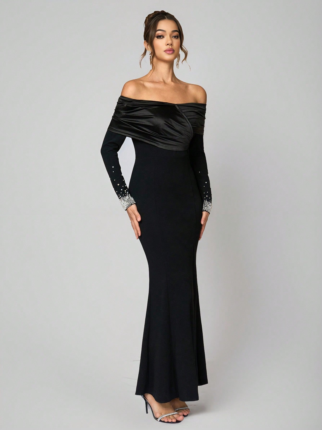 Belle 1pc Women Elegant Knit Splice Pearl Decor Cinched Waist Bodycon Dress Gown Jacquard Dress Valentine's